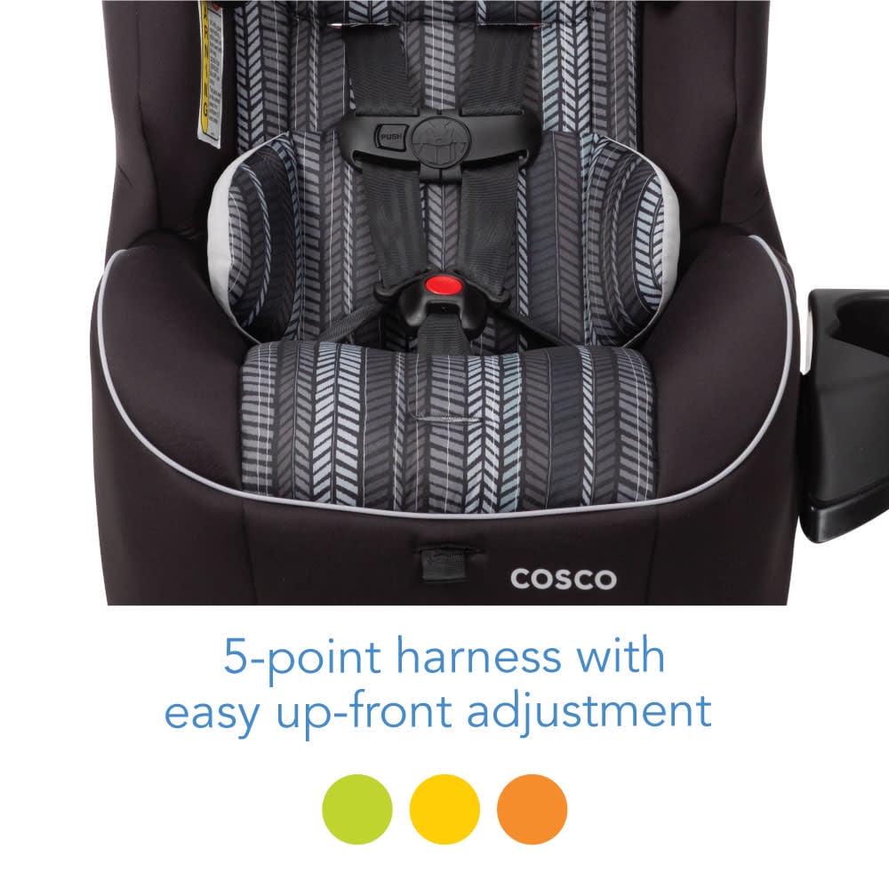 Cosco makes choosing the right car seat simple! The Easy Elite All-in-One car seat has your family covered from rear-facing baby to big kid booster with a range of 5-80 pounds. The Easy Elite also adapts to your growing family with the ability to fit three seats across the back of most cars.