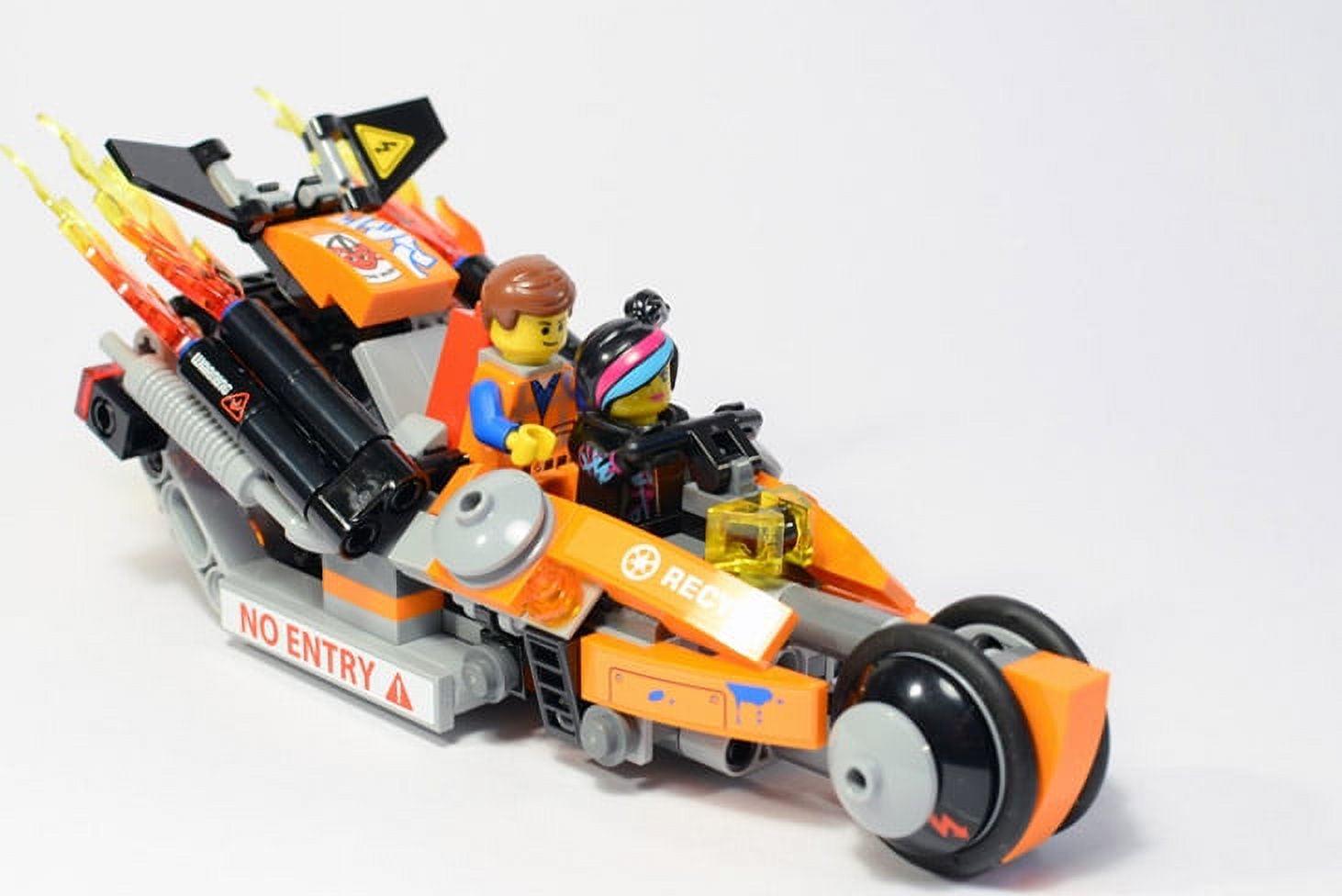 – Wyldstyle s Dragster features 2 seats. a huge rear wheel and translucent exhaust flames
