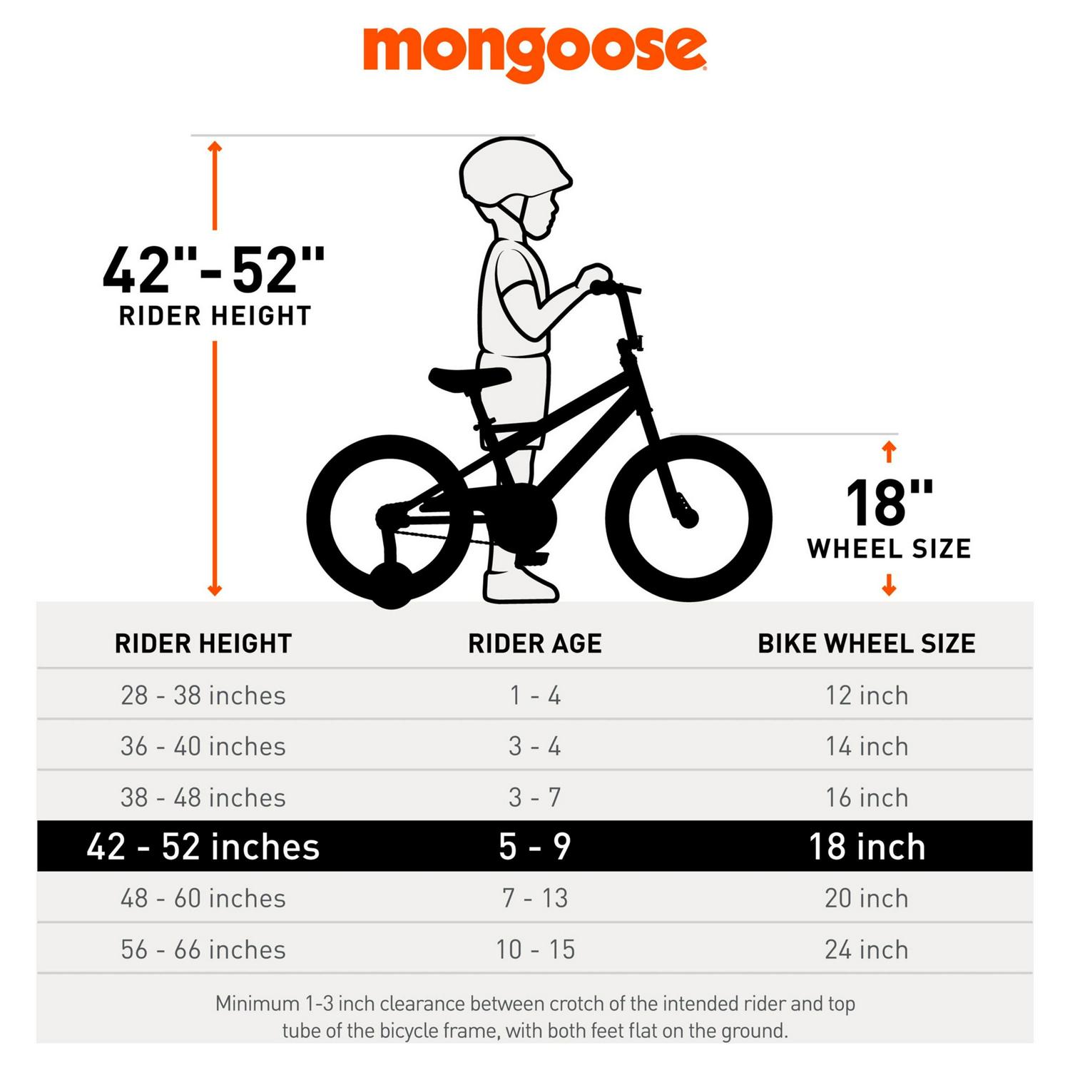 - Designed with 18-inch wheels. this kids’ bike fits riders ages 5 to 7. or 3′ 6″ to 4′ 4″ in height
