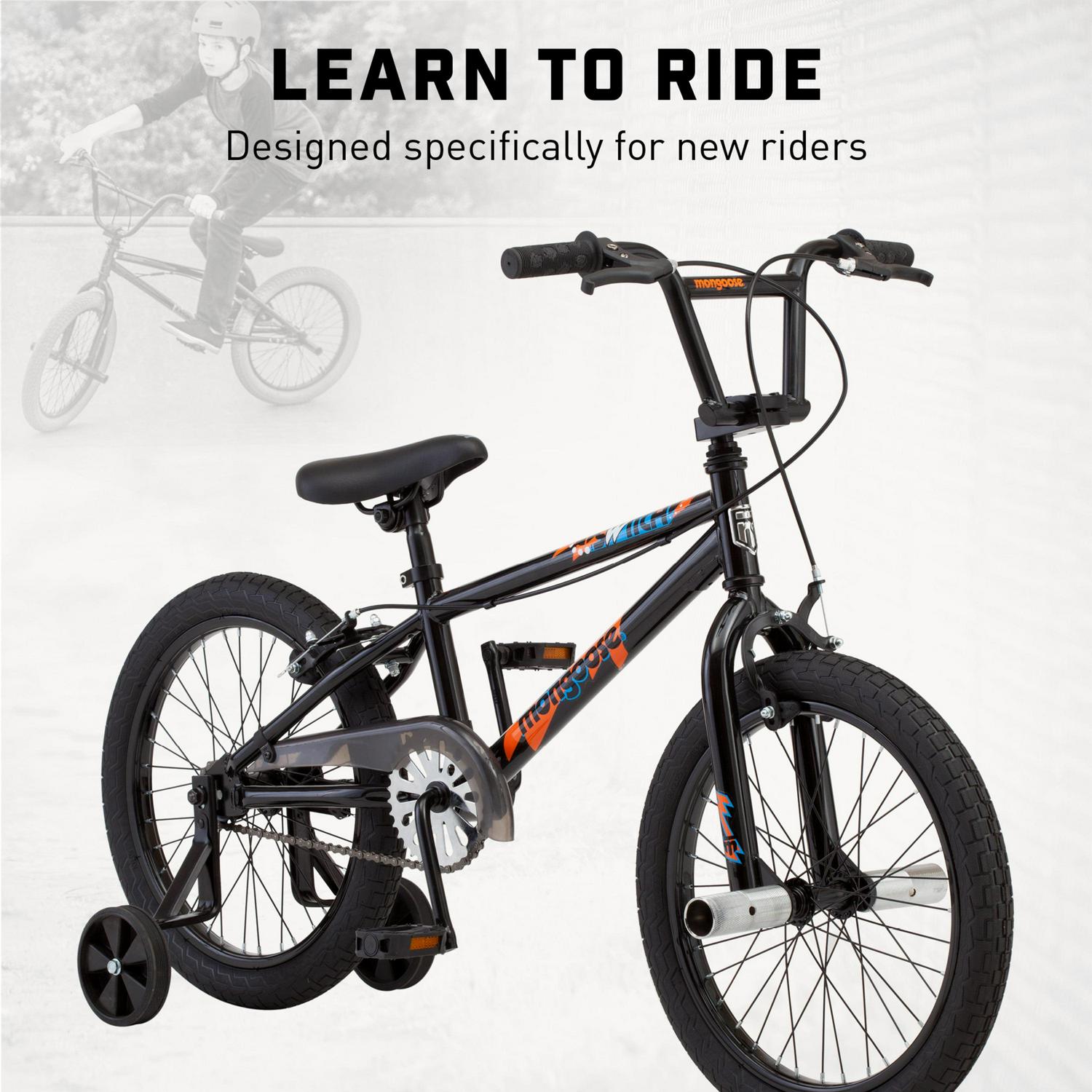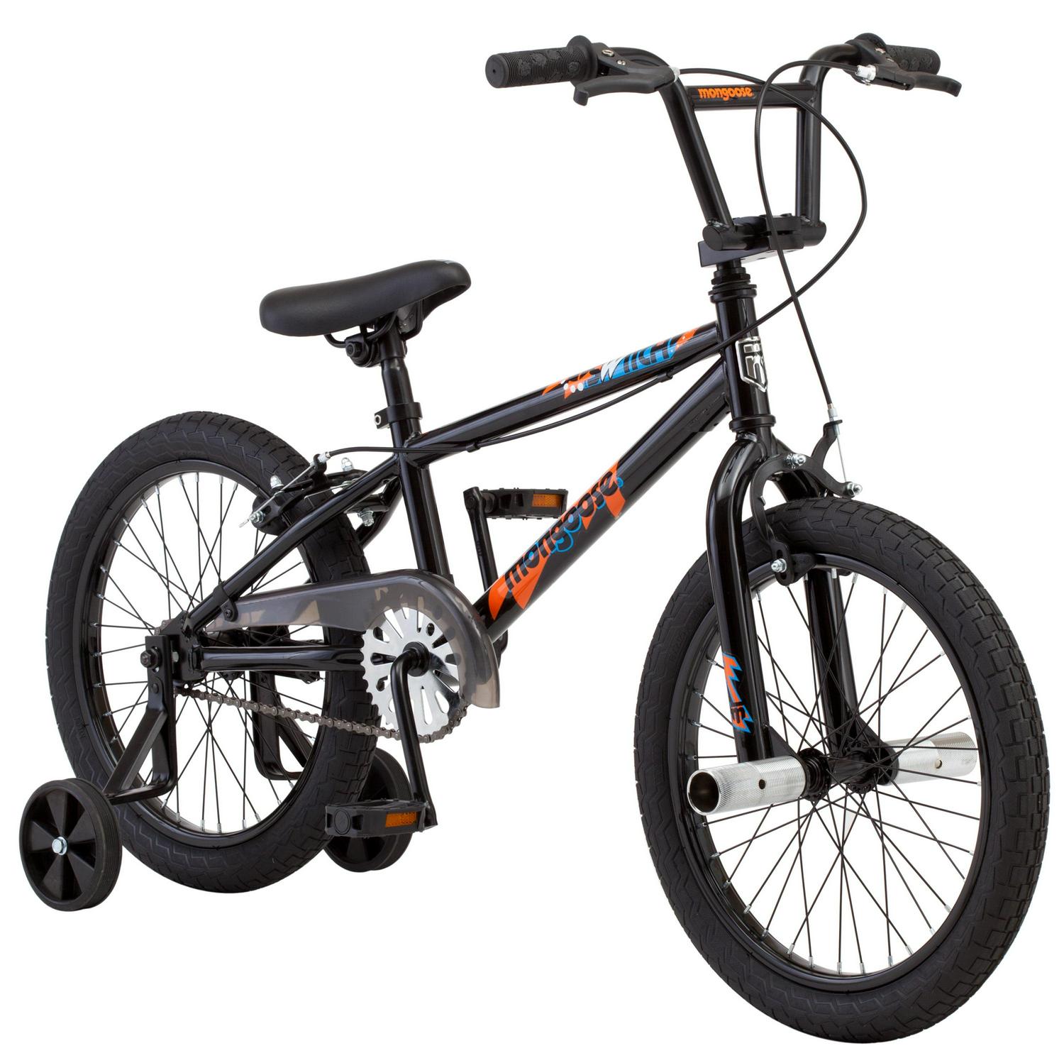 Your child will have countless hours of fun riding this 18″ Mongoose Switch Boy’s Freestyle Bike. It has a heavy-duty. non-corrosive scaled-down. lightweight steel frame. that allows young kids to get their first experience at riding like the pros. This 18″ freestyle bike has front and rear handbrakes. as well as a coaster brake for easy stopping. It also has training wheels that you can remove once your child masters his skills and holds and steers the bike on his own. This 18″ Mongoose Switch Boys Freestyle Bike comes with a single drive train and standard pedals. The padded seat offers comfort and the stylish design makes it fun to ride. Countless hours of fun await with the Switch Freestyle. Become your own legend with Mongoose. Great news! If you select Site to Store delivery. you can call your local store as complimentary assembly may be offered at that location.
