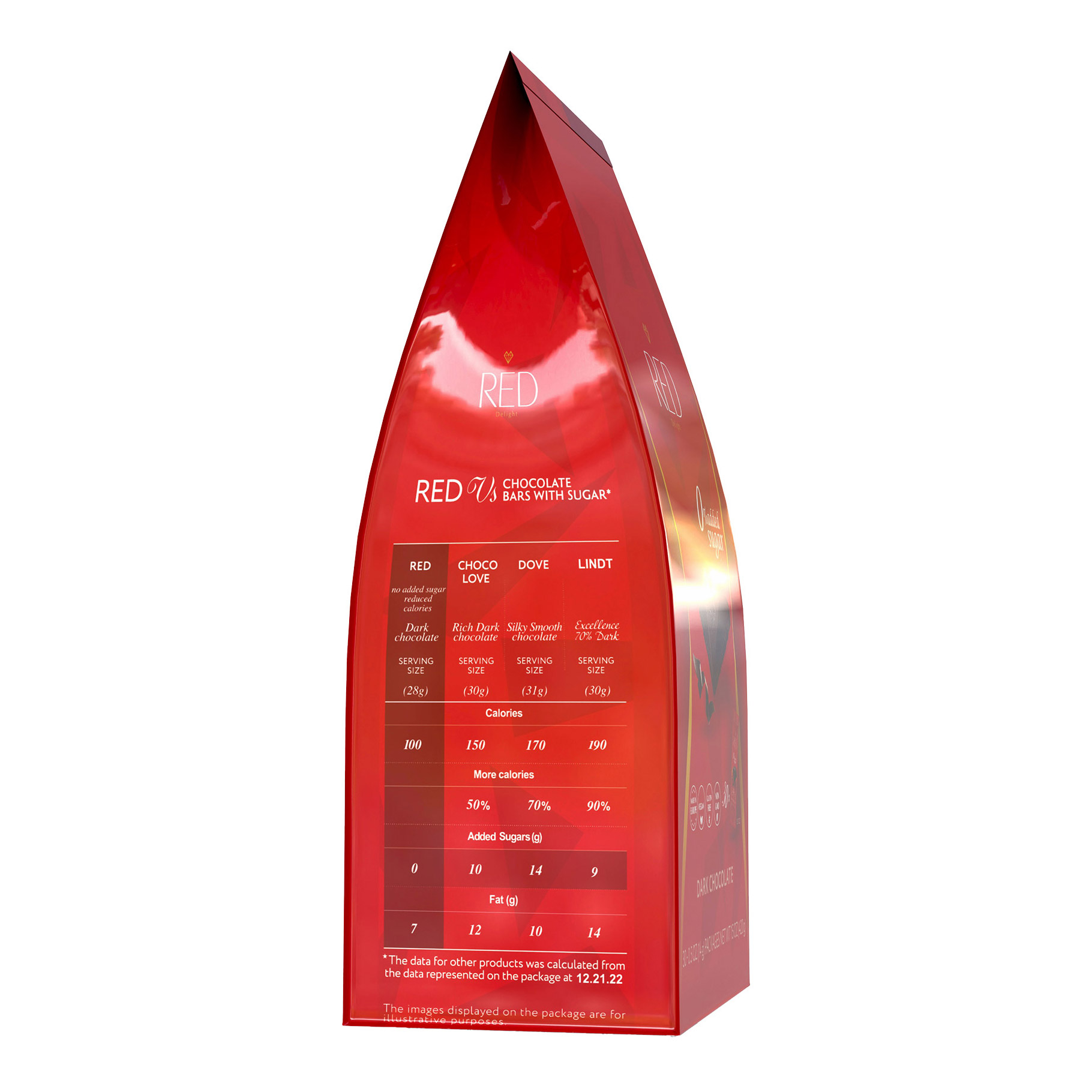 Enjoy the perfect snack-sized treat with our Snack Size Dark Chocolate bars. Indulge in the rich and velvety flavor of dark chocolate in a convenient, bite-sized format. Each bar is crafted with the finest ingredients and carefully balanced to deliver a delightful taste experience. RED Snack Size Dark Chocolate bars are made with premium quality dark chocolate that boasts a high cocoa content for an intense and satisfying chocolate flavor. The smooth and decadent texture melts in your mouth, leaving you craving for more. These perfectly portioned bars are ideal for satisfying your chocolate cravings on-the-go or for sharing with friends and family. Whether you’re looking for a guilt-free indulgence or a delightful gift, RED Delight Snack Size Dark Chocolate bars are a perfect choice. Experience the pure pleasure of dark chocolate in every bite. Treat yourself to the rich and indulgent taste of our Snack Size Dark Chocolate bars. Order now and satisfy your cravings with this convenient and delicious snack. BENEFITS OF RED DARK CHOCOLATE