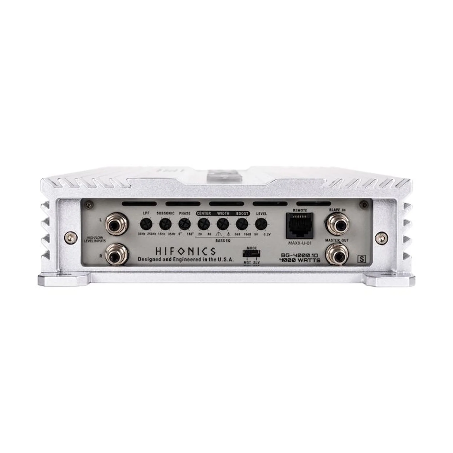Made for efficient power performance, this car audio mono amplifier is rated @ 1 ohms - 1 channel x 4,000 watts; @ 2 ohms - 1 channel x 2,200 watts; @ 4 ohms - 1 channel x 1,100 watts. This monoblock amp uses Ultra-Fi MOSET output device technology and classic Hifonics aluminum construction for powerful sound, efficient cooling, and minimal distortion.