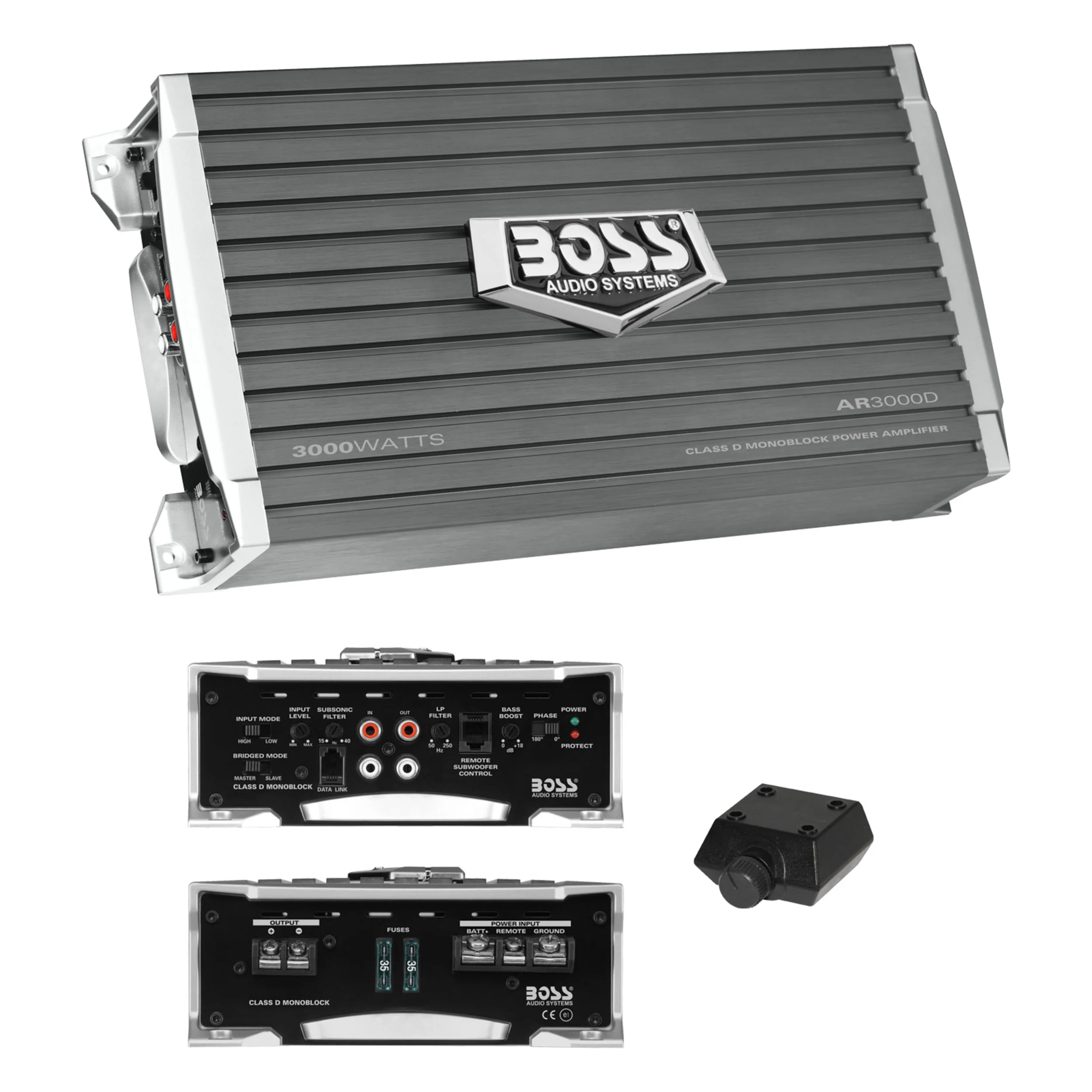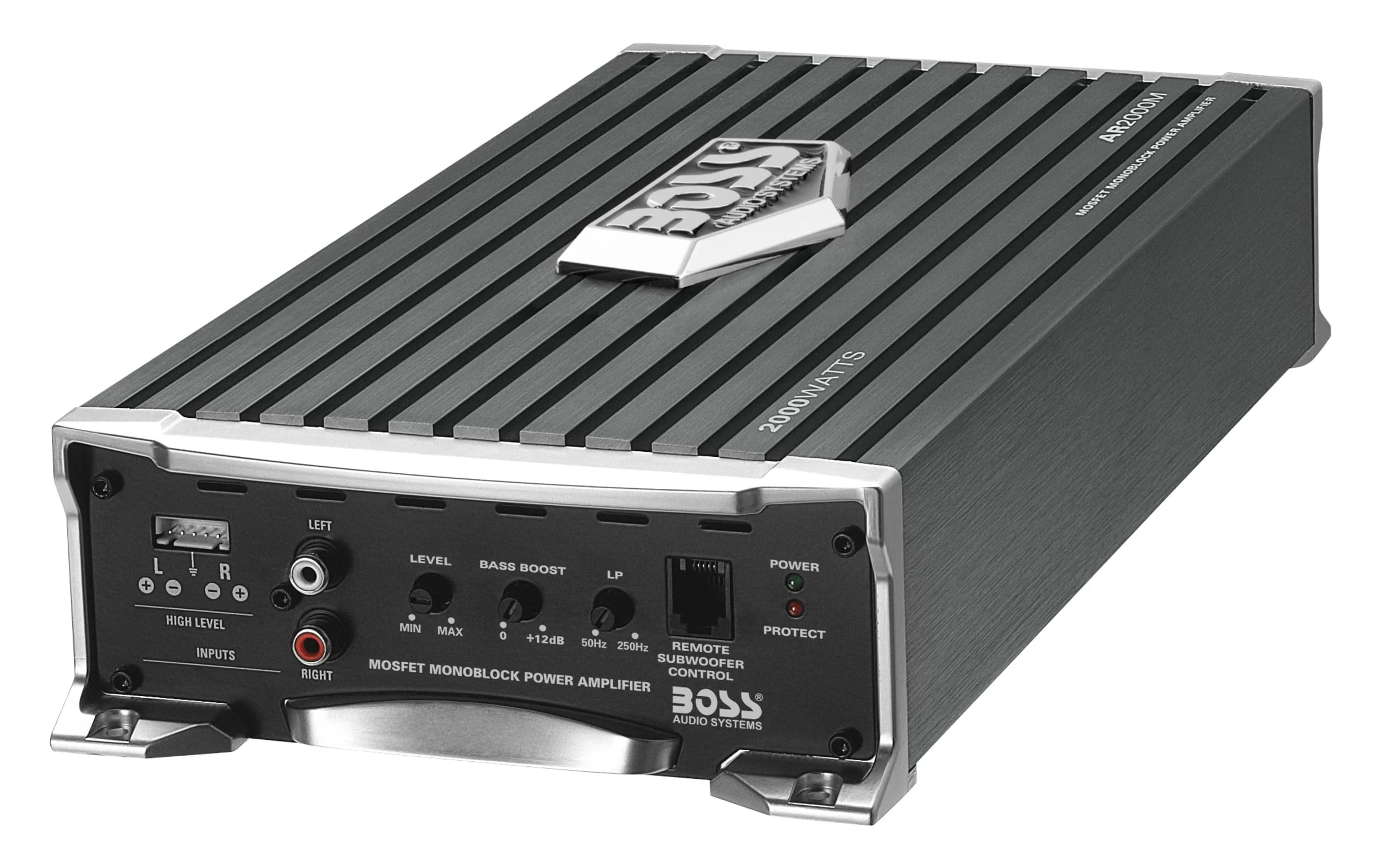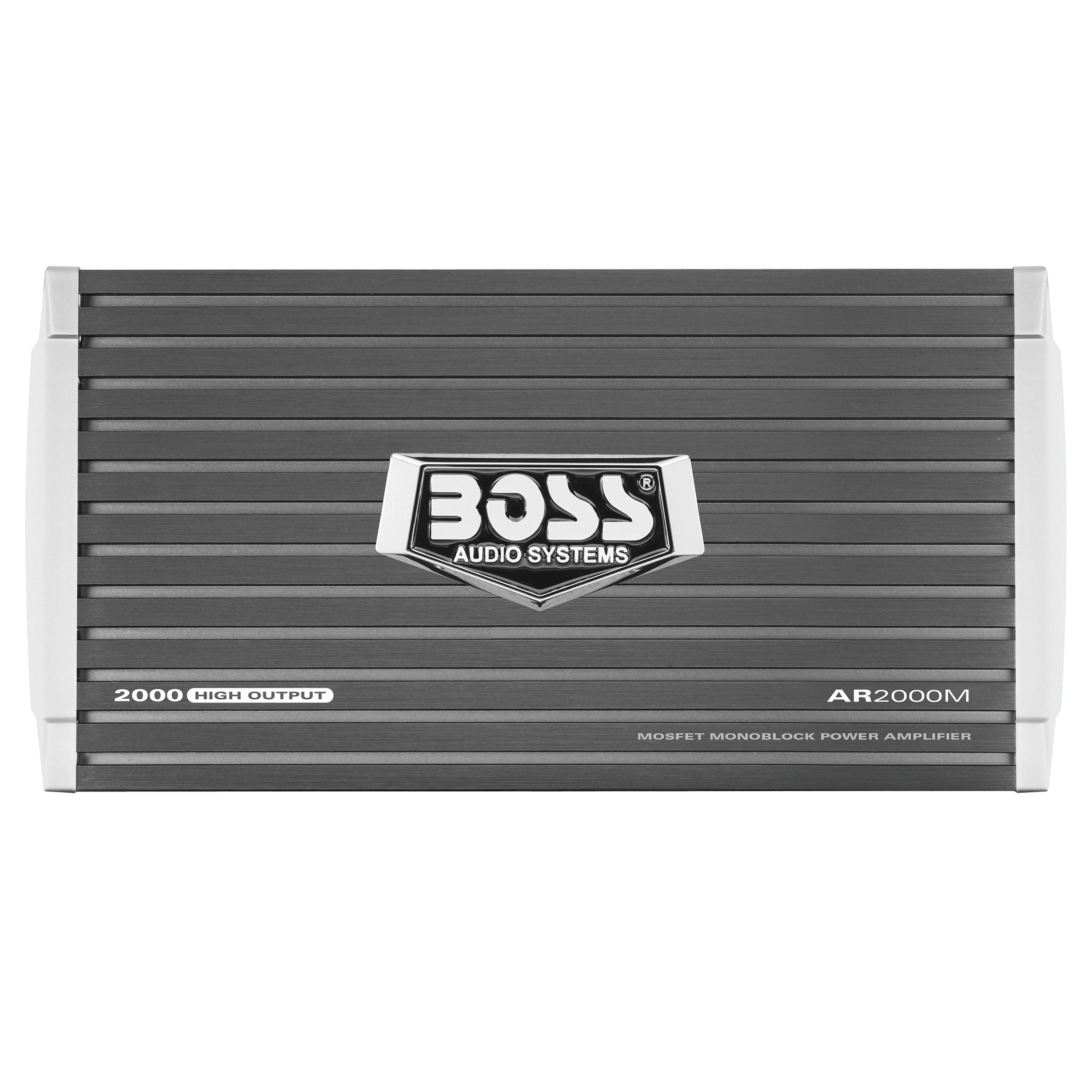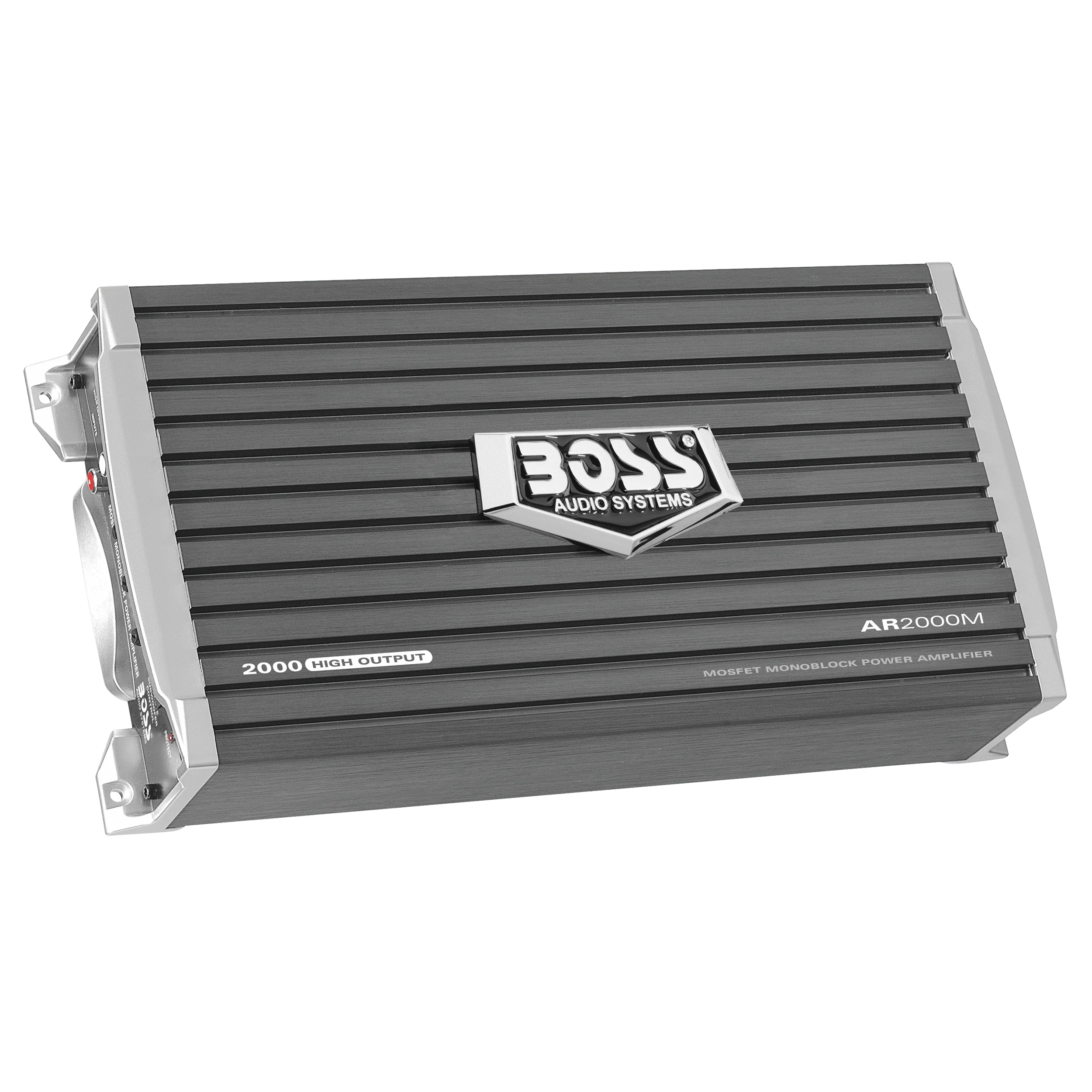 BOSS Audio Systems AR2000M Armor Series Car Amplifier - 2000 High Output, Monoblock, Class A/B, 2/4 Ohm Stable, High/Low Level Inputs, Low-Pass Crossover, Mosfet Power Supply, Stereo Take your audio power up a notch with the Boss Audio Armor AR2000M Class A/B Monoblock Amplifier. This powerful 2-Ohm stable amplifier features 2000 Watts Max Power with a MOSFET power supply to kick start your music. Customize the sound with Variable Low Pass Crossover and Bass Boost. Max out the Bass range and rock your vehicle with the Remote Subwoofer Control. The Armor Series of Amplifiers packs incredible power and performance into a feature-rich slim design for put-it-anywhere convenience. Boost your music's Bass with the Boss Audio AR2000M Slim Design Get pure bass with the Boss Audio Armor AR2000M Class A/B Monoblock Amplifier. With 2000 Watts Max Power and MOSFET power supply, you'll feel every beat. Customize the sound with Variable Low Pass Crossover, Bass Boost and Remote Subwoofer Control. The Armor Series of amplifiers packs incredible power and performance into a feature-rich slim design for put-it-anywhere convenience. Class A/B Monoblock, MOSFET Power Supply 2000 Watts @2-Ohms Max Power 1500 Watts RMS @2-Ohms High and Low Level Inputs Variable Low Pass Crossover, Bass Boost Remote Subwoofer Control