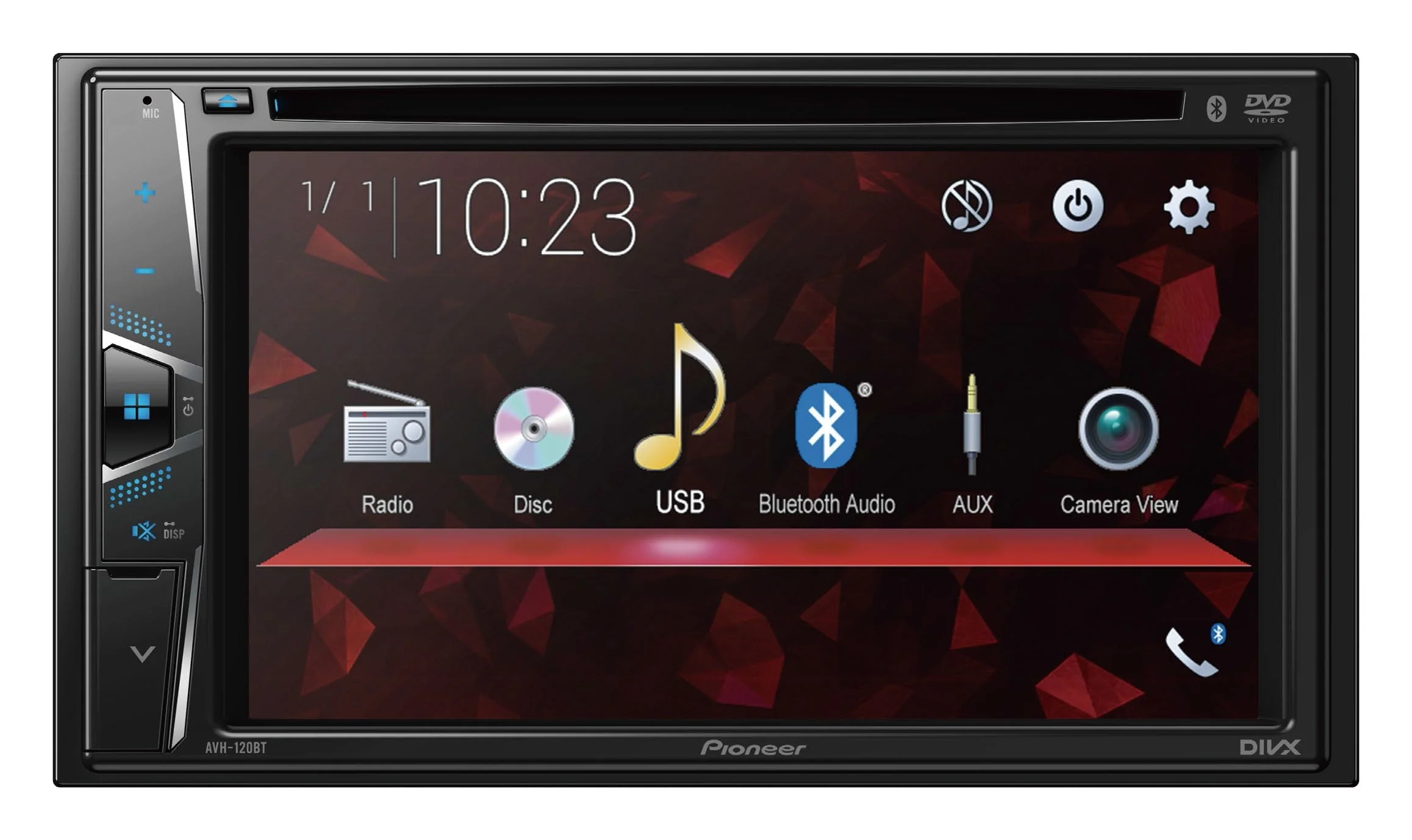 Pioneer AVH - 120BT Multimedia Receiver with 6.2 in WVGA Touchscreen Display and Built - in Bluetooth for Hands - Free Calling and Audio Playback | Double DIN | DVD / MP3 / CD Player