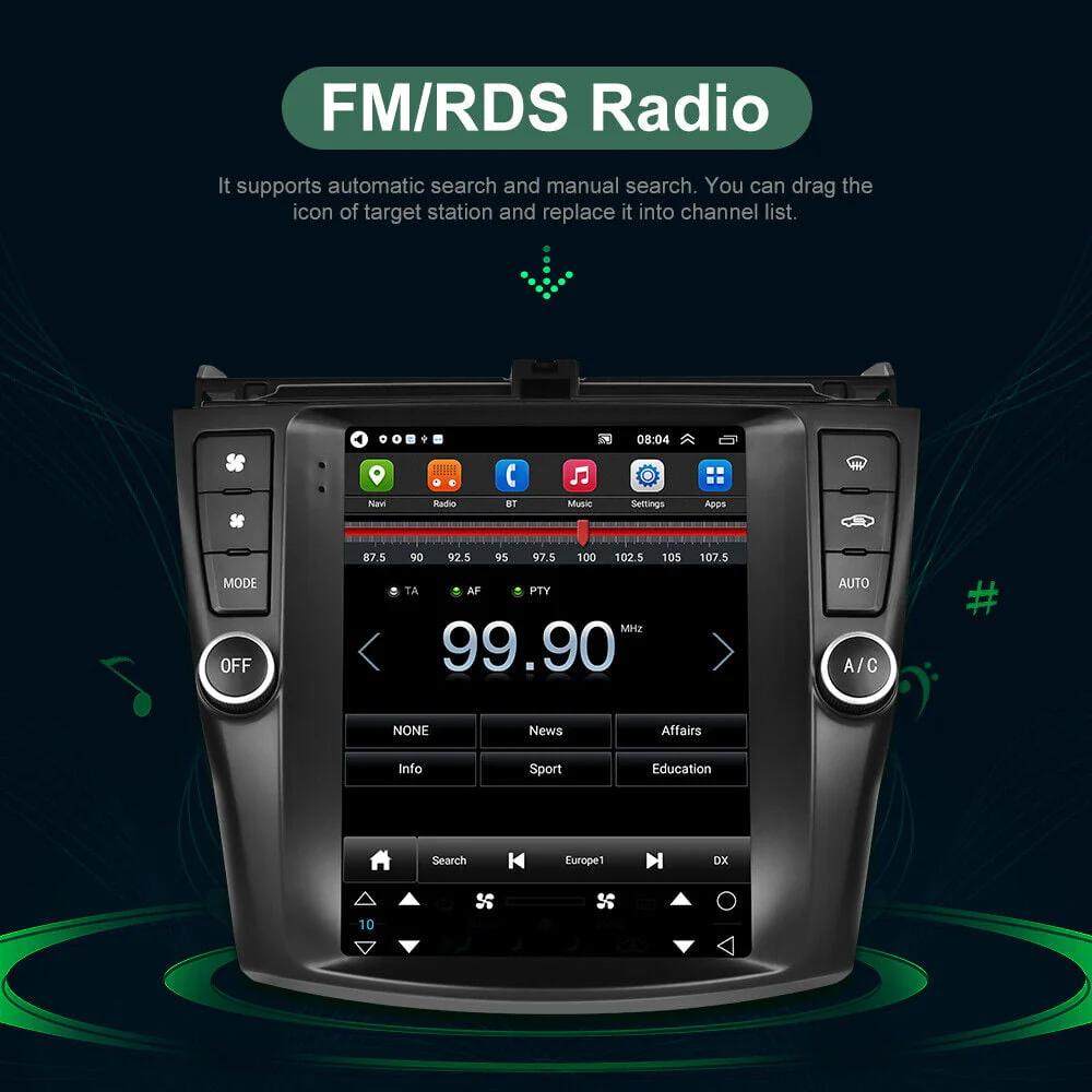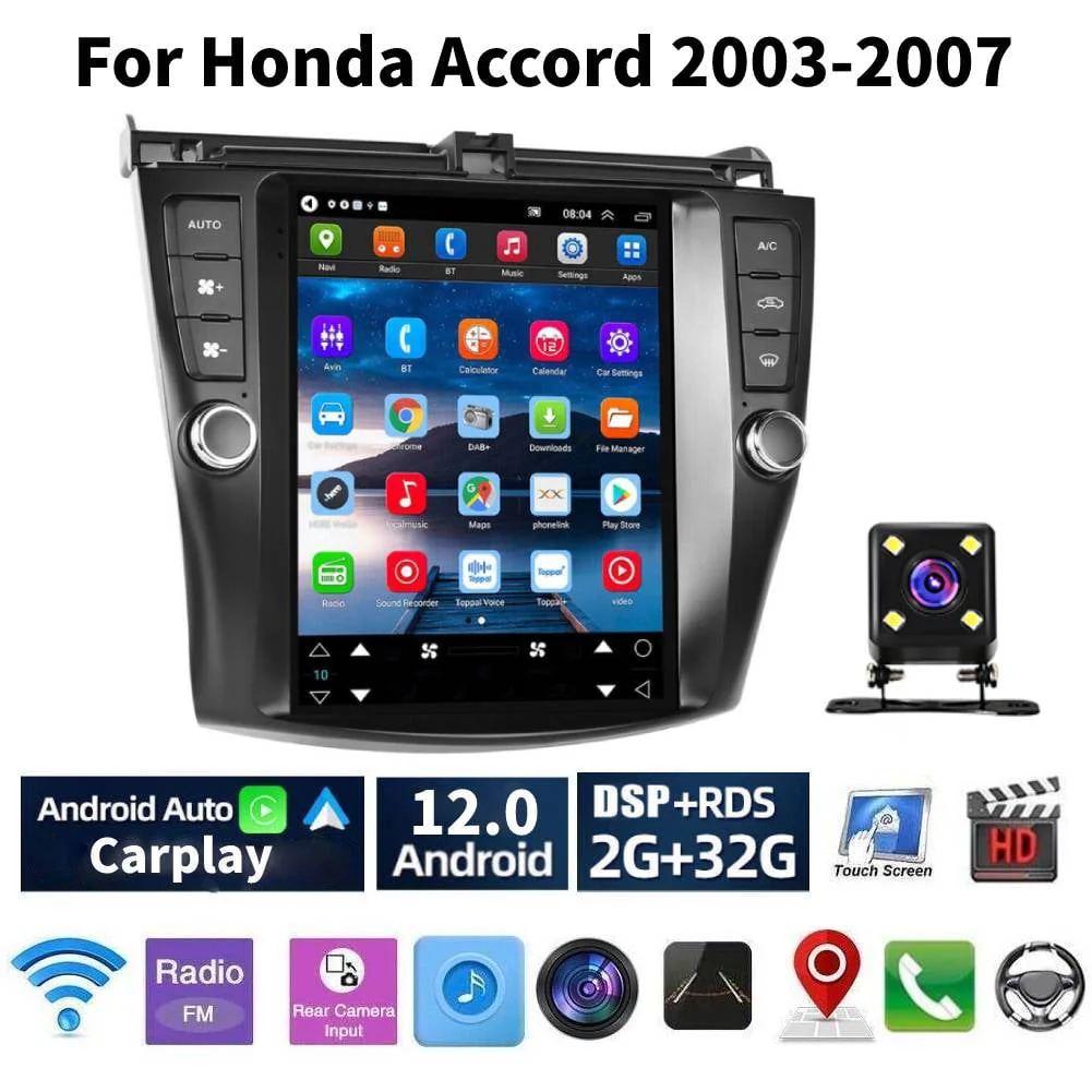 Car Radio Stereo for Honda Accord 2003 - 2007, 9.7" Touchscreen Android 12 Support Carplay Android Auto/Navigation/Bluetooth/USB/Video/Steering Wheel Control/Rear Camera/ 2+32G, Black
