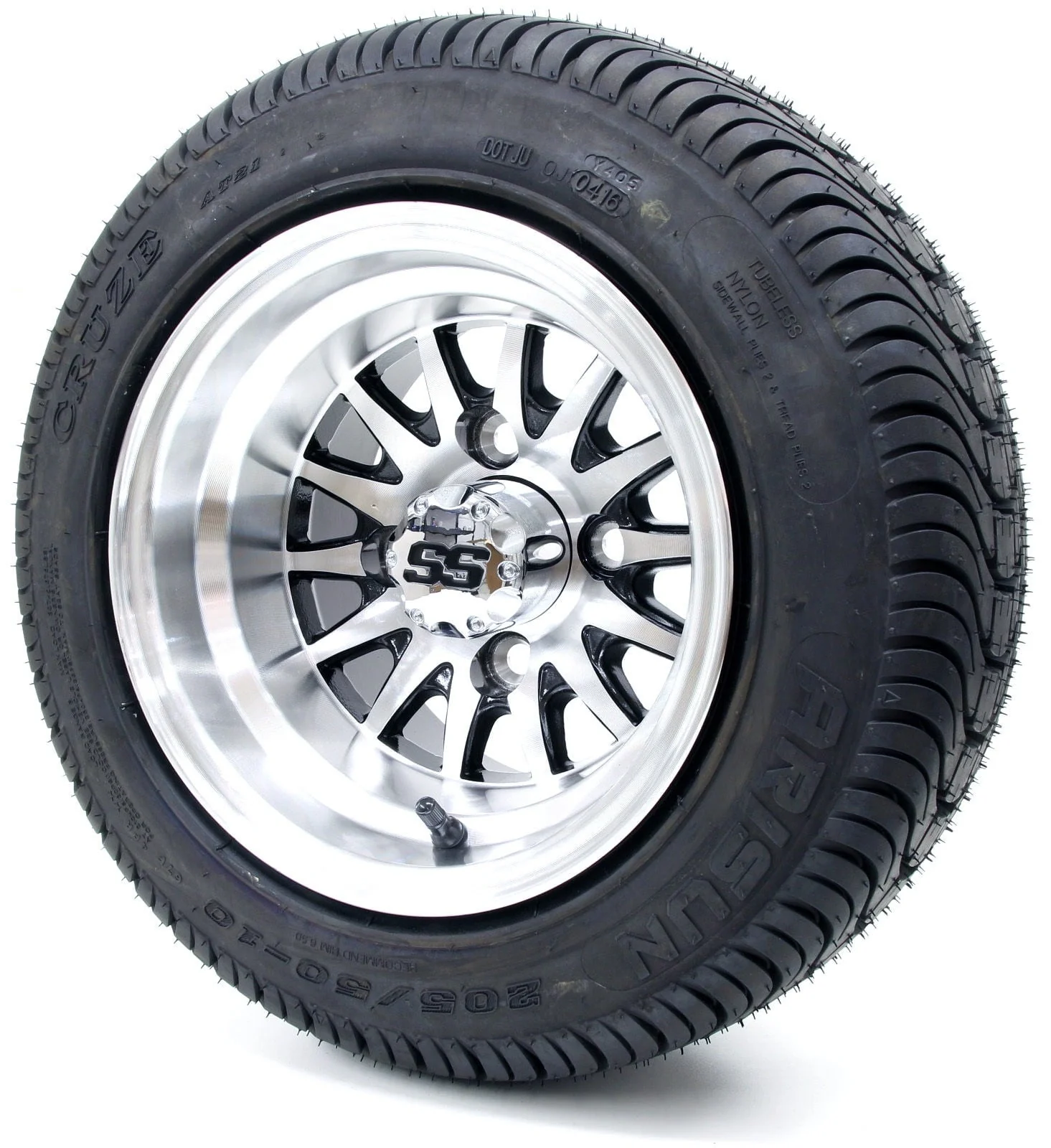 Notes: Tire options are (205-50-10 {18.5" Height}) 4-ply DOT "Cruze" Street Tire. Or tire (205/65-10 {20" Height}) 4-ply DOT "Cruze" Street Tire. Wheel is a 10 x 7 with an offset of 3x4.