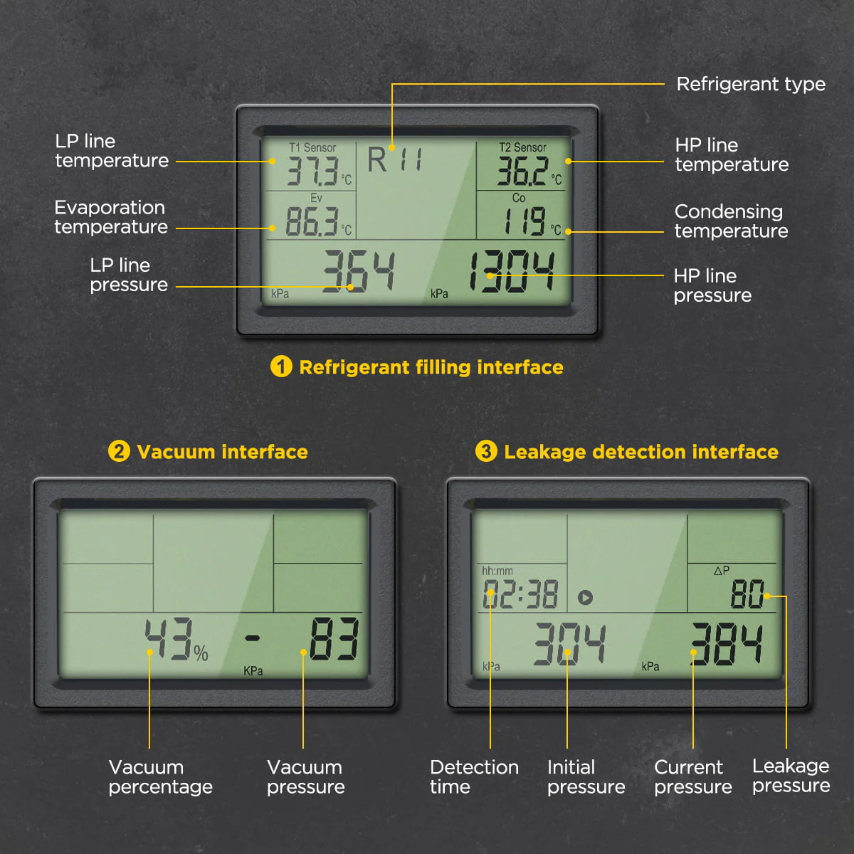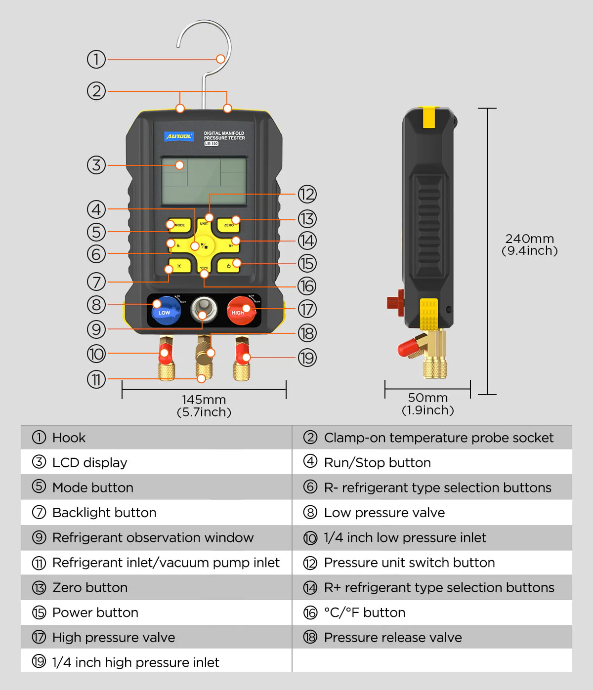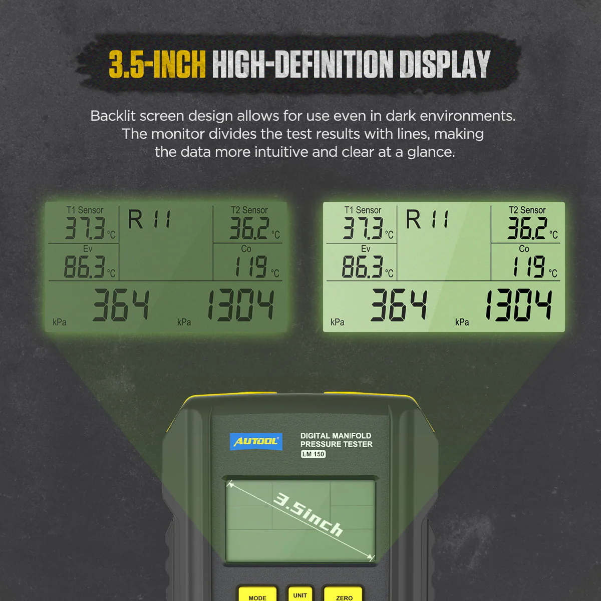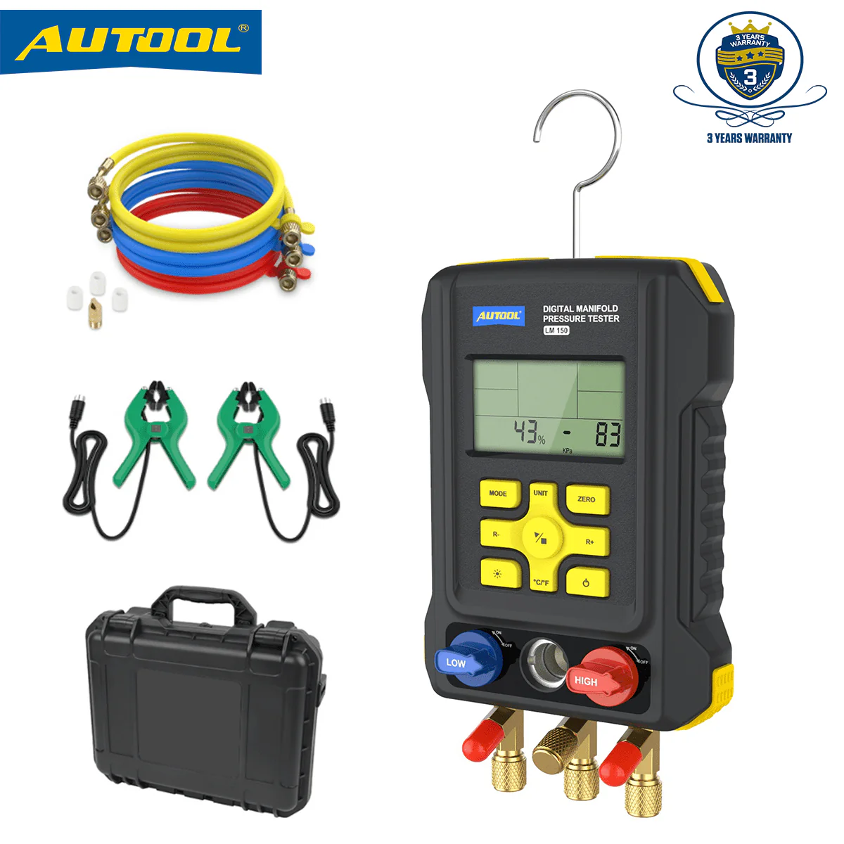 AUTOOL Air - Conditioning Refrigerator Refrigeration Digital Manifold Gauge Set, HVAC Pressure Gauge Tools, 3.5 in Display Vacuum Leak Detector, Support 93 Kinds Refrigerant, LM150