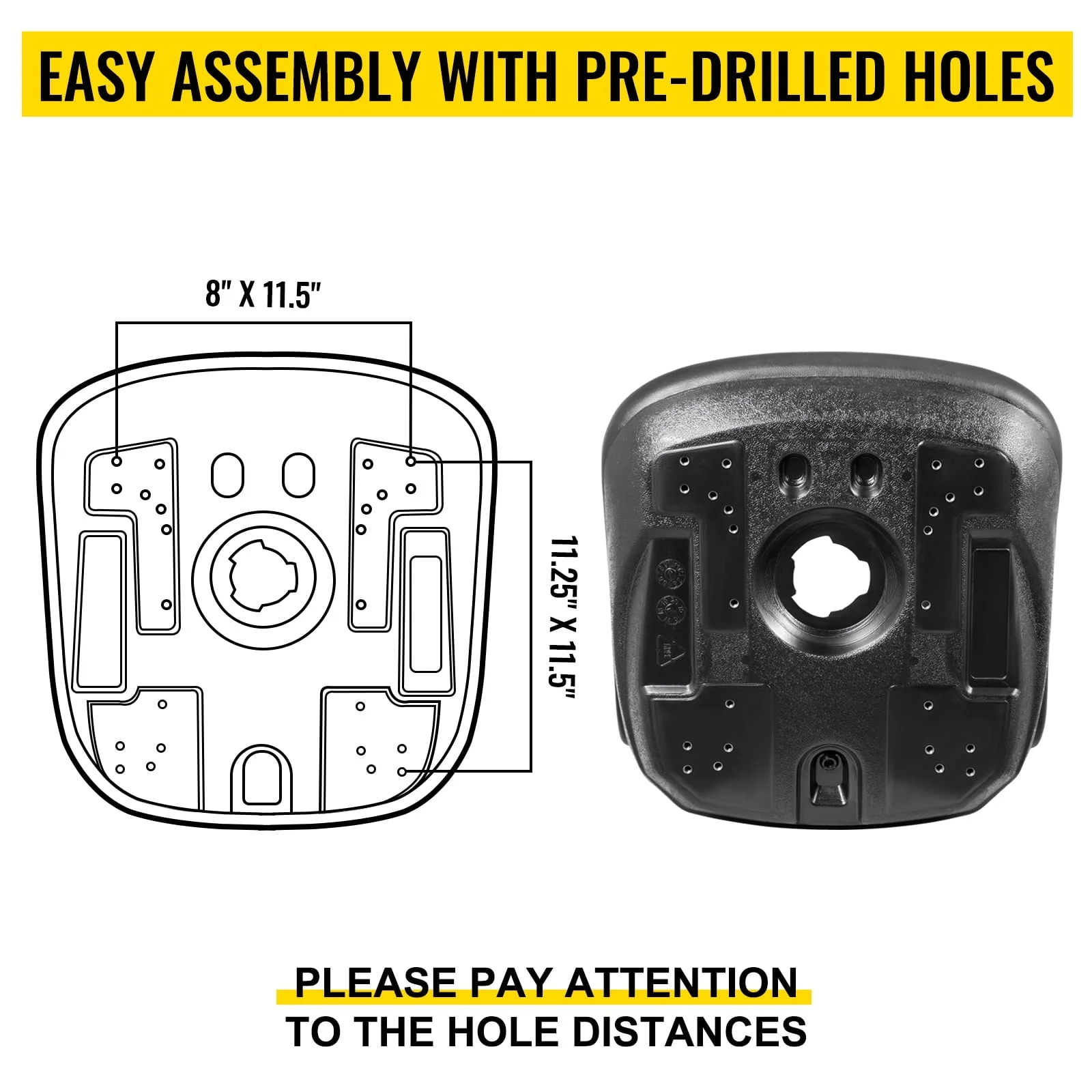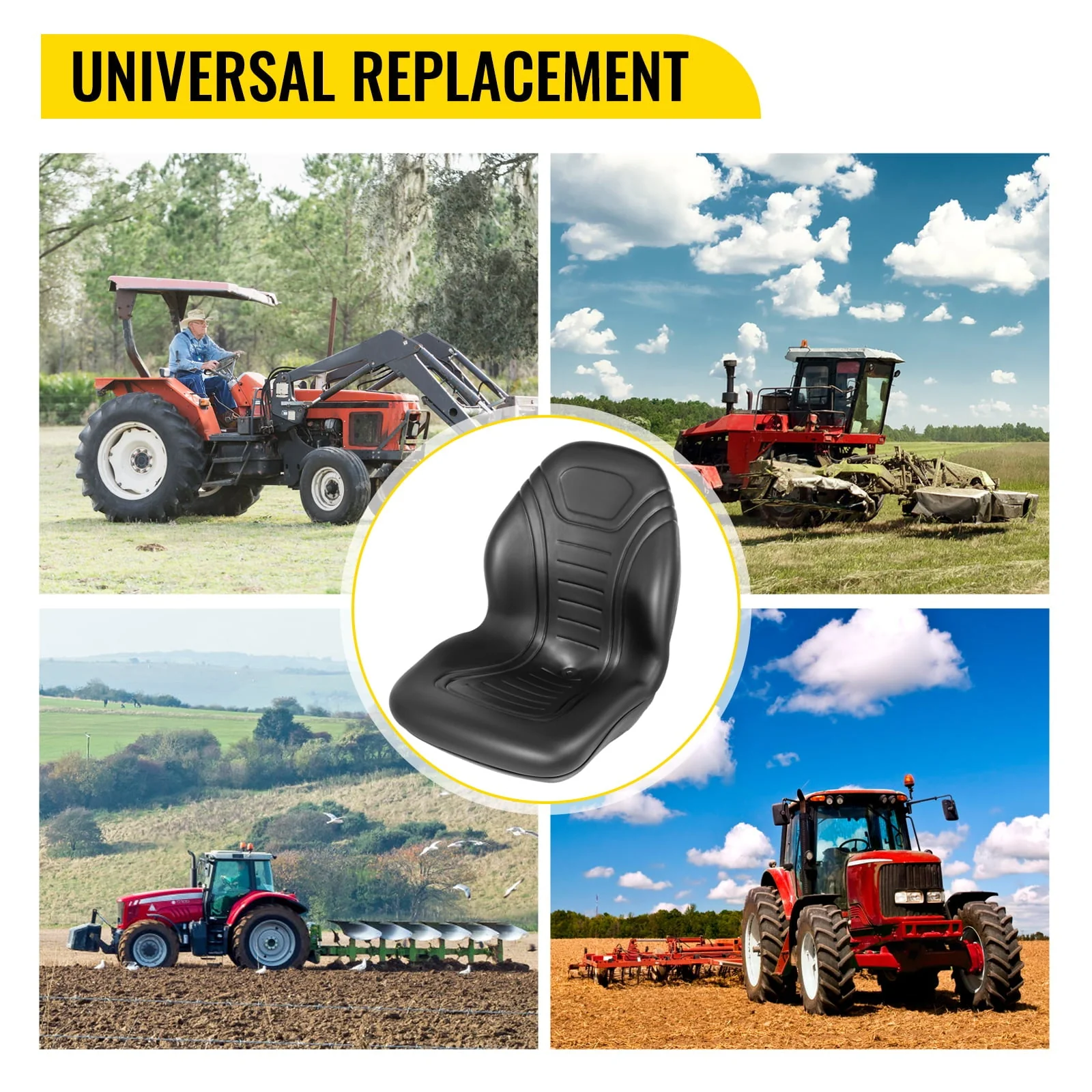 VEVOR 2pcs Universal Tractor Seat Replacement, Compact High Back Mower Seat Pair, Black Vinyl Forklift Seat, Central Drain Hole Skid Steer Seat with Mounting Bolt Patterns of 8" x 11.5" & 11.25" x 11.5"