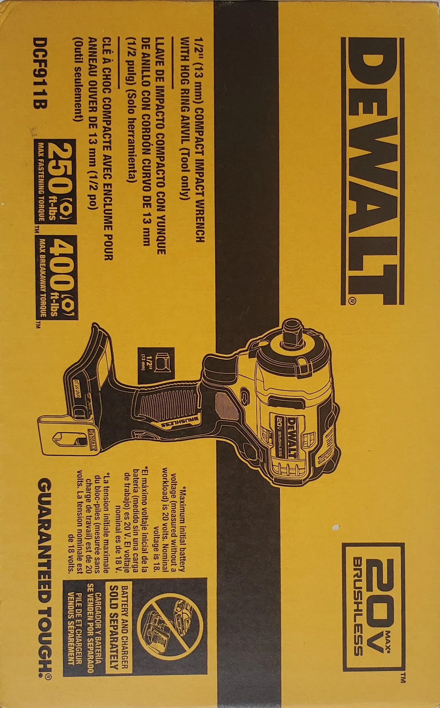Dewalt DCF911B 20V MAX 1/2" Cordless Impact Wrench with Hog Ring Anvil (Bare Tool)