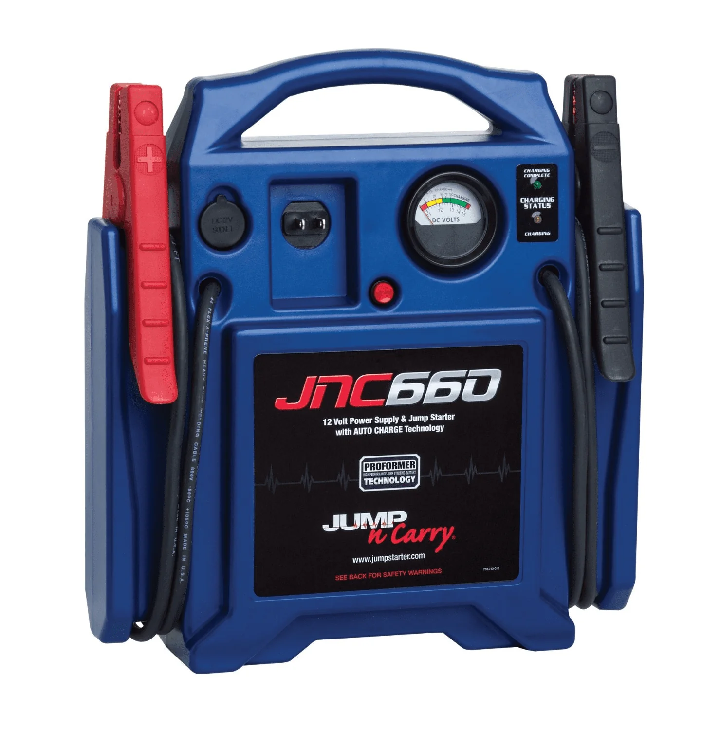 The JNC660 delivers 1700 Peak Amps and 425 Cranking Amps of starting power and weighs just 18 lbs. Perfect for a variety of professional starting environments, including automotive service, fleet service, auto dealerships, auto auctions, marinas, implement dealerships and more. Give it a try and you'll see why it's the choice of Pros the world around.