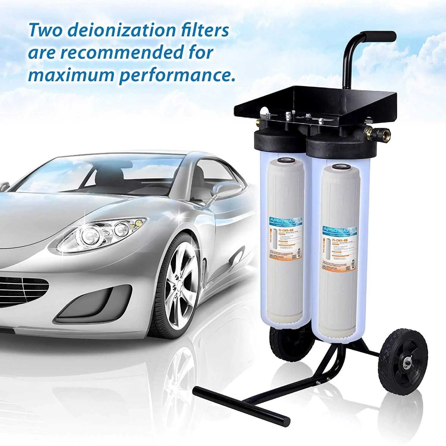 The APEC Spot-Free Car Wash Filter System effectively remove all of its mineral ions to produce ultra-high purity water without developing scale buildup. This point-of-use combo system can effectively filter out mineral ions such as sodium, calcium, iron, copper, chloride, sulfate, nitrates, phosphates, silica, and ammonia to deliver clean and spotless water to your water hose. Maximum Dimensions: 12" x 19" x 35" Weight: 51 lbs Maximum Temperature: 100ºF Maximum Pressure: 90 psi Initial Pressure Drop: 1 psi @ 15 GPM flow rate Input & Output Line Size: 3/4" FPT Bypass Adapter Standard Capacity (gal.): 50 ppm = 1200 gallons 100 ppm = 600 gallons 200 ppm = 300 gallons 300 ppm = 200 gallons 400 ppm = 150 gallons 500 ppm = 120 gallons