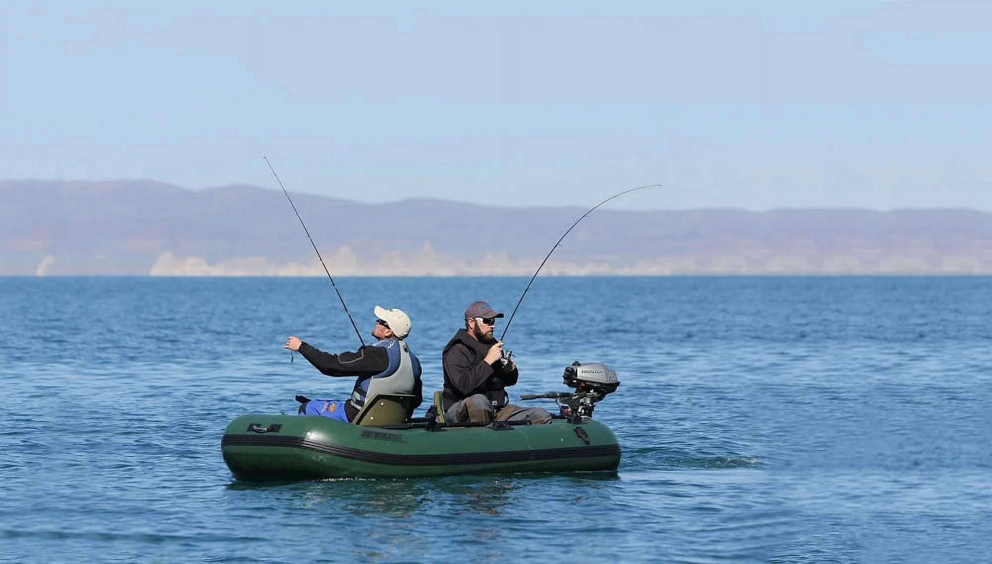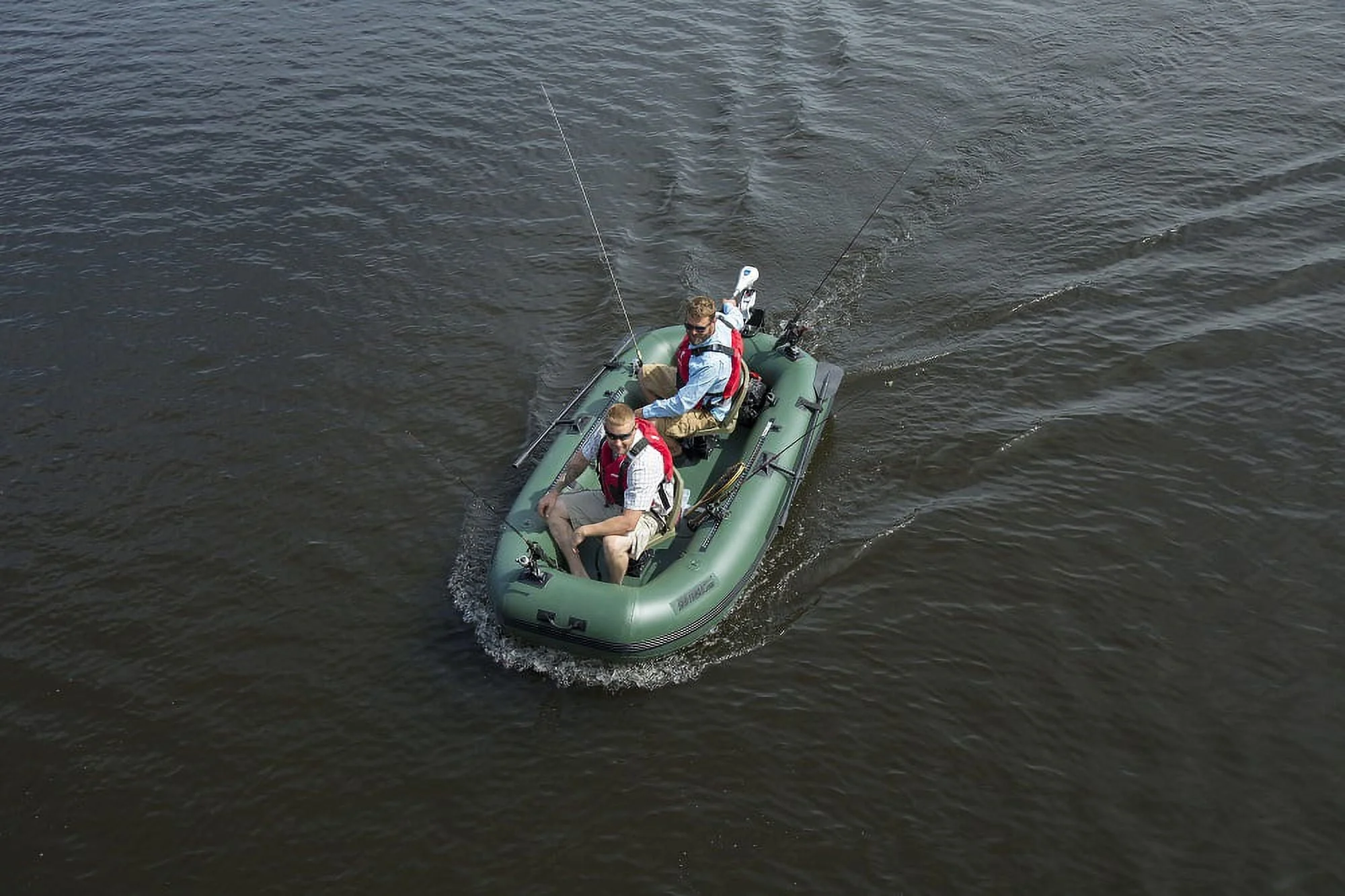 Designed for the pros, featuring two removable 360° swivel seats on 7" pedestals, 2 Universal Scotty® Mount Pads, 2 Universal Scotty® Deck Mounts, 2 Scotty® Rod Holders and a motor mount and 4 built-in rod holders. The Hunter green Stealth Stalker 10 is a new kind of fishing boat equipped for use in various fishing conditions.. on rivers, lakes, bays..in calm or rough weather. Comfortable for two, easily handled by one! this roomy, portable, light weight boat features a fully enclosed hull for use on almost any body of water. Wide sectional floorboards provide plenty of fishing space and a conveniently located stow bag makes for easy access. The new Hunter green Stealth Stalker 10 is a stealthy inflatable boat that's perfect for fishing or hunting. Lightweight and portable it goes anywhere and sets up in under 15 minutes! utilizing a round-hull configuration with an inside cockpit this enclosed boat gives anglers a safe secure feeling while fishing in calm or rough seas.