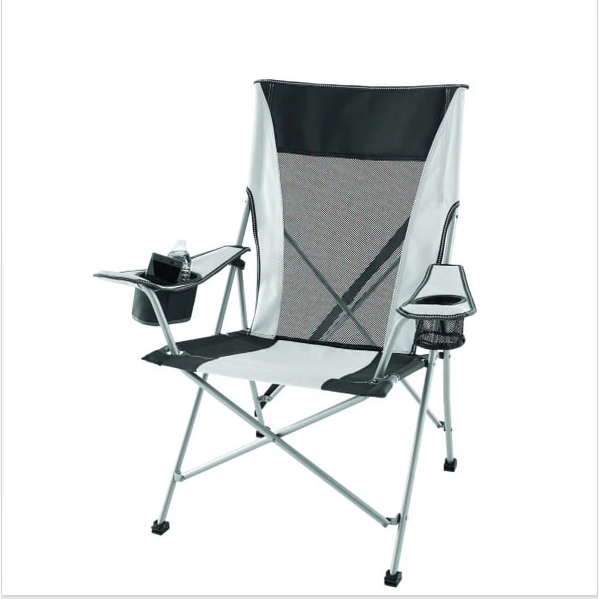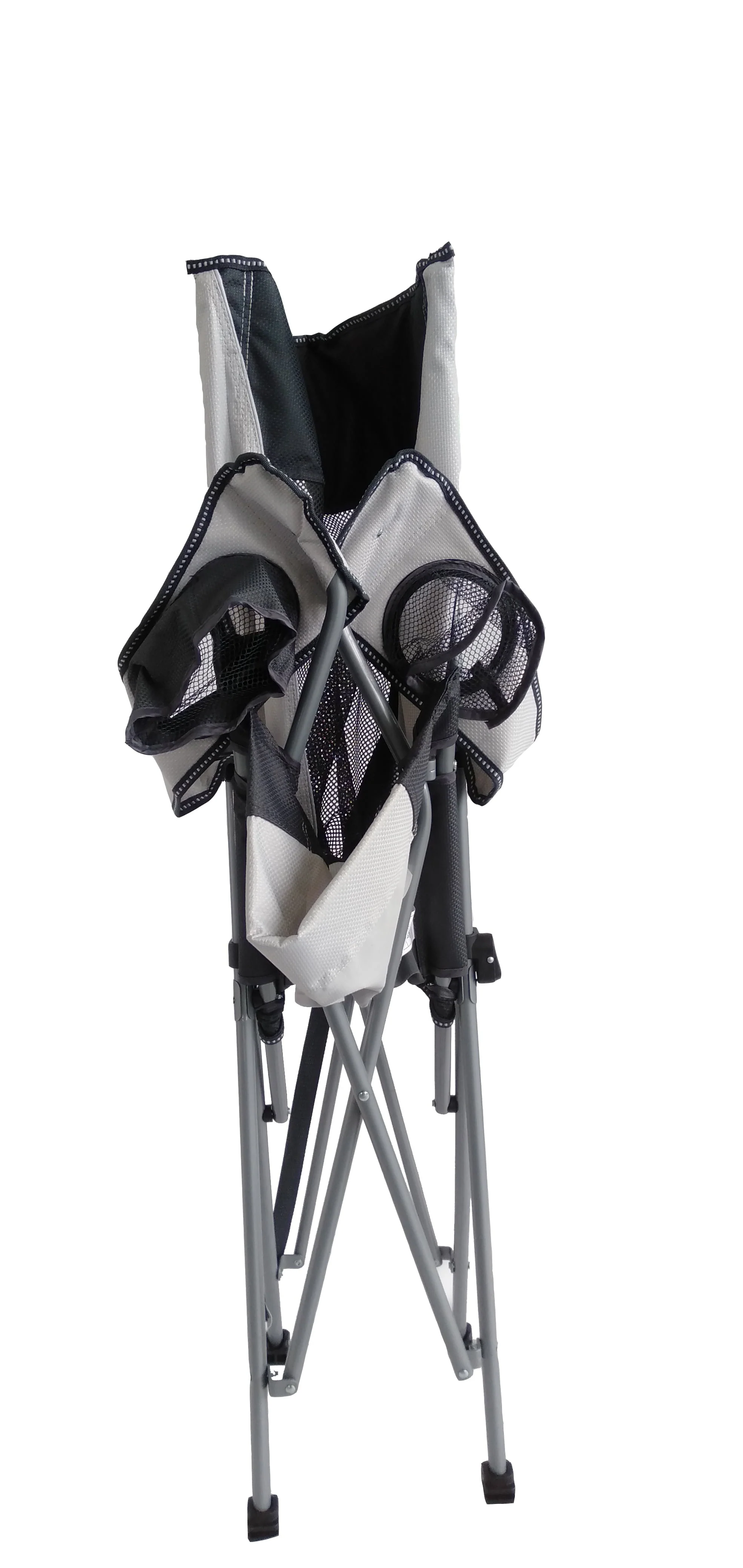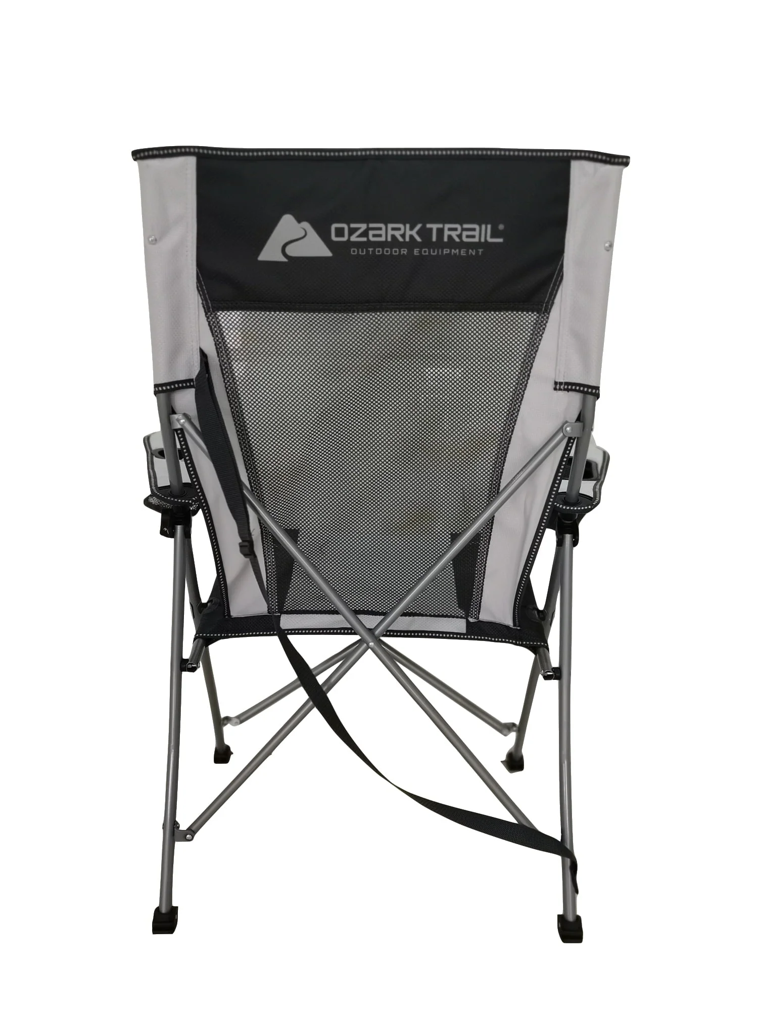 The Ozark Trail Tension Camp Rocking Chair offers versatility, comfort and style for your outdoor and camping needs. It's made with a sturdy steel frame. It can stand as a regular outdoor chair or convert into a rocking chair. With a cup holder and mesh backing for temperature control, it provides extra comfort. The fabric in the Ozark Trail rocking chair is 100 percent polyester and is grey in color with a black accent. A nice added feature to this item is the pocket on the other arm that allows for the protection of valuables, such as cell phones and wallets. The foldable rocking chair requires no assembly and is easy to store and transport. The dimensions for this item come in at 35.5"W x 39.5"D x 41"H, which is just right for relaxing outdoors or attending a sporting event. The Ozark Trail Tension Camp Rocking Chair is the perfect choice for any adult that loves the outdoors.
