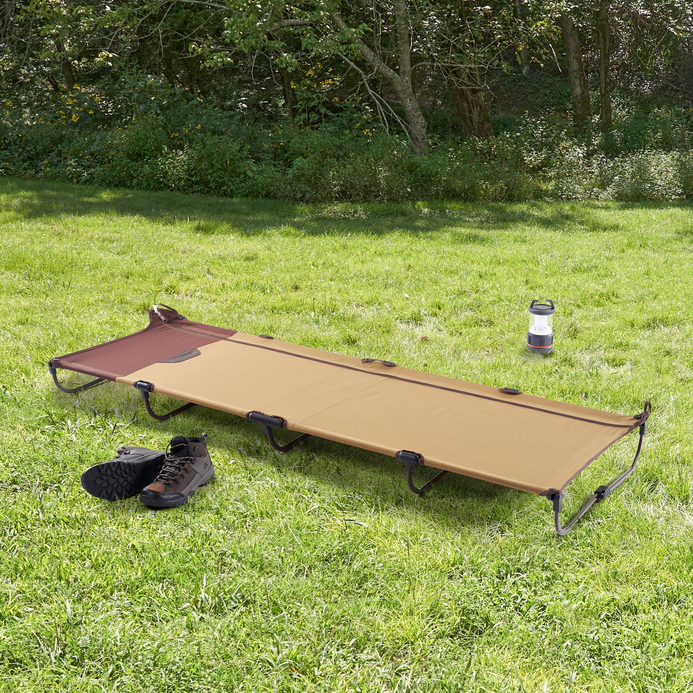 For a comfortable, space-saving sleeping option, choose the Ozark Trail Zipper Cot. This cot features an innovative, compact-folding design that will allow you to have a spot to sleep while camping or even backpacking. This versatile cot can also be used as an option for an additional place to sleep at home. Setup is quick and simple, thanks to the zipper design and easy-locking legs which provide ideal stability while sleeping. The steel frame is powder-coated for maximum durability and can support up to 300 pounds, so you can have peace of mind knowing you’ll have a safe sleep under the stars. Despite its small packing size, this cot measures 75.5" x 26" x 5.5 " , providing enough space for a comfortable, relaxing night’s sleep. Tired of sleeping on the ground while camping? If so, choose the Ozark Trail Zipper Cot for compact, comfortable sleeping.