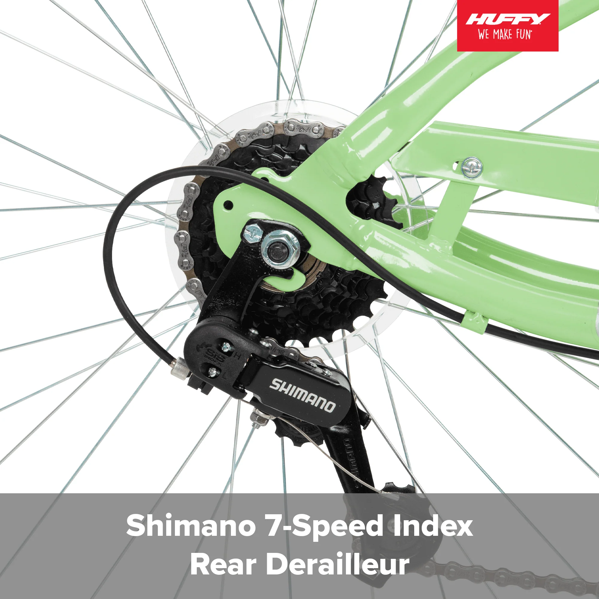 You can tell a lot about something from its name. That is why the Huffy Parkside bike should be named, the most comfortable bike you'll ever ride. One minute on the Parkside and you'll understand true comfort. The perfect fit's frame provides a natural riding position for your shoulders, back, arms and legs. Even your feet rest on the ground when you stop. The Huffy Parkside makes every ride comfortable. Easy 7-speed twist shifting is perfect to handle bike paths, hills, and city streets. Linear pull brakes react quickly when needed. The seat, grips, and pedals are each designed for superior comfort. The saddle combines dense padding and springs for a stay-comfortable ride. The ergonomic grips are more natural for the hands while the pedals have dense material for sure, comfortable footing.