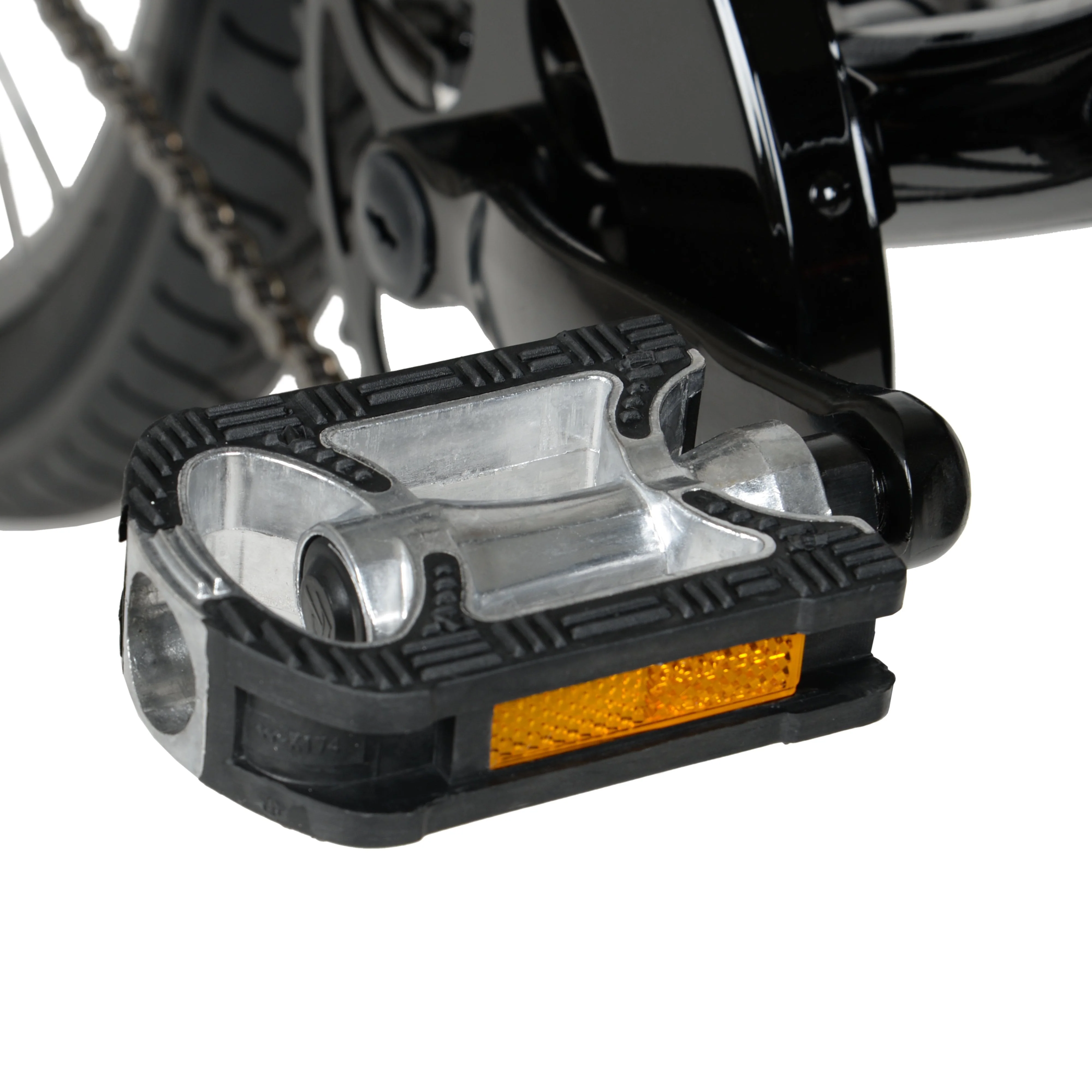 Ride in style with Hyper Bicycles men's 26" beach cruiser bike in black. This bicycle has a steel frame with easy-to-use pedal backward coaster braking. For your comfort, this bike includes platform cruiser pedals, lightweight alloy wheels, and a padded spring comfort seat. Full wrap fenders create protection for your tires. Large upright handle bars help put the rider in an upright comfortable ridding position. Perfect for your daily commutes or weekend leisurely rides, the Hyper Bicycles woman's beach cruiser bike will help make your trips more enjoyable.