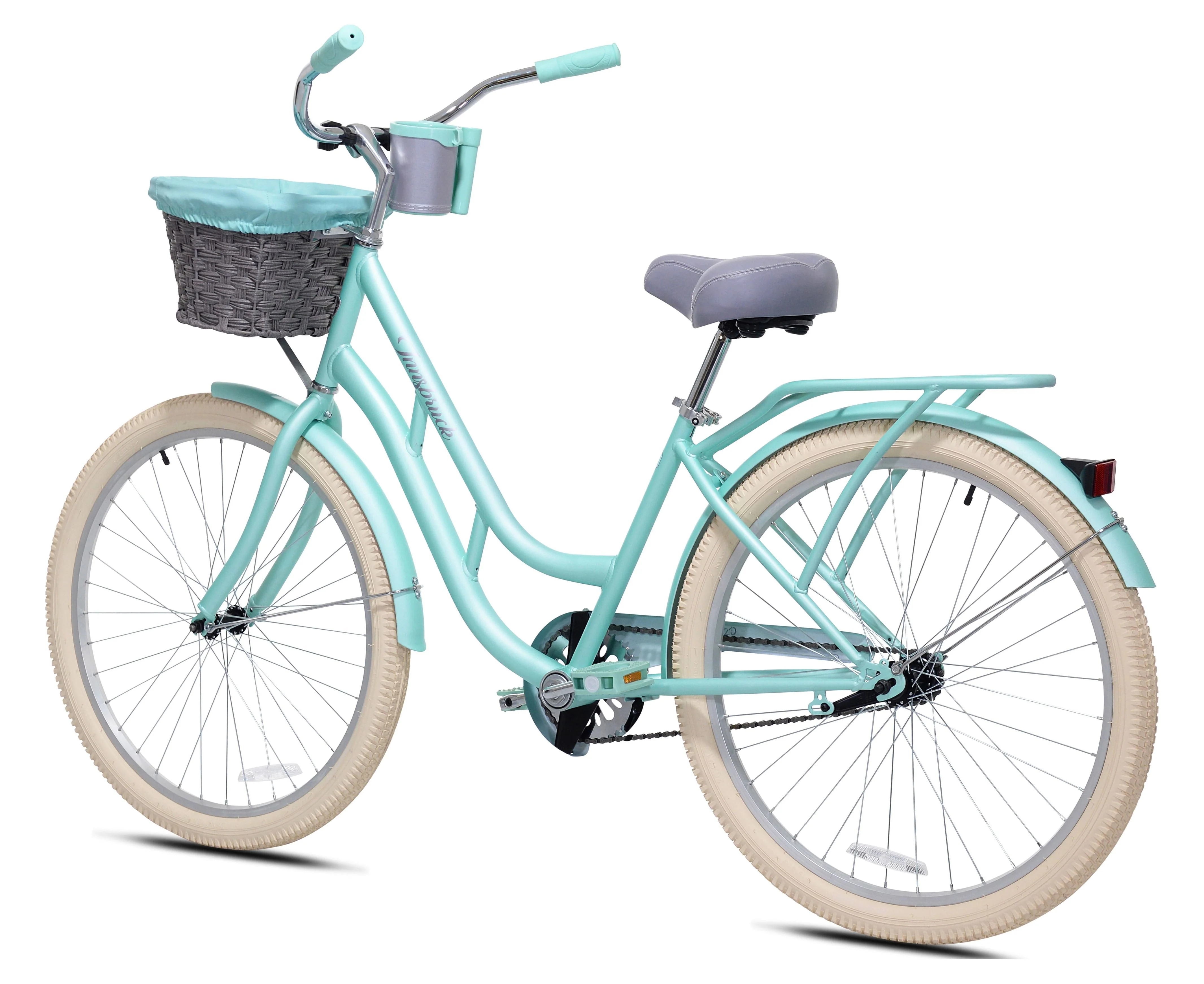 The cruiser of your dreams! Discover the ultimate beach cruising experience with the 26" Kent Innsbruck cruiser Bike. Featuring a step-thru aluminum frame with an integrated rear rack, this bike is rust-resistant, lightweight & nimble. The coaster brakes are easy to use, just pedal backwards to stop. The classic-looking cruiser tires are smooth and provide a comfortable ride. With a single speed drivetrain, you can keep it simple and enjoy the ride. The seat, stem and handlebar are quickly adjustable so you can find the perfect riding position. The front storage basket and rear rack provide practical storage solutions while the cup holder keeps your drink within reach. Pack up your essentials and hit the beach with the Kent Innsbruck Beach Cruiser Bike!