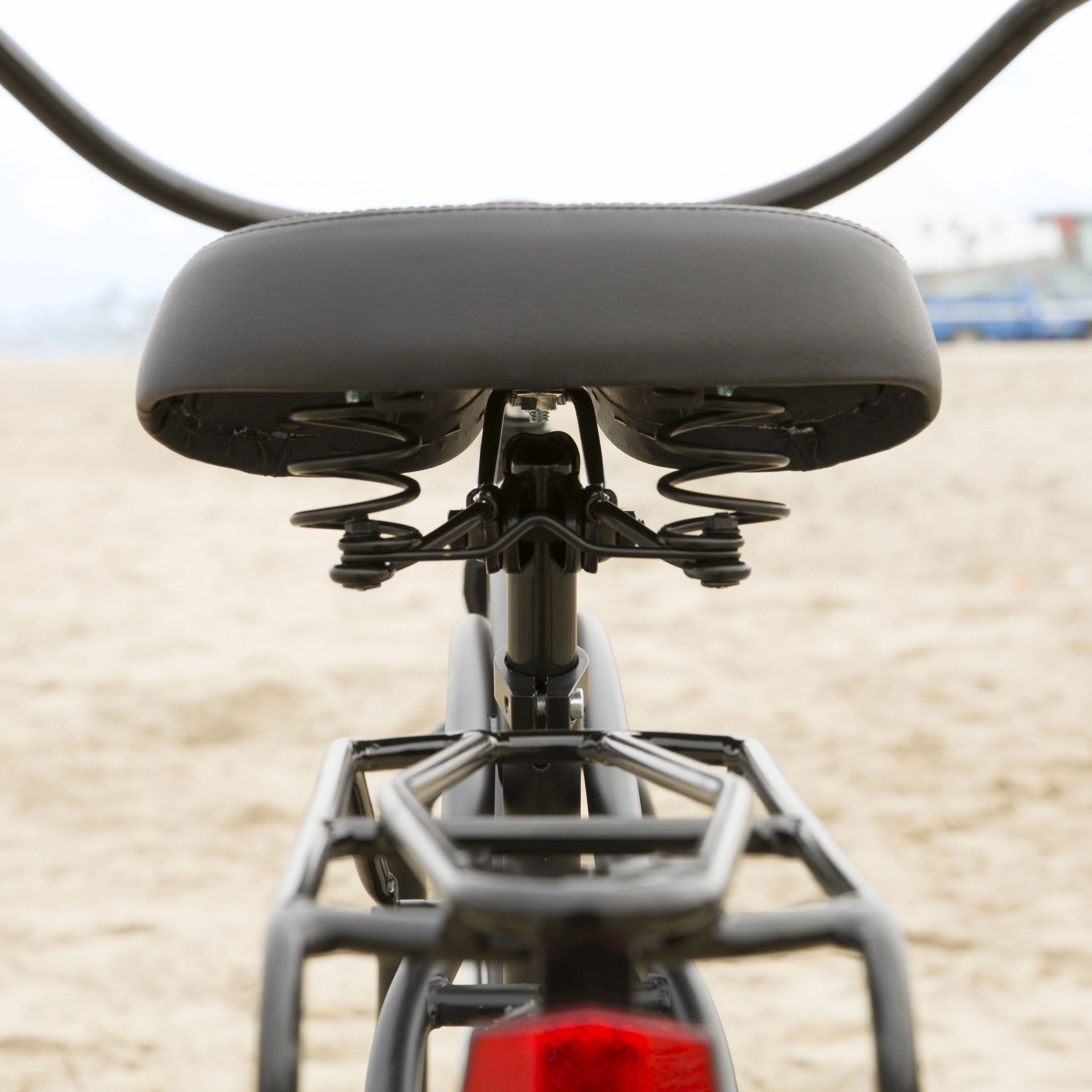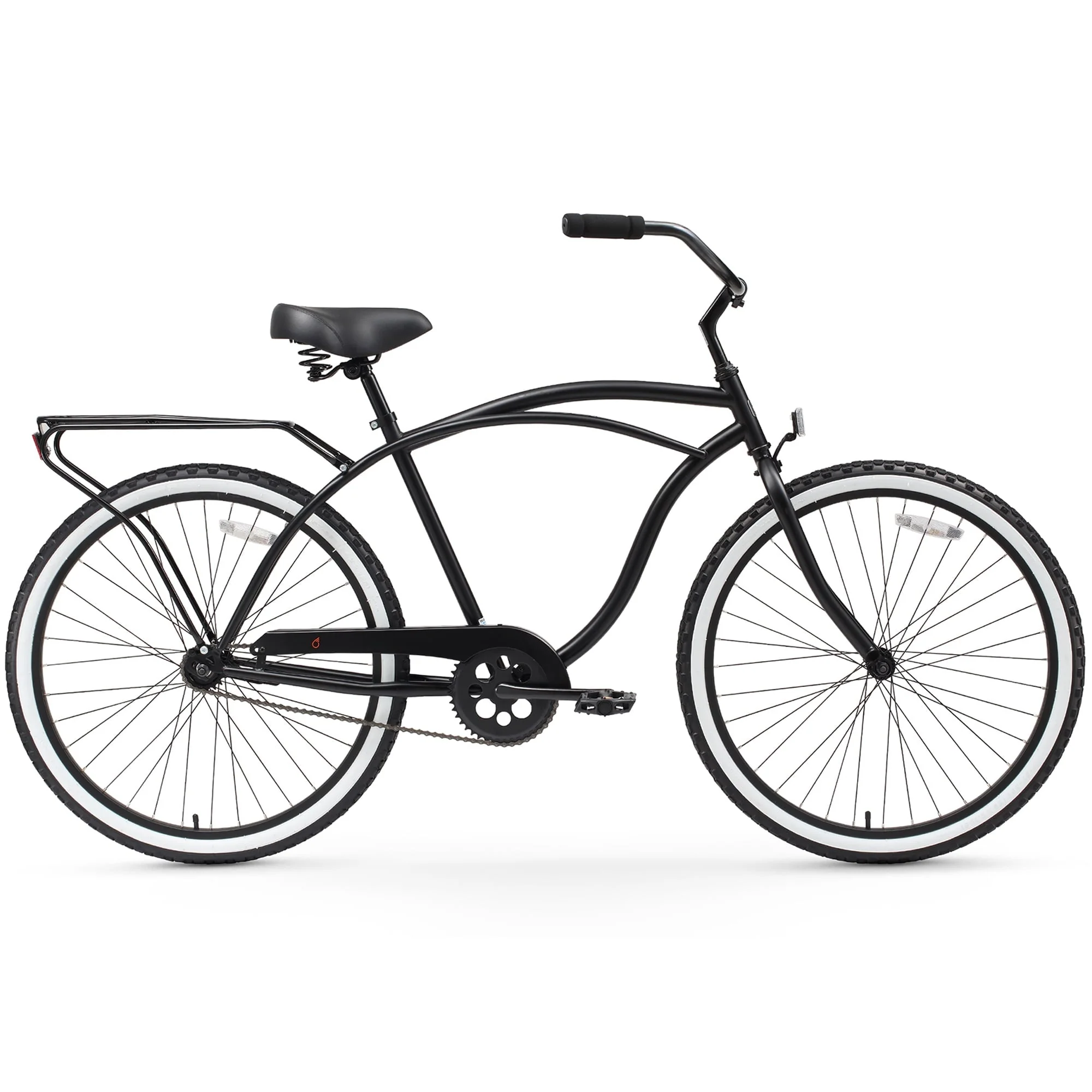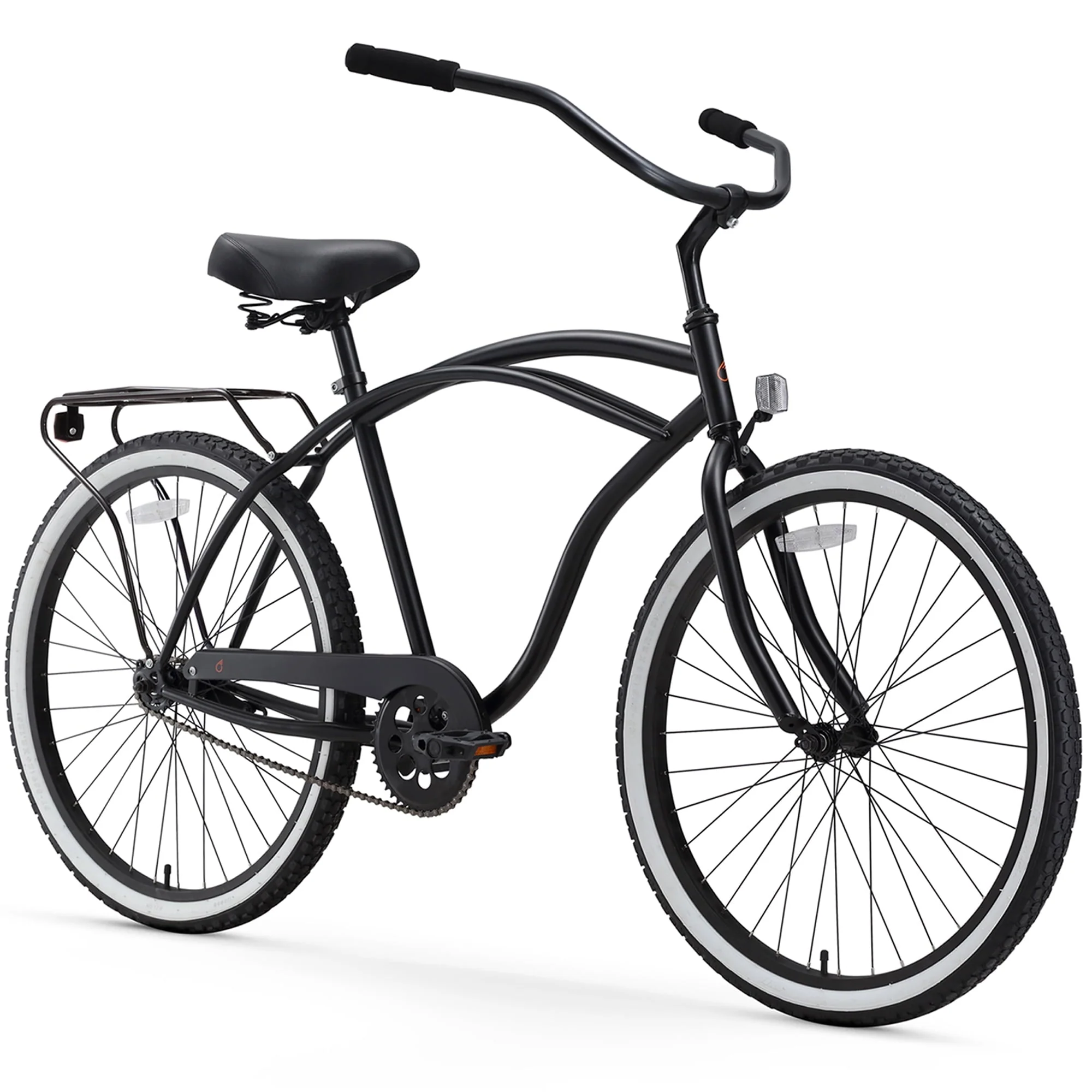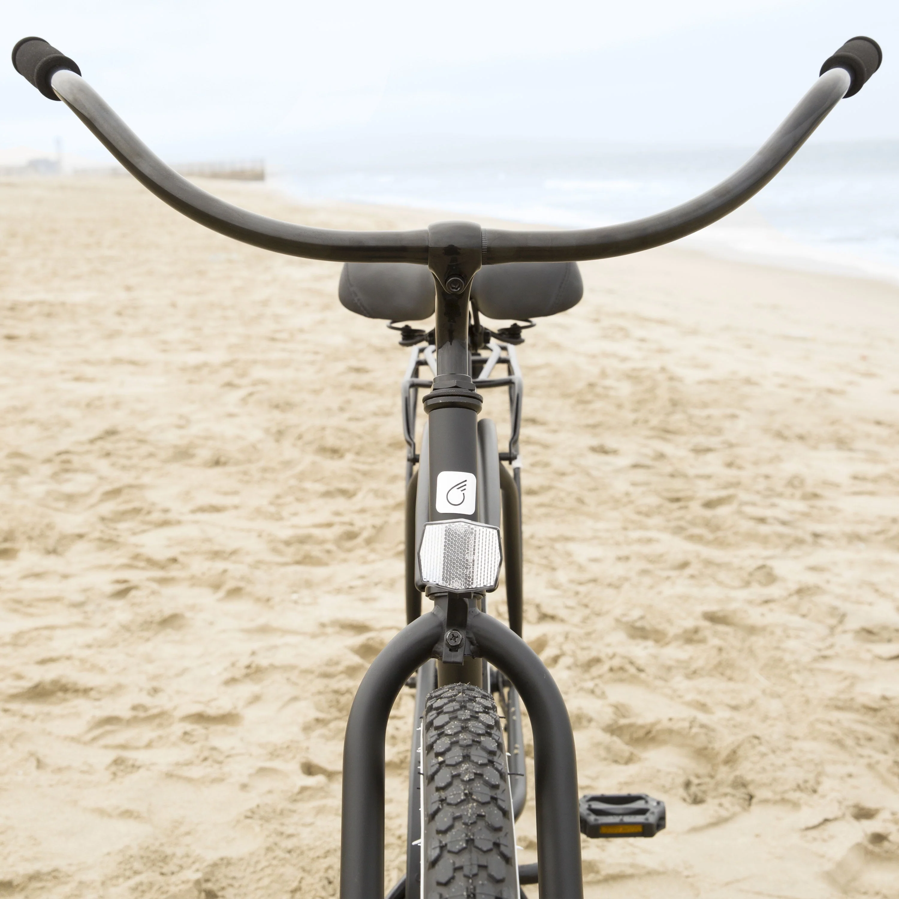 The sixthreezero Men's Around the Block Beach Cruiser features a classic curved design that is ideal for riding around the neighborhood. The 19-inch durable steel frame and wheels shine against the wide, whitewall tires with waffle tread for solid gripping. Available in both a single and seven speed option, you'll be ensured a smooth and stylish ride as the front and rear handbrakes can be used for easy stopping. When you're not speeding to a halt, you can rest your hands on the handlebars that are complete with high-density foam grips. If storage is an issue for you, simply hang your pannier bag on the rear rack. With the sixthreezero Men's Around the Block Beach Cruiser, you'll always enjoy your ride in style!