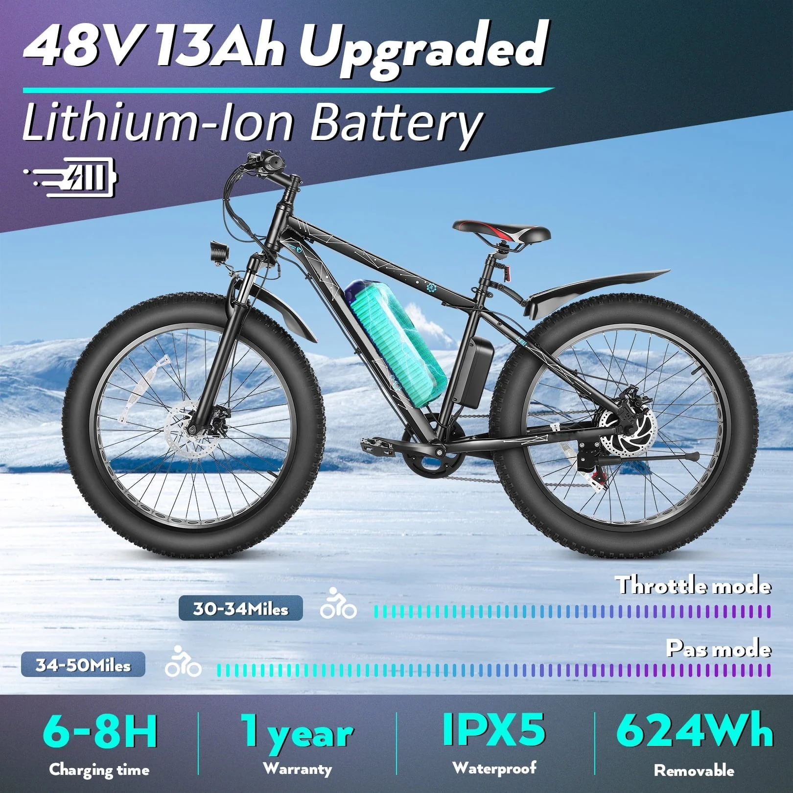 - Battery:48V/13Ah Lithium Ion Battery