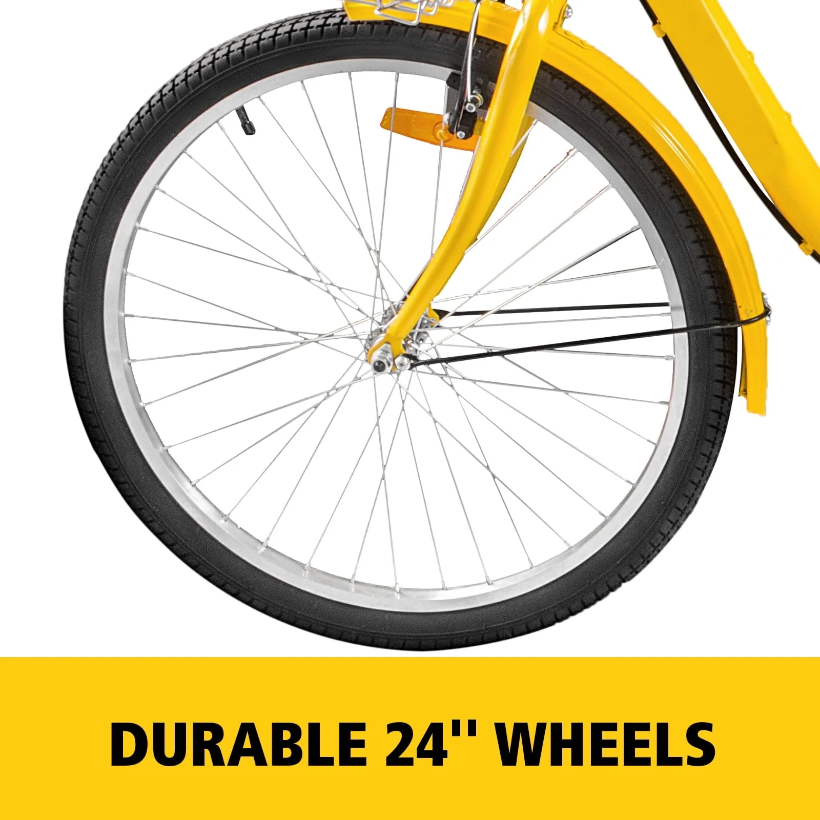 Our 24-inch bike is suitable for 63-67 inch high riders. Besides, the large basket provides you with more space to put things, creating a more comfortable and convenient riding experience for you.