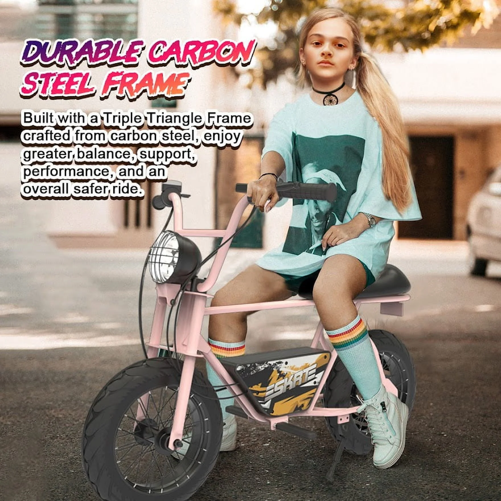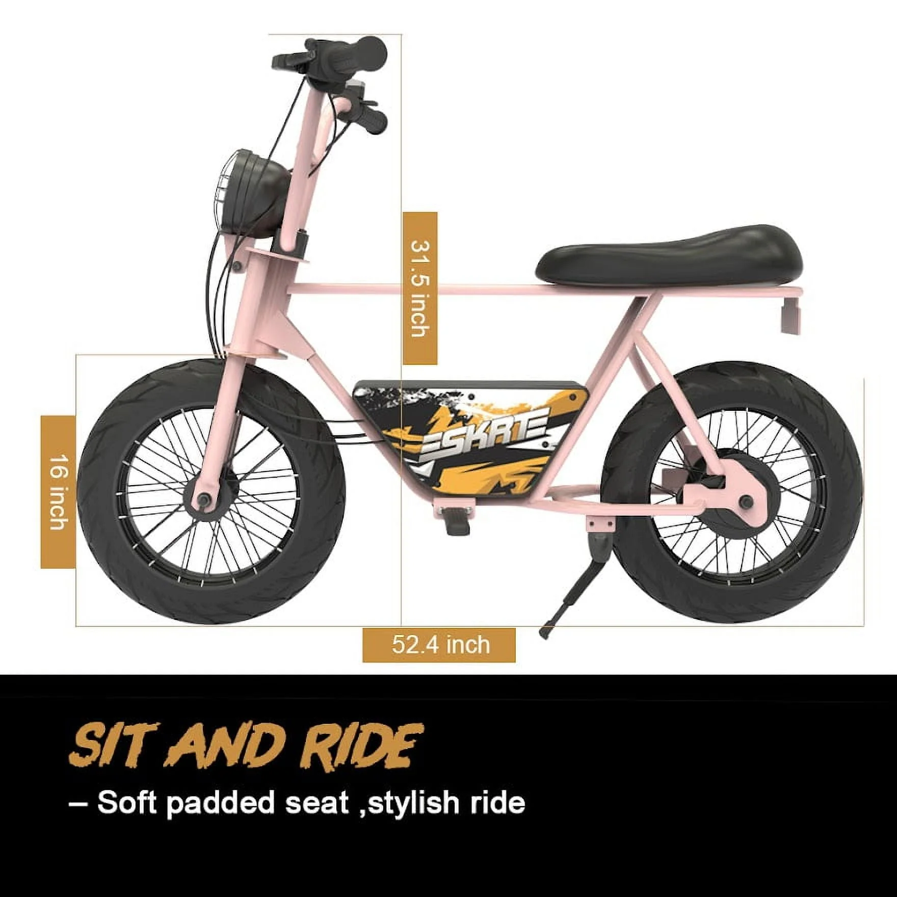 • SKRT Electric Balance Bike Bicycle Scooter, 250W 24V Brushless Motor, Big LED, 16 in Rubber Tire, Max Distance 12 MILES, Max Speed 12.4MILE/H, Max Load 165 lb, Safety Battery Switch