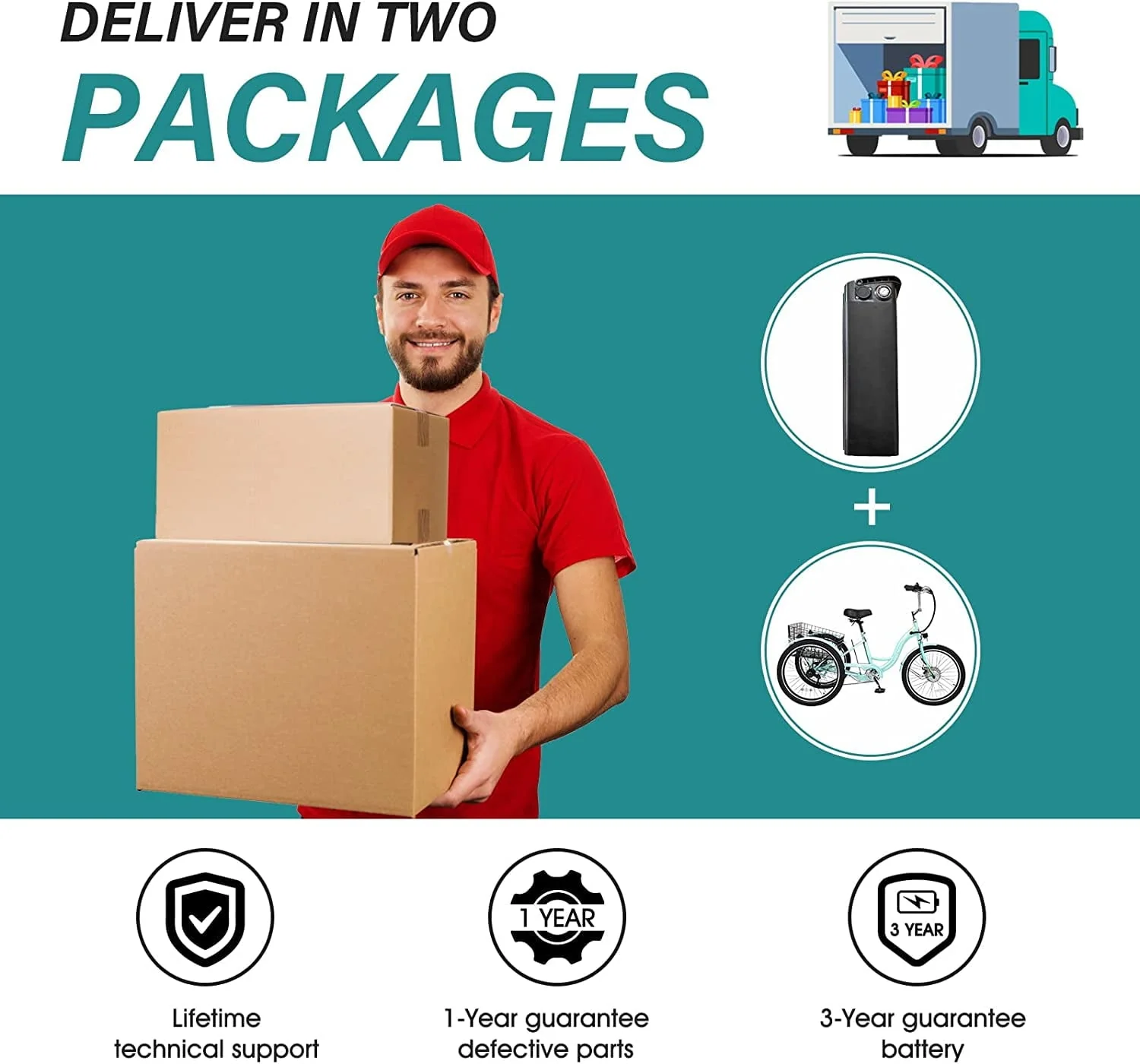 MOONCOOL Electric Tricycle has three driving modes: electric & power assist & pedal. The different options electric trike will make you enjoy riding and exercising. The electric vehicle is equipped with a 350w motor, with a maximum speed of 16km/h. The detachable 36V 10Ah lithium battery can be fully charged within 5-6 hours. The electric tricycle bike's pure electric range is about 25 miles. The battery and bike are shipped separately, so you will receive two packages. The total vehicle weight of cruiser electric tricycle is about 69.4lbs, which suitable for 5'4" to 6'1" height and 110~350lbs weight. The 3 wheel electric bicycle is 24 inch, and the basket of electric mountain tricycle is 13*17 inch. You will get a spacious space for pet cages or more types of cargo when you feld the integrated folding basket. And the seat of electric tricycle can be removed on proper position to meet your height.