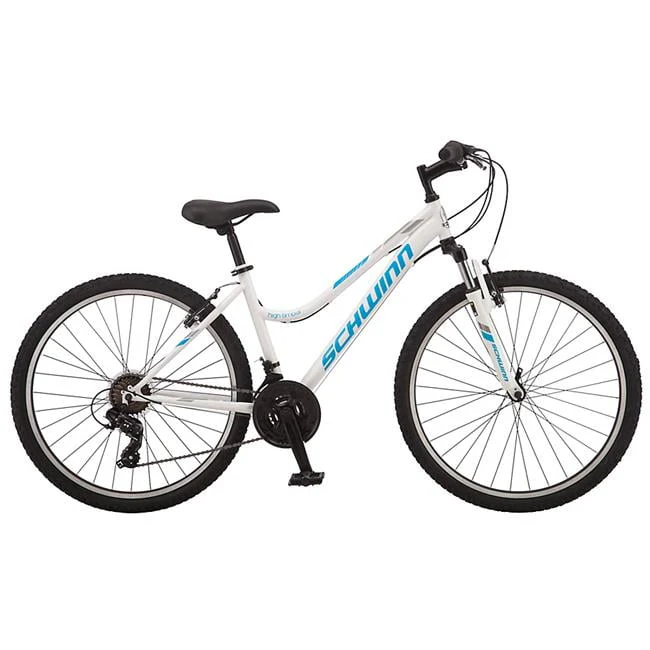 The Schwinn high timber is ideal for riders who want to take on a variety of terrain. The steel frame offers durability for those tough courses. 21-speed Shimano twist shifters with Shimano rear derailleur for smooth navigation of most any surface or incline. The front and rear alloy linear pull brakes provide precision stopping power. The wheels feature alloy rims for lightweight strength and all terrain tires. Plus, the high timber's quick release seat post lets you make easy height adjustments, so you can find your perfect fit.
