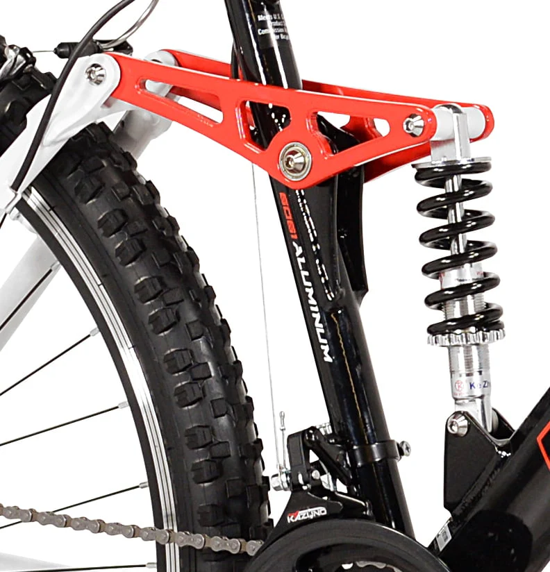 V2100 from Genesis bicycles is just what the doctor ordered for on and off-road exercise, and fun. Aluminum four-bar linkage suspension frame with a strong spring-loaded suspension fork, front disc brakes, rear linear-pull handbrakes, and a 21-speed drivetrain with Revo twist shifters from Shimano are the vitals. All this setup with a comfortable riding position featuring a padded saddle and rise handlebars will keep you out of the chiropractor's office.