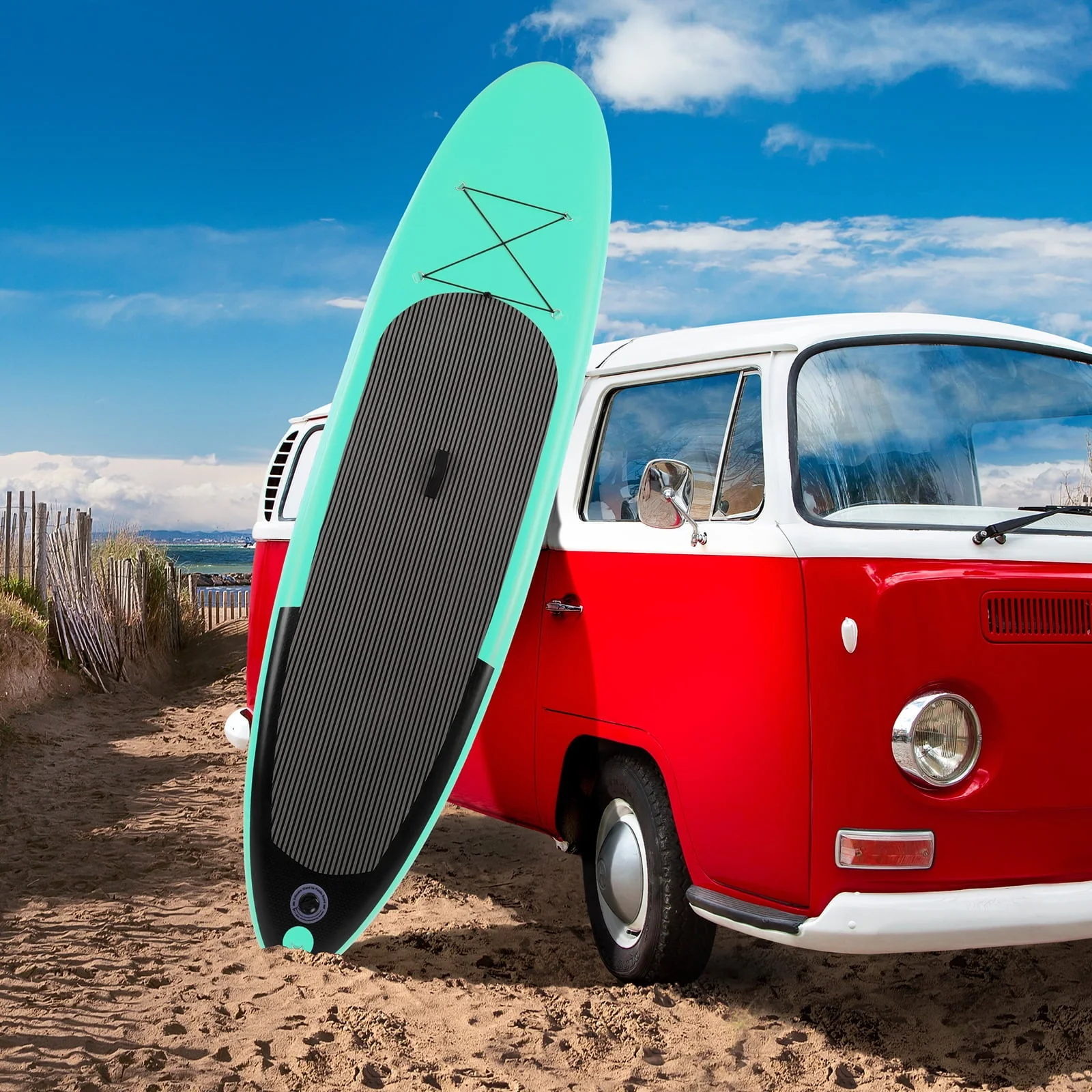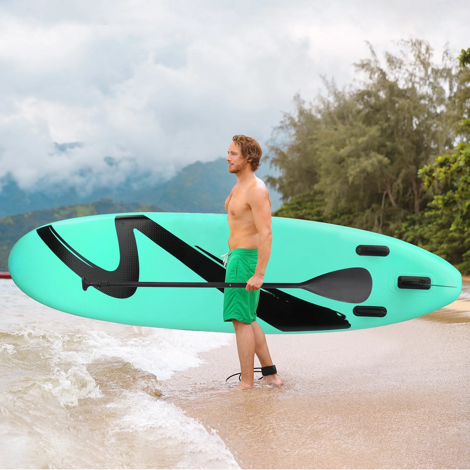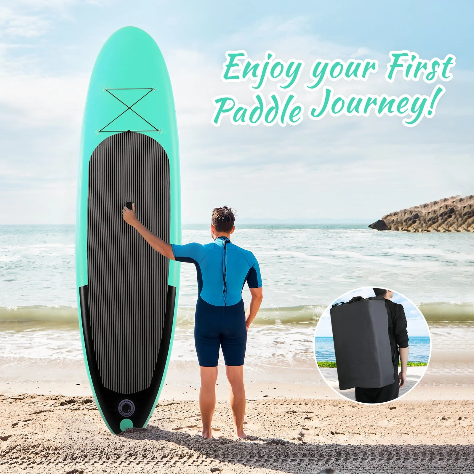 • Arlopu Portable 10' Inflatable Stand up Paddle Board with Aluminum Paddle, Leash, Hand Pump & Backpack for Youth Adult
