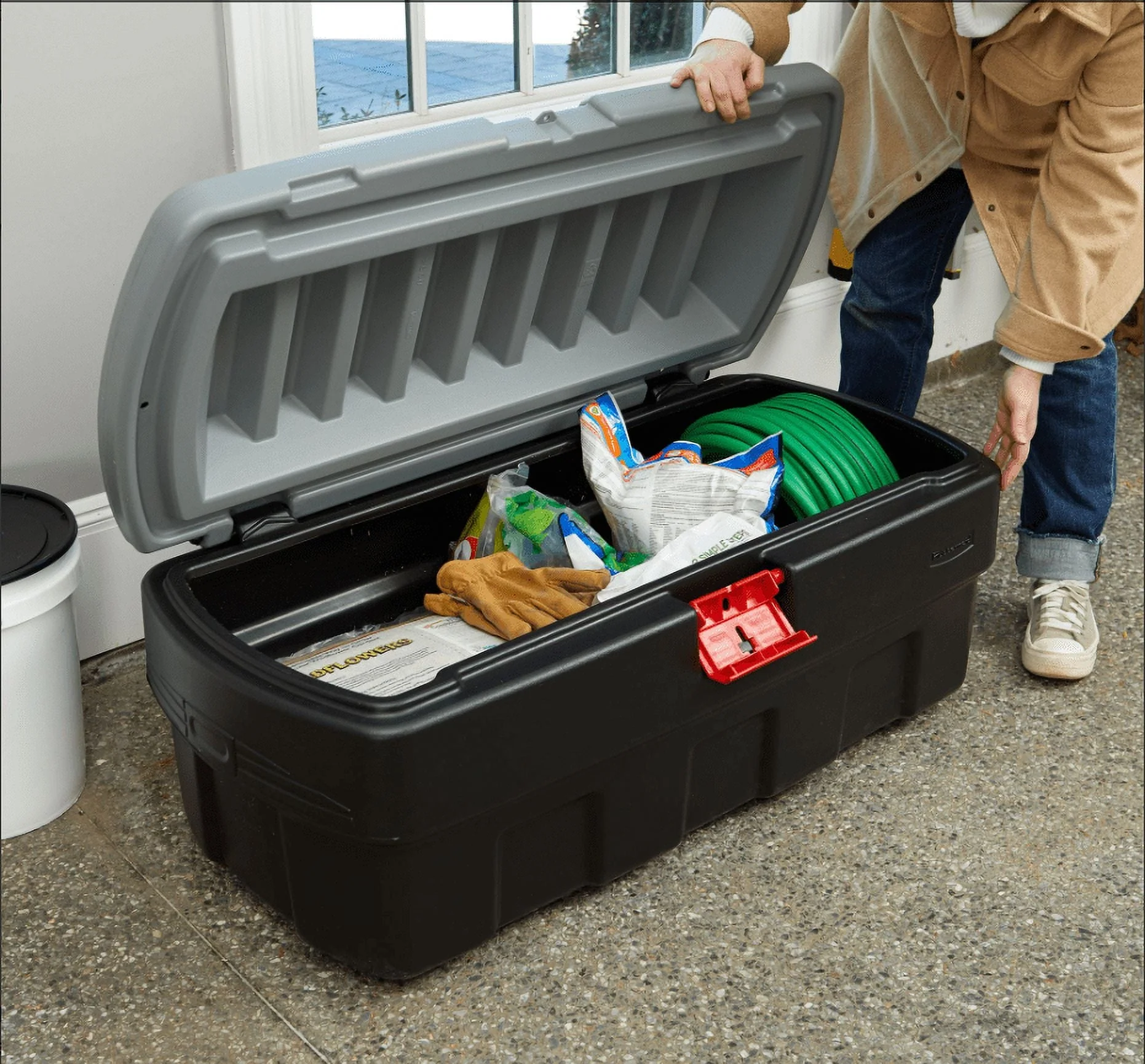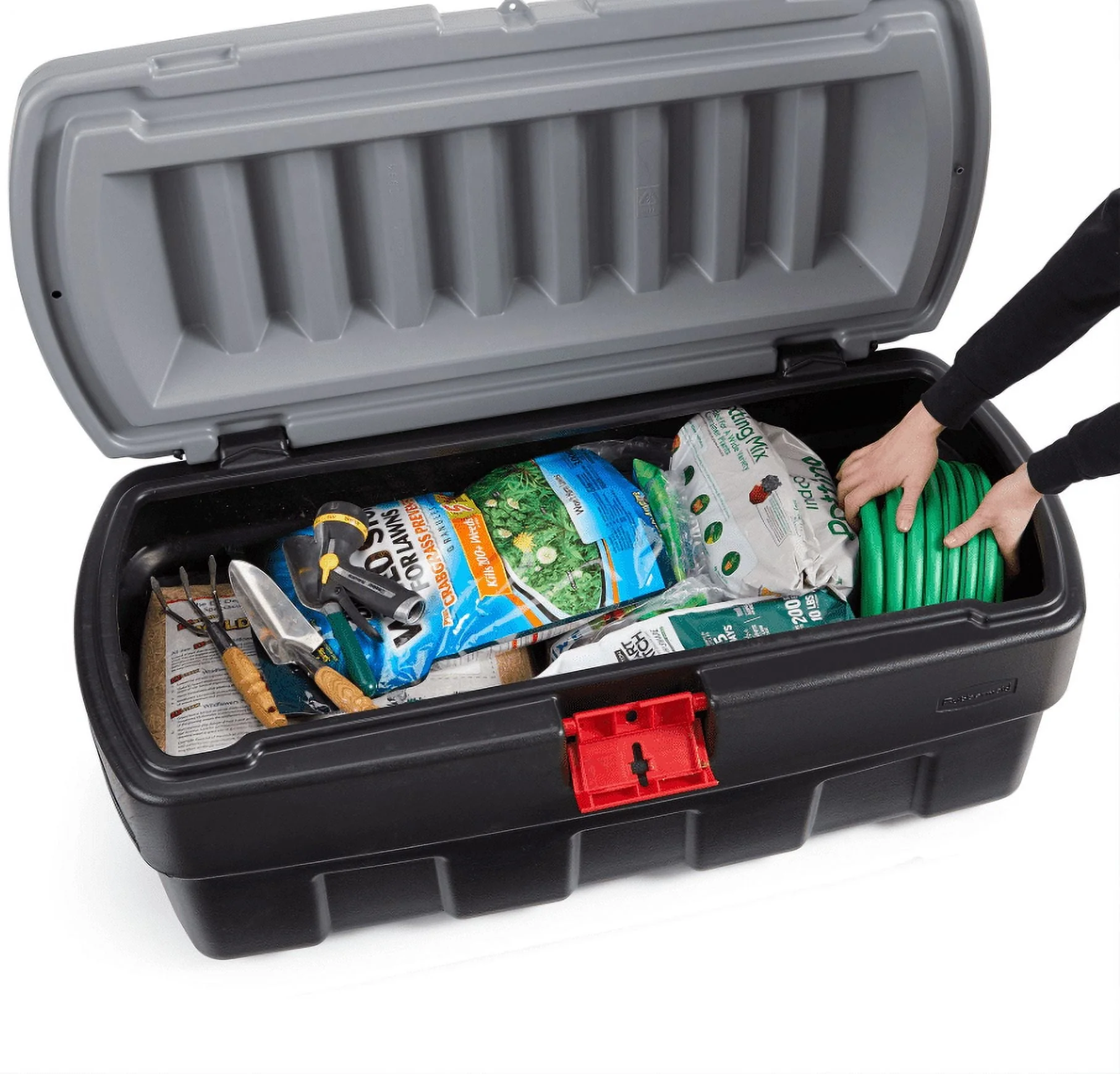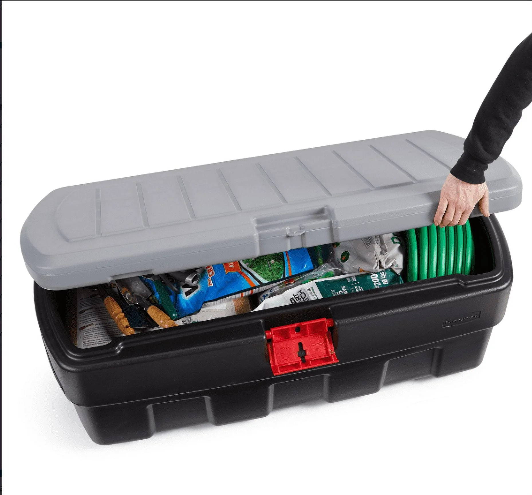 If you're tired of storage containers that crack under the weight of being stacked and stored, it's time to make a change. The Rubbermaid 48 Gallon Action Packer Storage Box is built to be endlessly reusable. Made of weather-resistant material, these totes withstand harsh temperature changes, so you don't have to worry about your items being impacted by the cold or hot weather. These rugged containers are equipped with a lockable lid latches that protects contents from moisture and pests no matter where you use or store it, making long-term storage a simple option. They are stackable without cracking or buckling, are easy to carry, and are washable for easy maintenance. A versatile storage solution for use season after season, this Action Packer Lockable Storage Box from Rubbermaid is a smart choice.