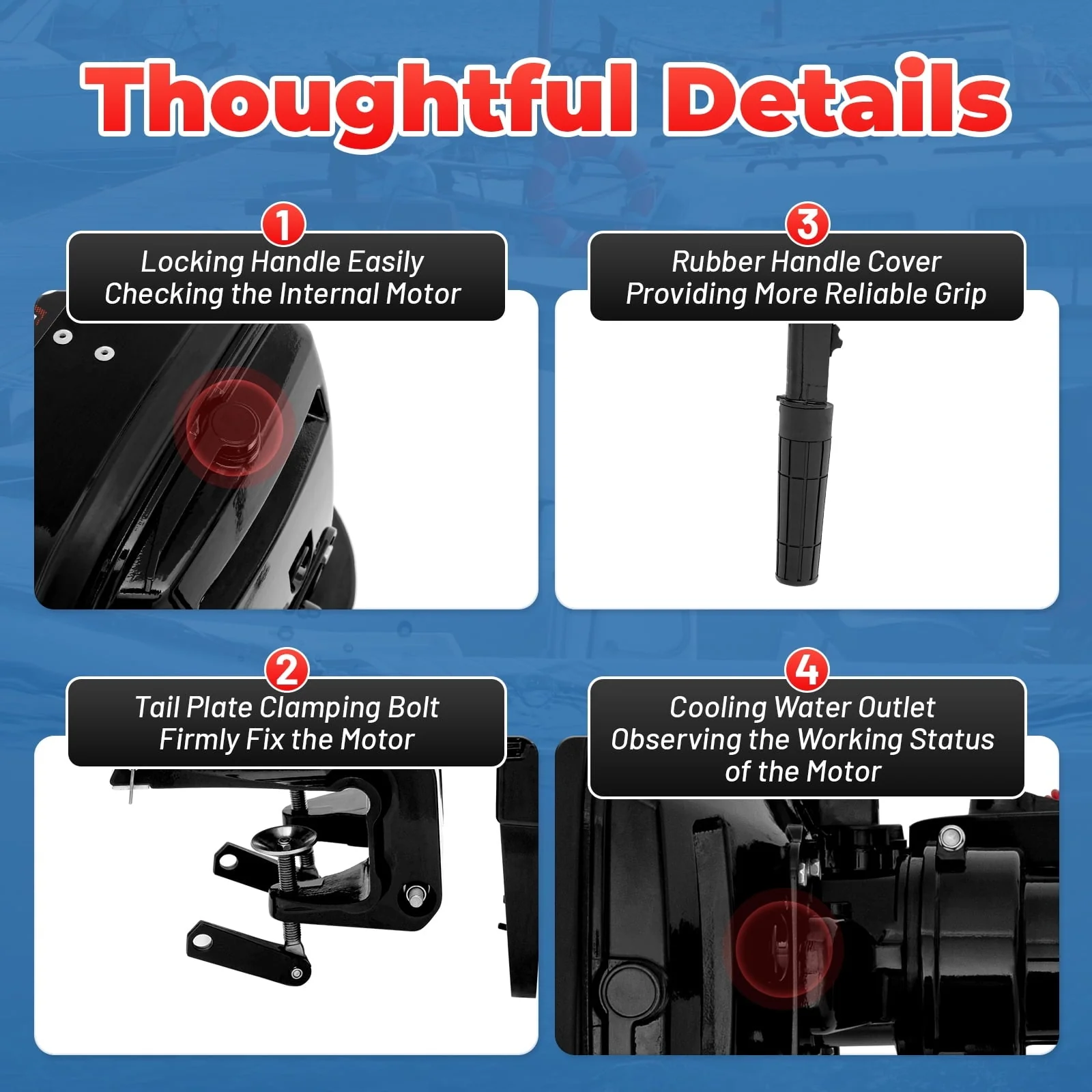 5.Please note that the emergency shutdown rope should be inserted when the outboard motor is started, and the other end should be wrapped around your wrist or belt.