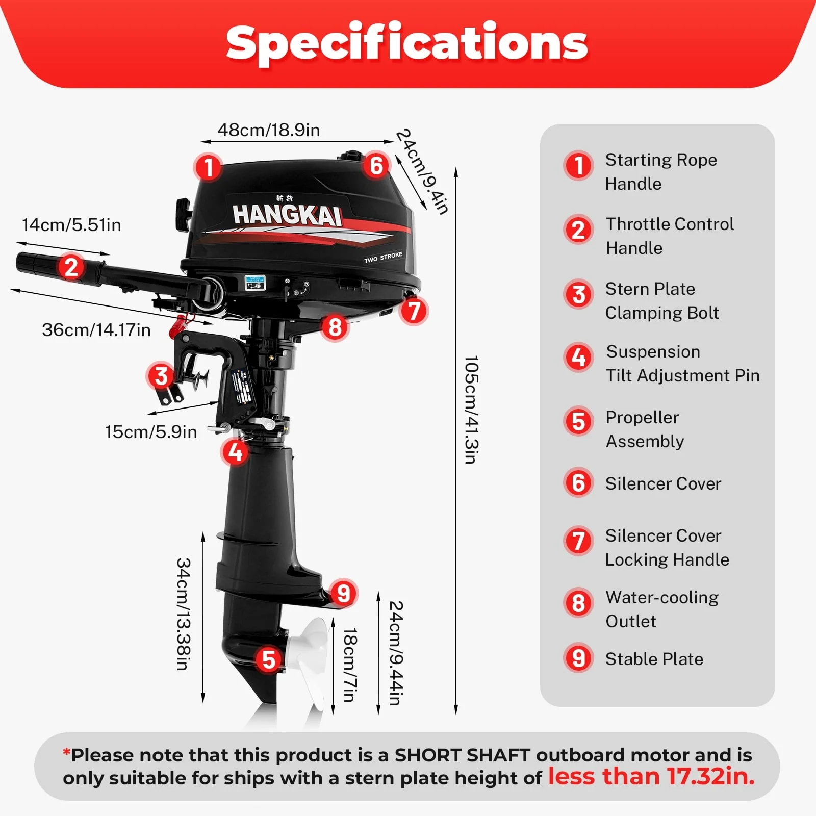 - Adaptive Transom Plate Height: ≤44cm/17.32in