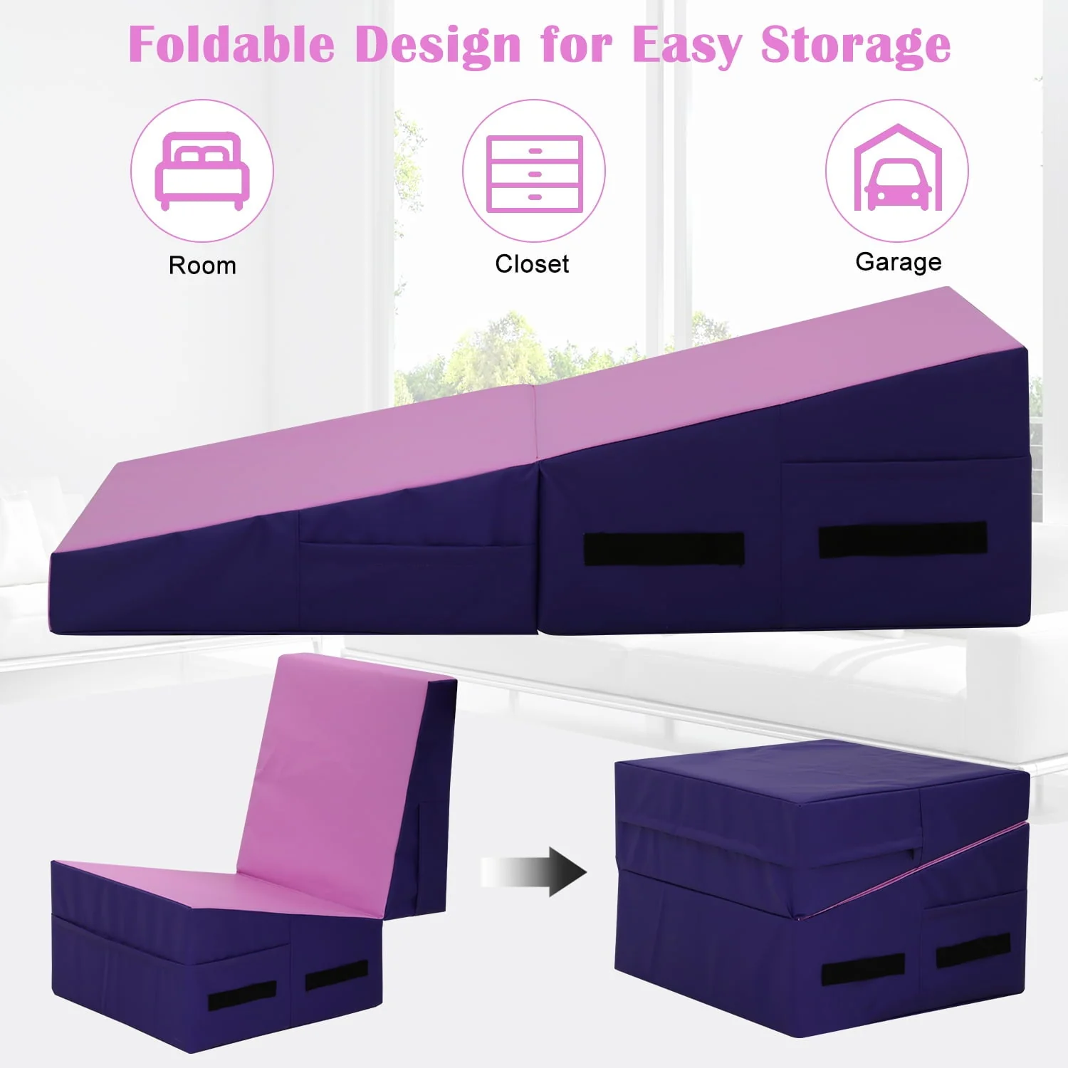 The 48*24*14-inch tilt mat can be used for a variety of physical activities. It can be used not only for gymnastics but also for inversions, walking, tumbling, Pilates, stretching, yoga, martial arts, daily care activities, and other uses.
