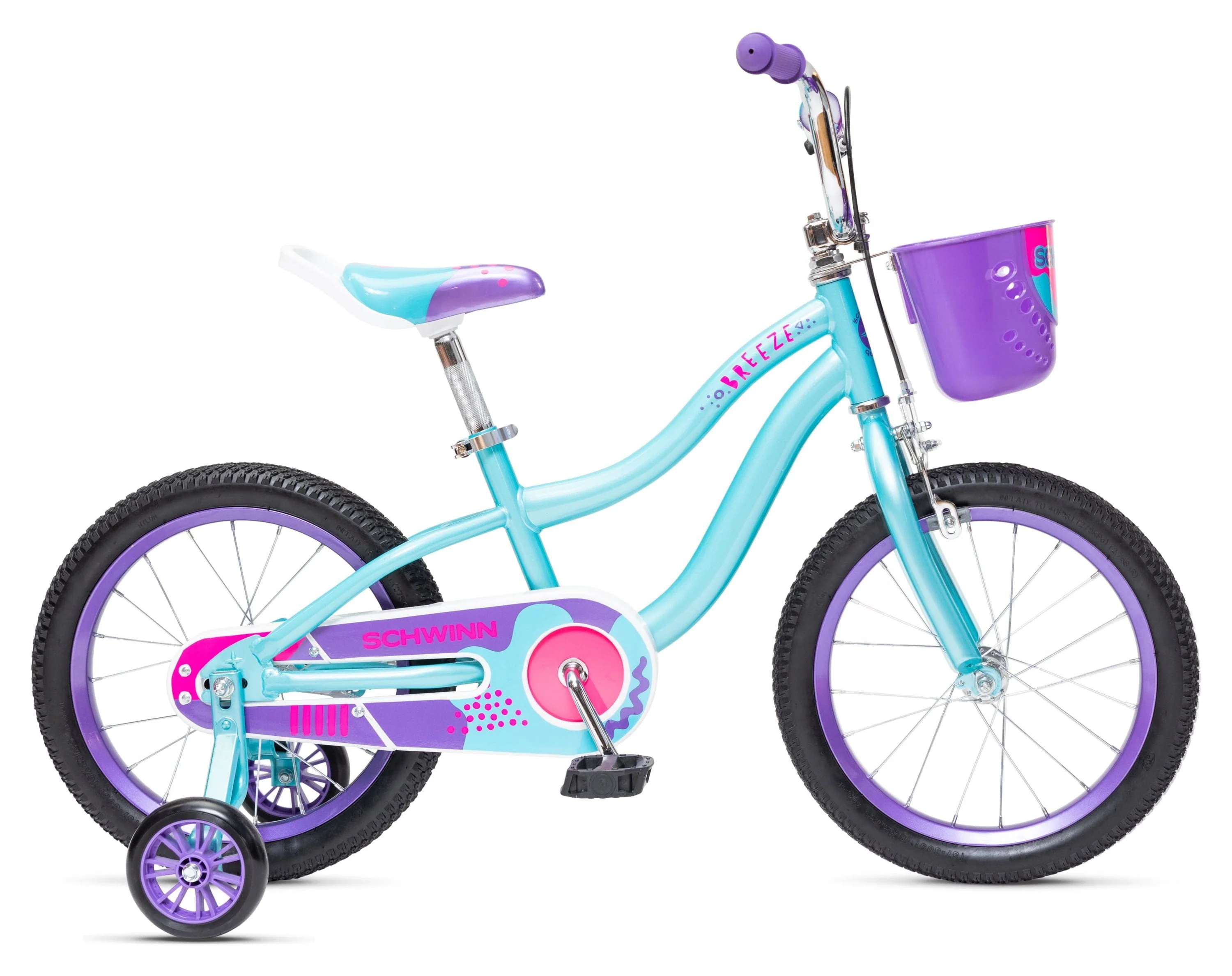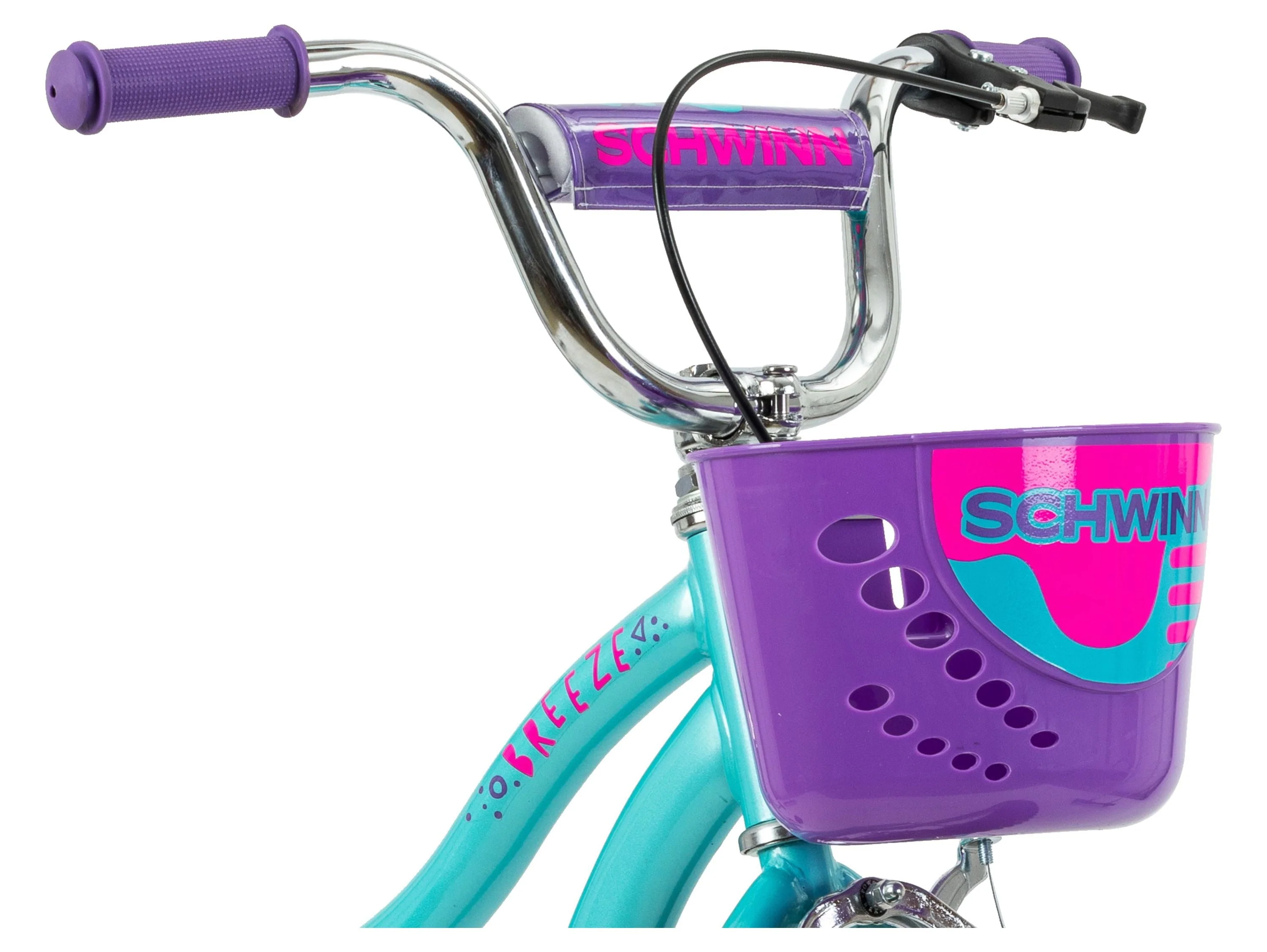 Schwinn Breeze 16 Inch Girls Kids Bike with Basket and Training Wheels, Ages 3-7, Teal and Purple