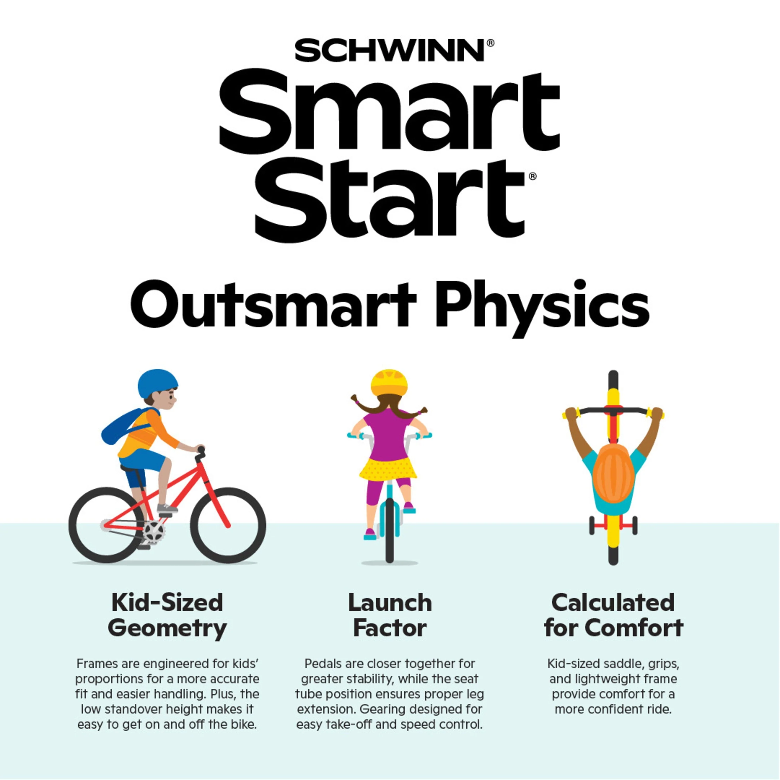 Outdoor fun is a breeze – the Breeze kids’ bike by Schwinn that is! It’s perfect for riding around the neighborhood with friends and family. The Breeze features SmartStart technology: a major feat of kid-size engineering designed to outsmart physics so kids in motion stay in motion. The Breeze also comes with a rear coaster brake for intuitive stopping power. Removable training wheels provide extra stability, while a tool-free adjustable seat post makes it easy to fine-tune the fit. Make riding a blast with the Breeze bike by Schwinn.View more from us on our brand page.