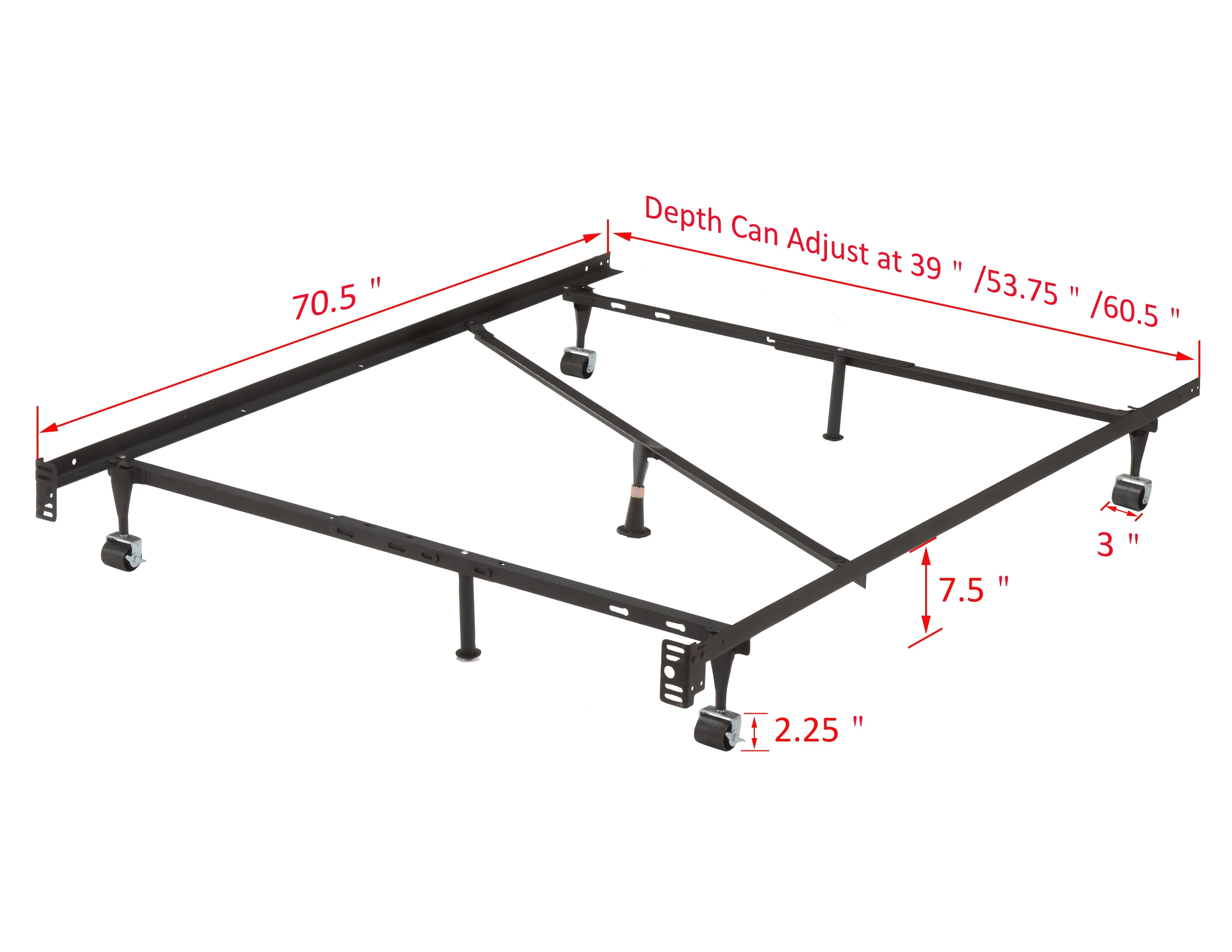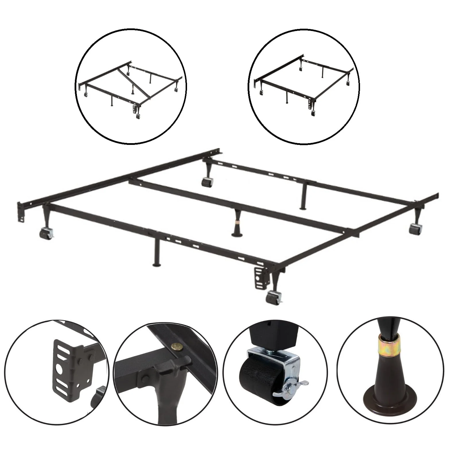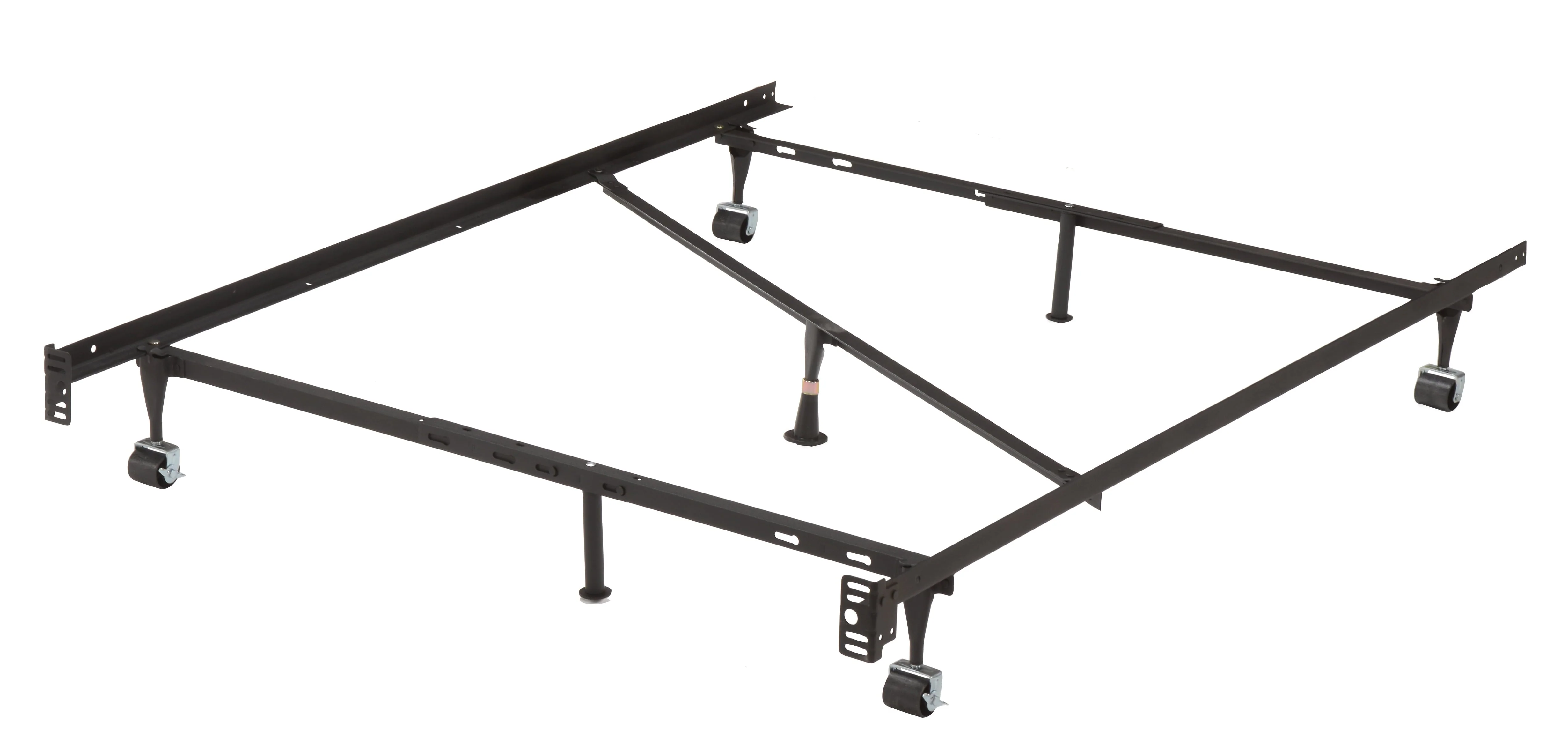 • Pilaster Designs - 7 - Leg Heavy Duty Adjustable Metal Bed Frame with Center Support Rug Rollers and Locking Wheels, Queen/Full/Full XL/Twin/Twin XL
