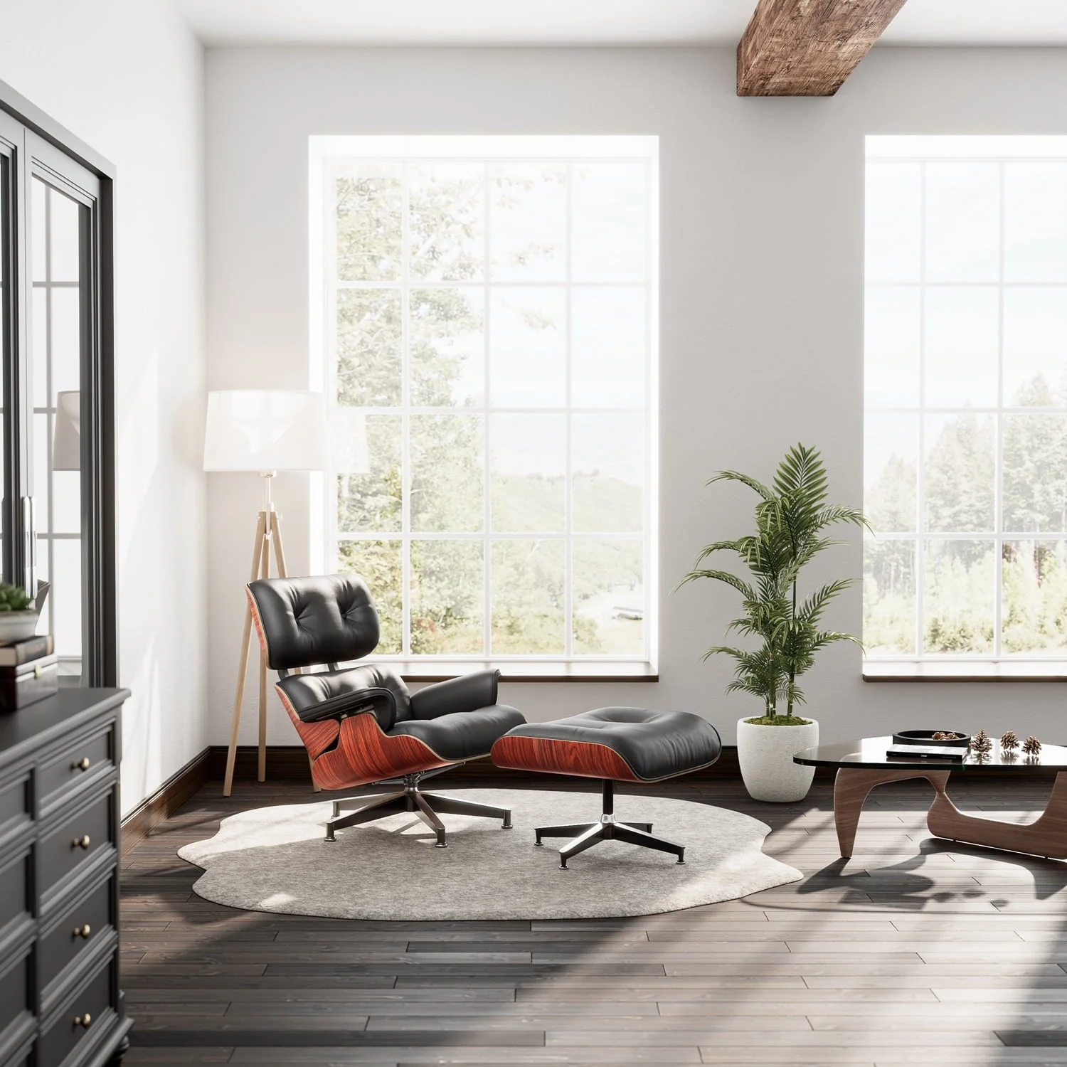 Mid-century style casual lounge chair and a ottoman for a comfortable and soft experience