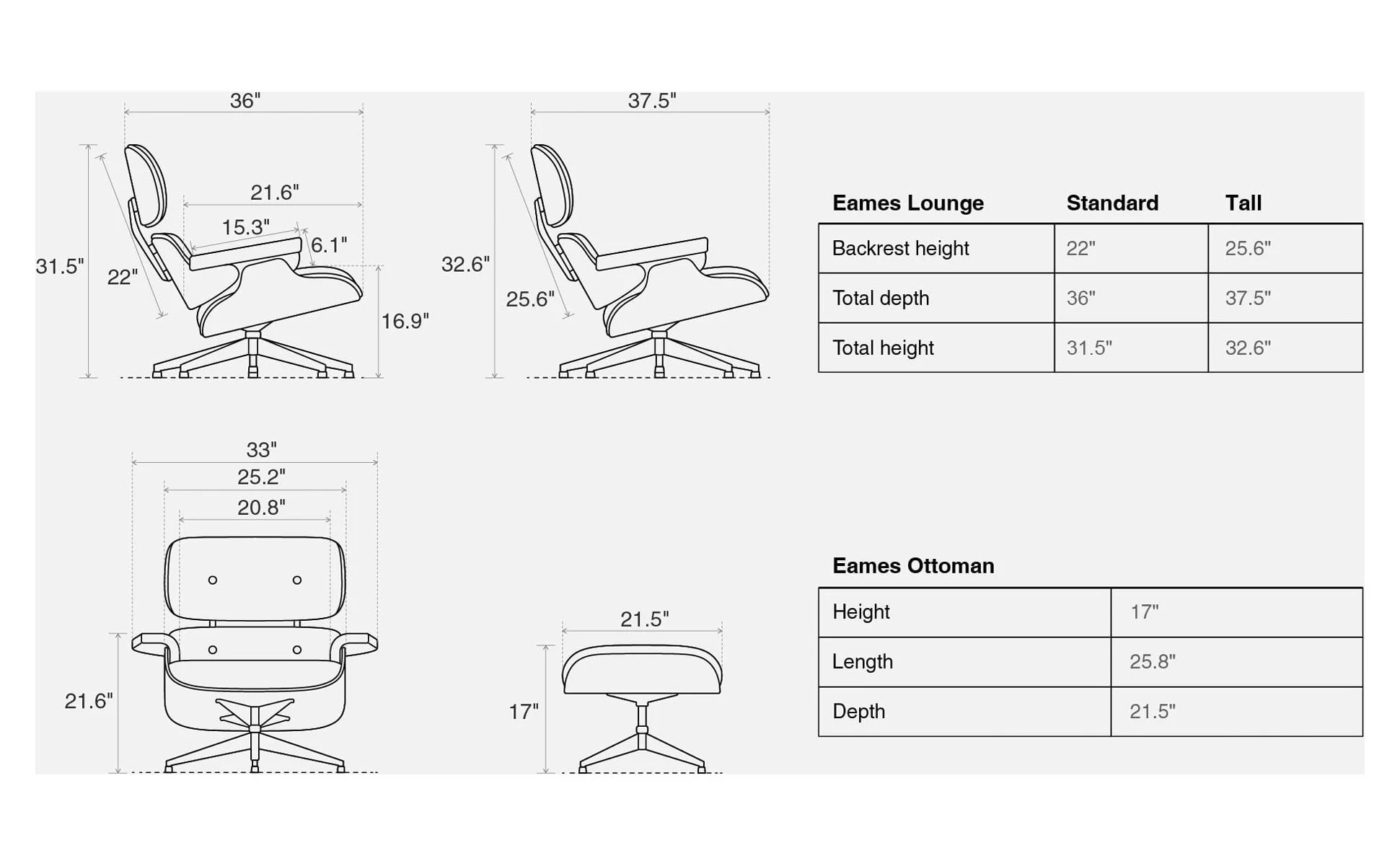 Backrest Height: 25.6 inches