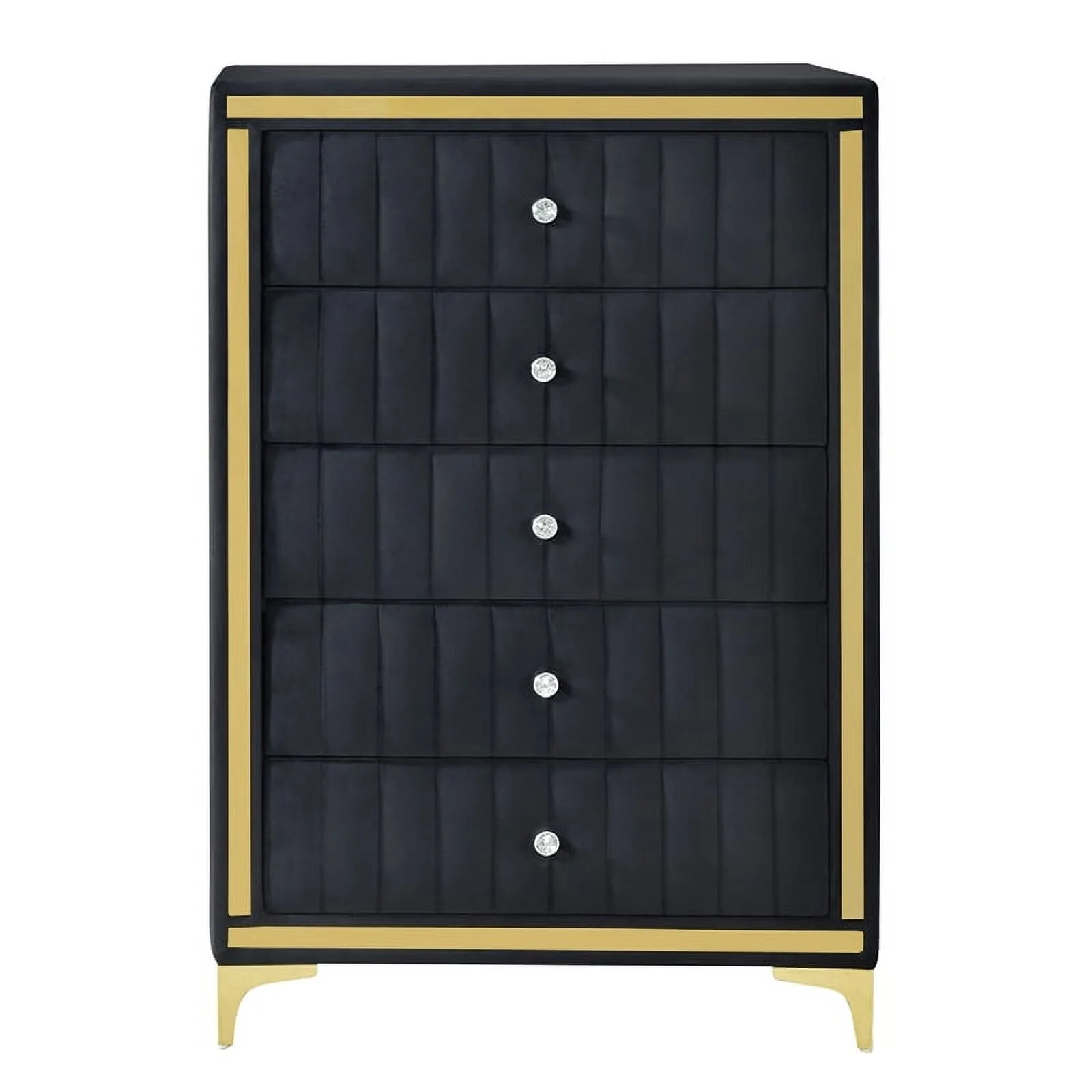 - Five spacious drawers with crystal knobs for easy access.