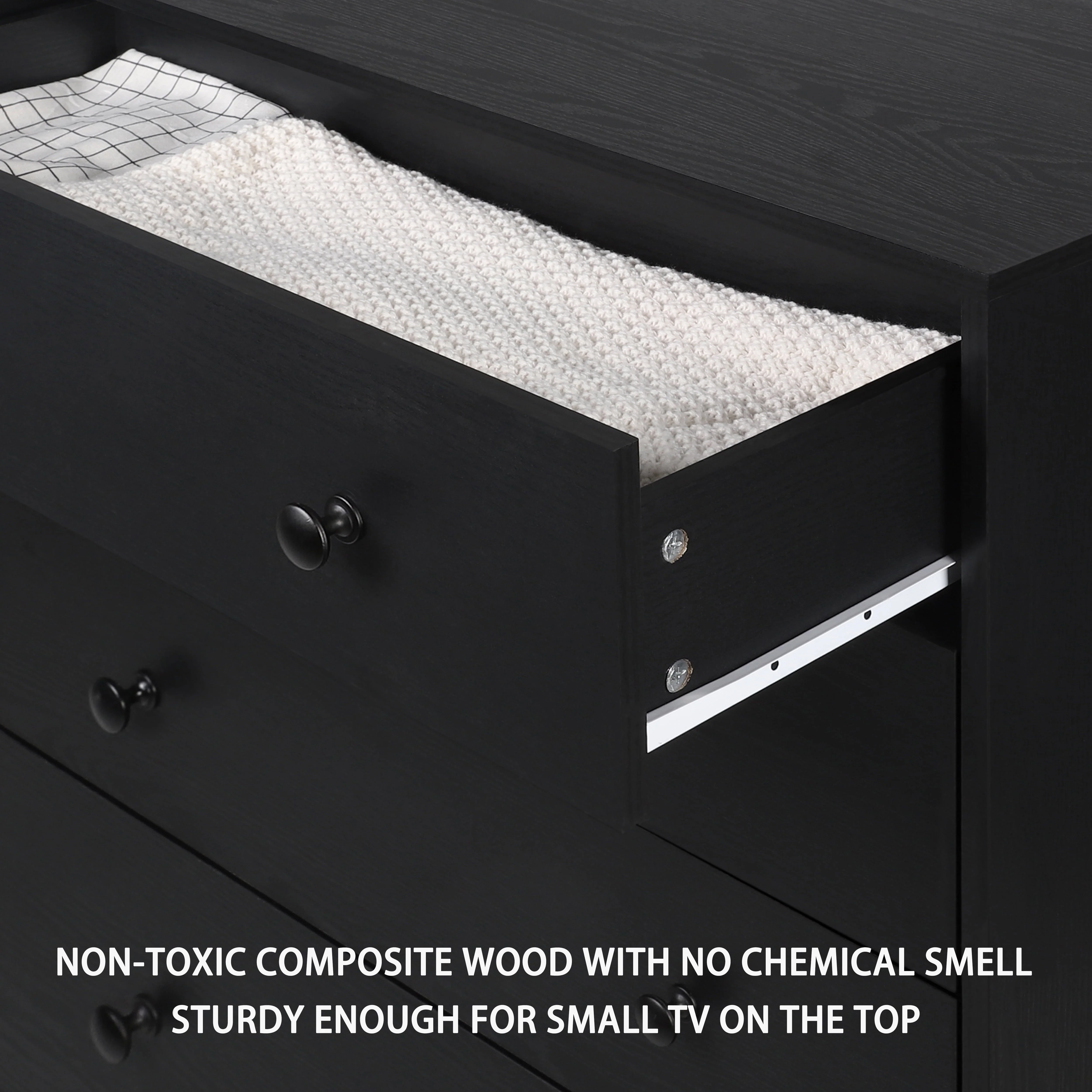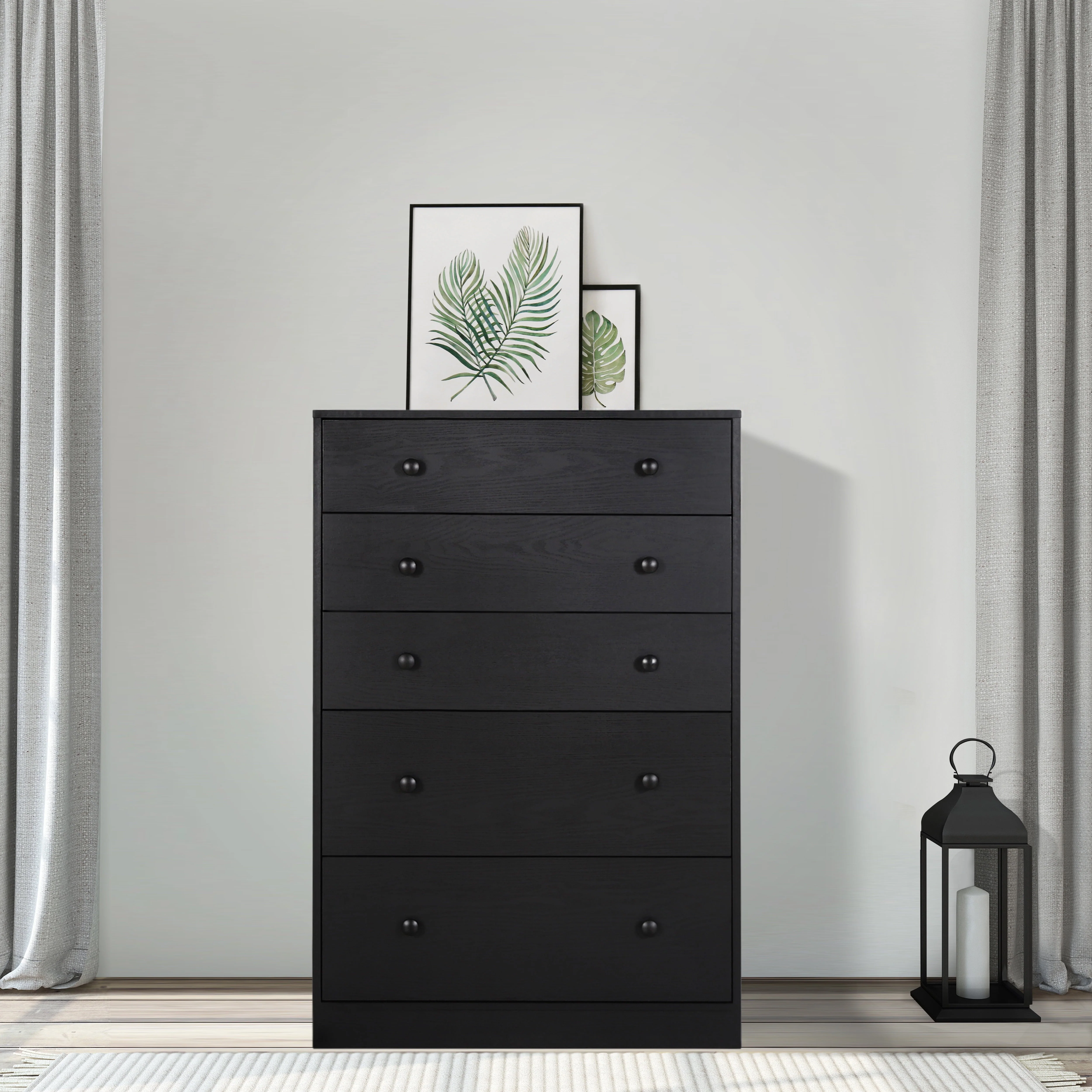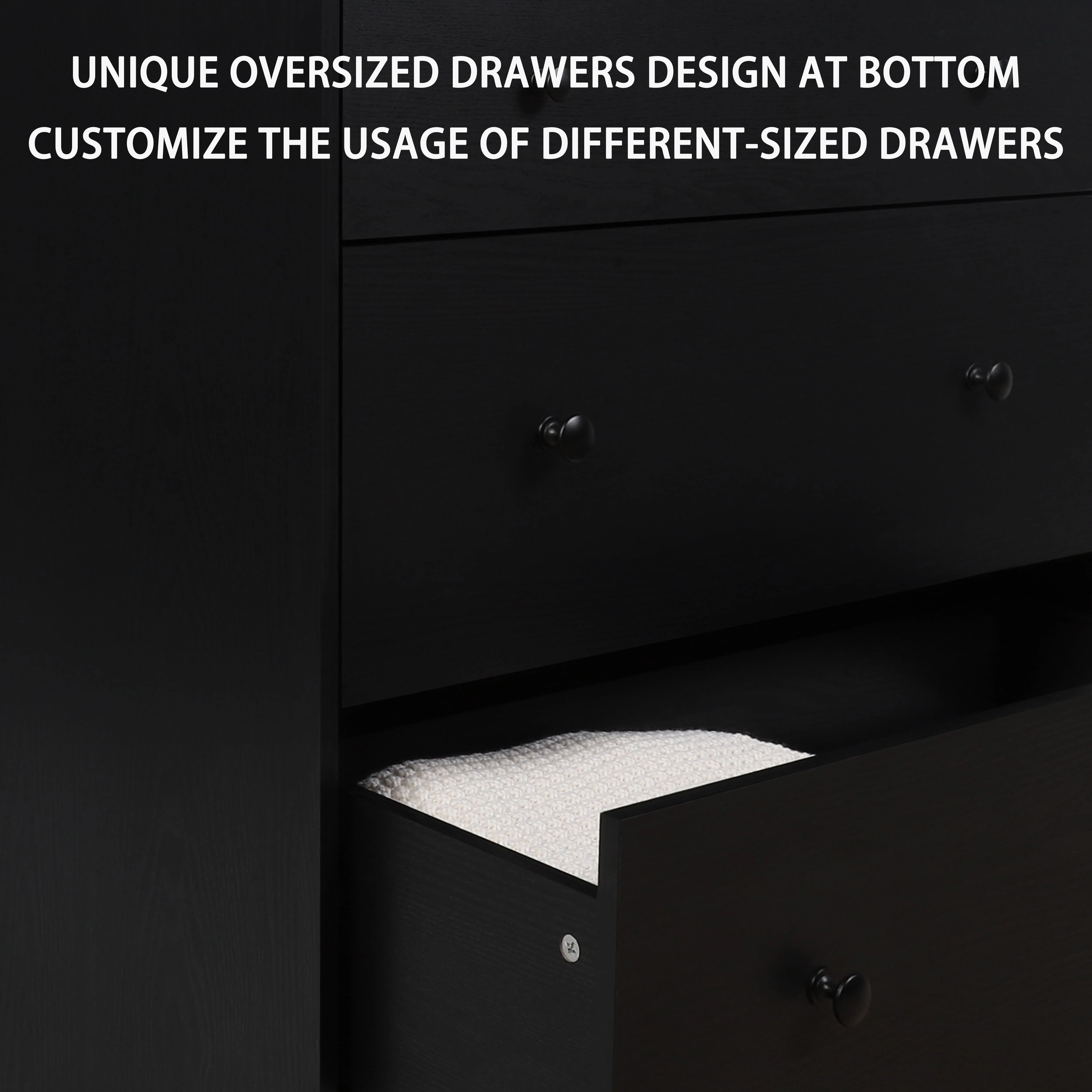 If you’re looking for that essential bedroom storage dresser chest, VEIKOUS 5-Drawer Dresser is a great choice. This tall dresser organizer cabinet is made of non-toxic eco-friendly engineered wood. Different from other bedroom dressers, we upgraded the bottom two drawers of the 5 drawer dresser chest to larger size than the three drawers above which allows you to stoarge a variety of items, meet your different storage needs. You can place decorations on the top of this dresser, such as small TV, photo frames or small plants on it. Our chests of drawers finished in crisp color with concise frame and matching traditional metal knob which is an eye-catching decoration in your room.