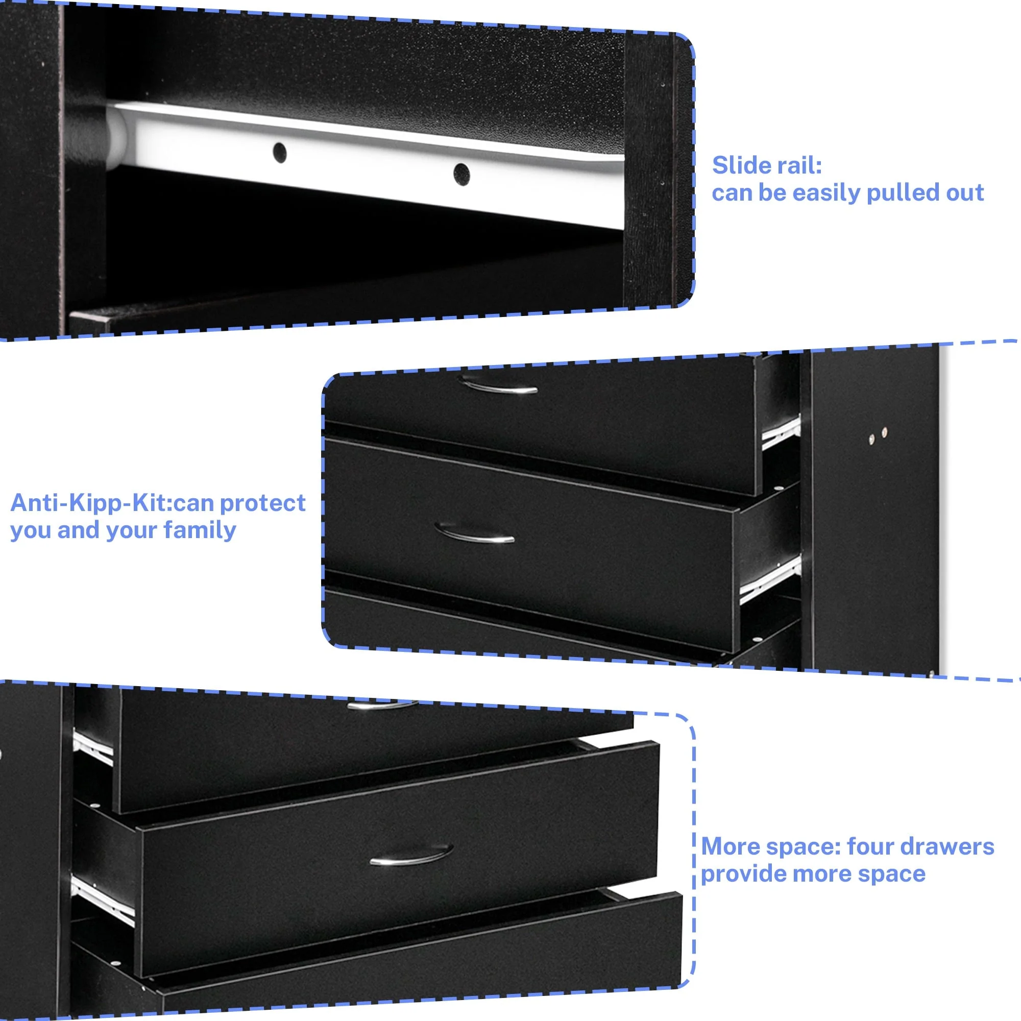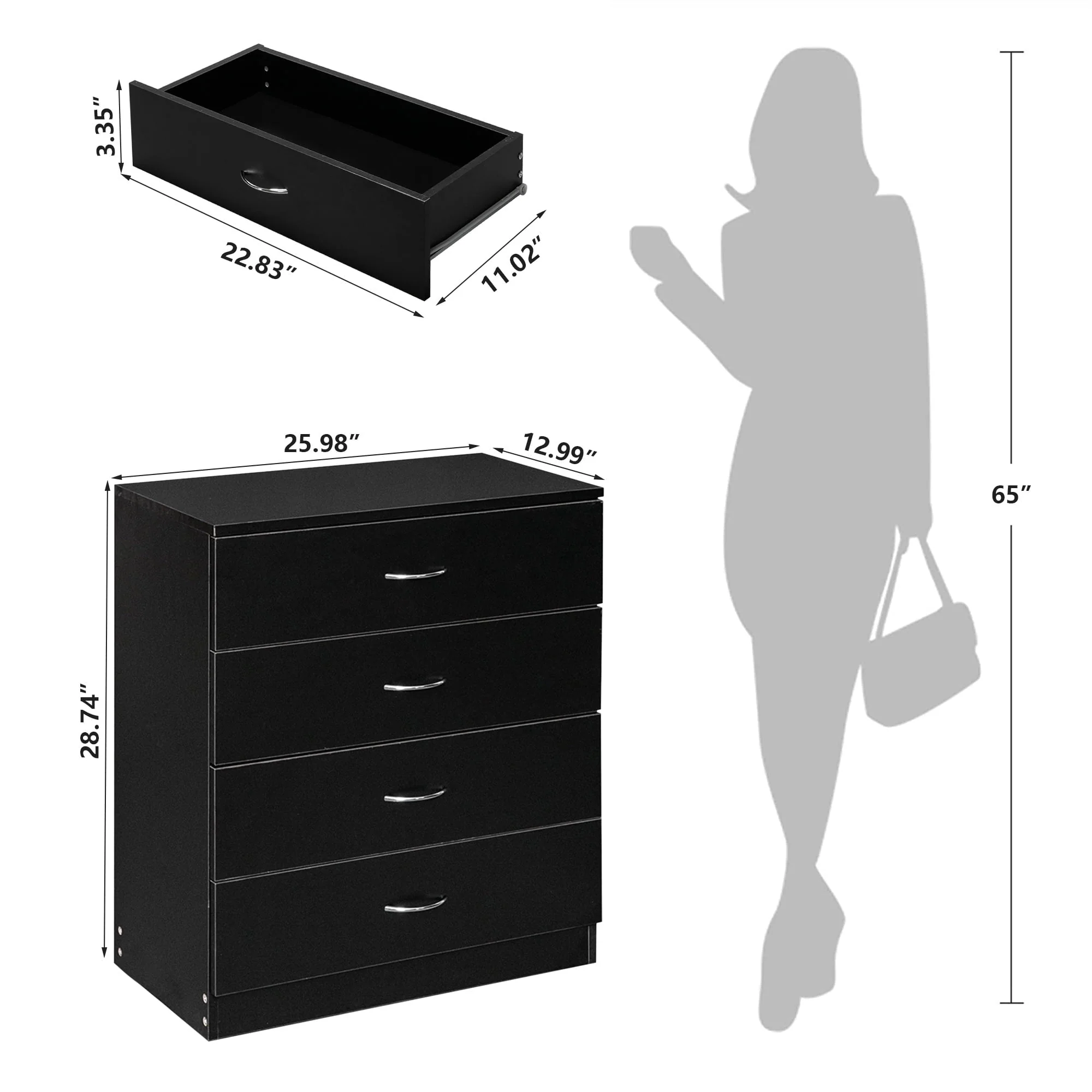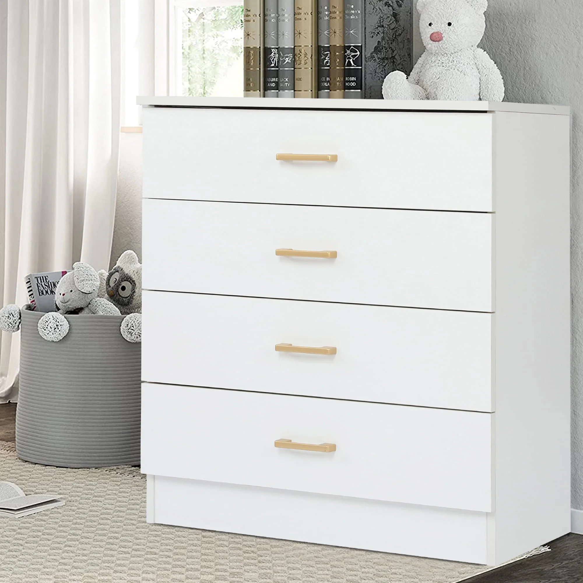 【SIMPLE & ELEGANT】 - Featuring classic lines, a solid platform, and accented with curved metal handles, this chest cabinet is sure to impress! The 4-drawer chest universal has an attractively simple design to bring a touch of elegance to any bedroom or nursery. This easy-to-assemble chest of 4 drawers is the perfect combination of elegant design & practical function.