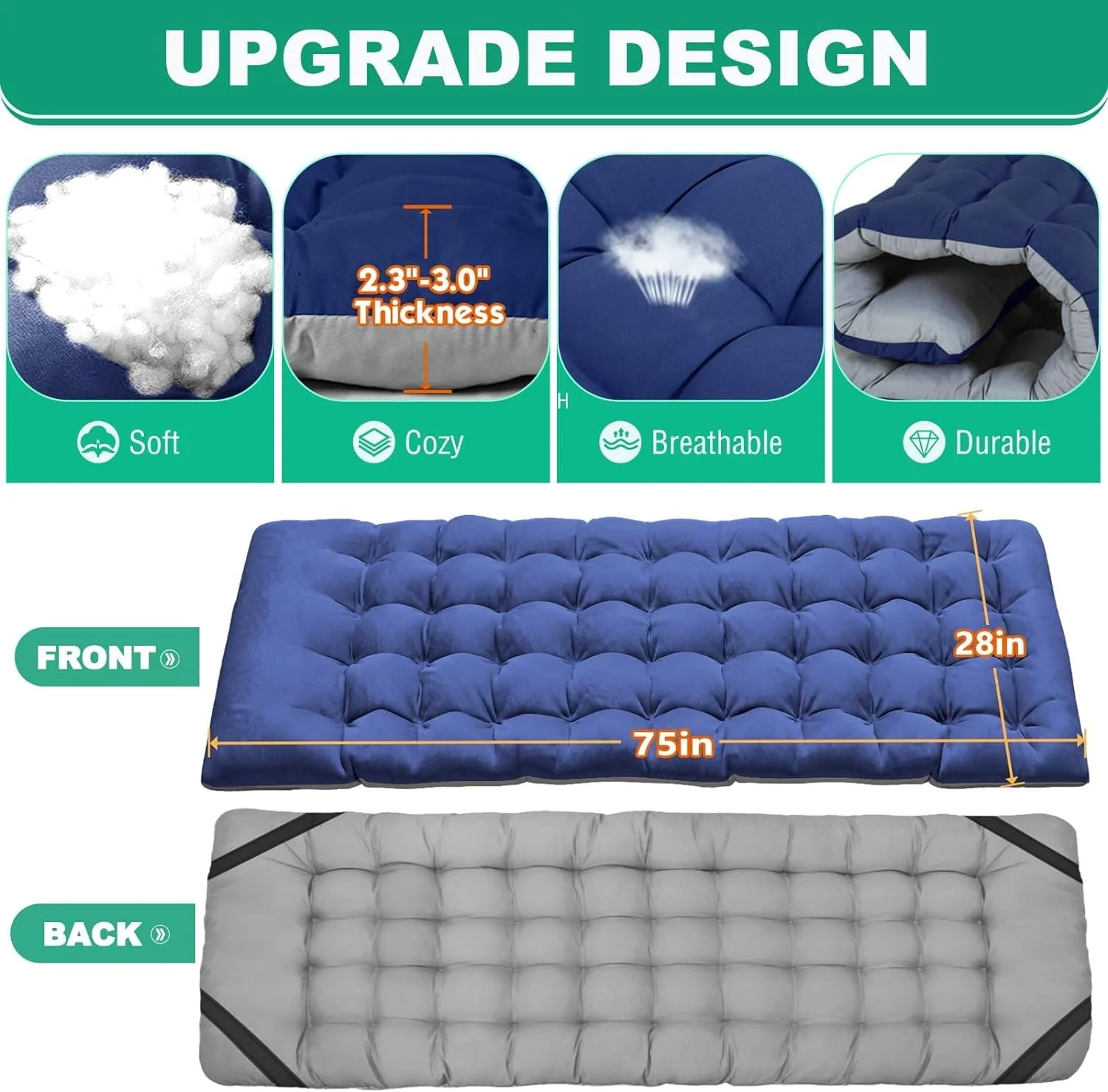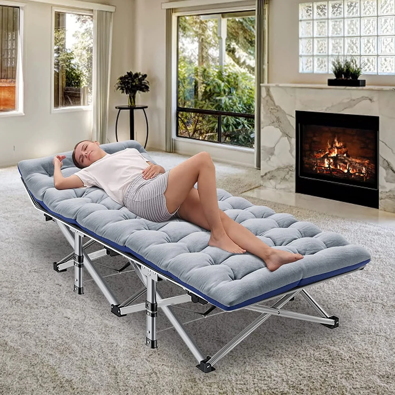 Slsy Folding Bed Folding Camping Cot, Lightweight Portable Heavy Duty Adult & Kids Travel Cot Supports up to 880lbs. Can bear 1 adult or 2 children sleeping on it to rest. Quality double layers 1200D polyester fabric and steel frame. Equipped with 2 Sided mattress, you can sleep more comfortably in this portable folding camping bed. Soft cushions add extra comfort. In hot weather, the cushion can also be taken away for the breathable. No need for troublesome installation. Our foldable cot opens in less 10 seconds, light weight, easy-to-fold. Unfolded Dimension: 75"* 28"*14",Folded Dimension: 39'' * 8''. Weighs approximately 17 pounds. A carry bag with a handle is available. Easy to take it out for camping. Great folding cot,outdoor cot,camping cot with mattress, for hiking, camping, traveling, hunting; or as a snap cot in the office; also a perfect temporary bed when guests visit your home.
