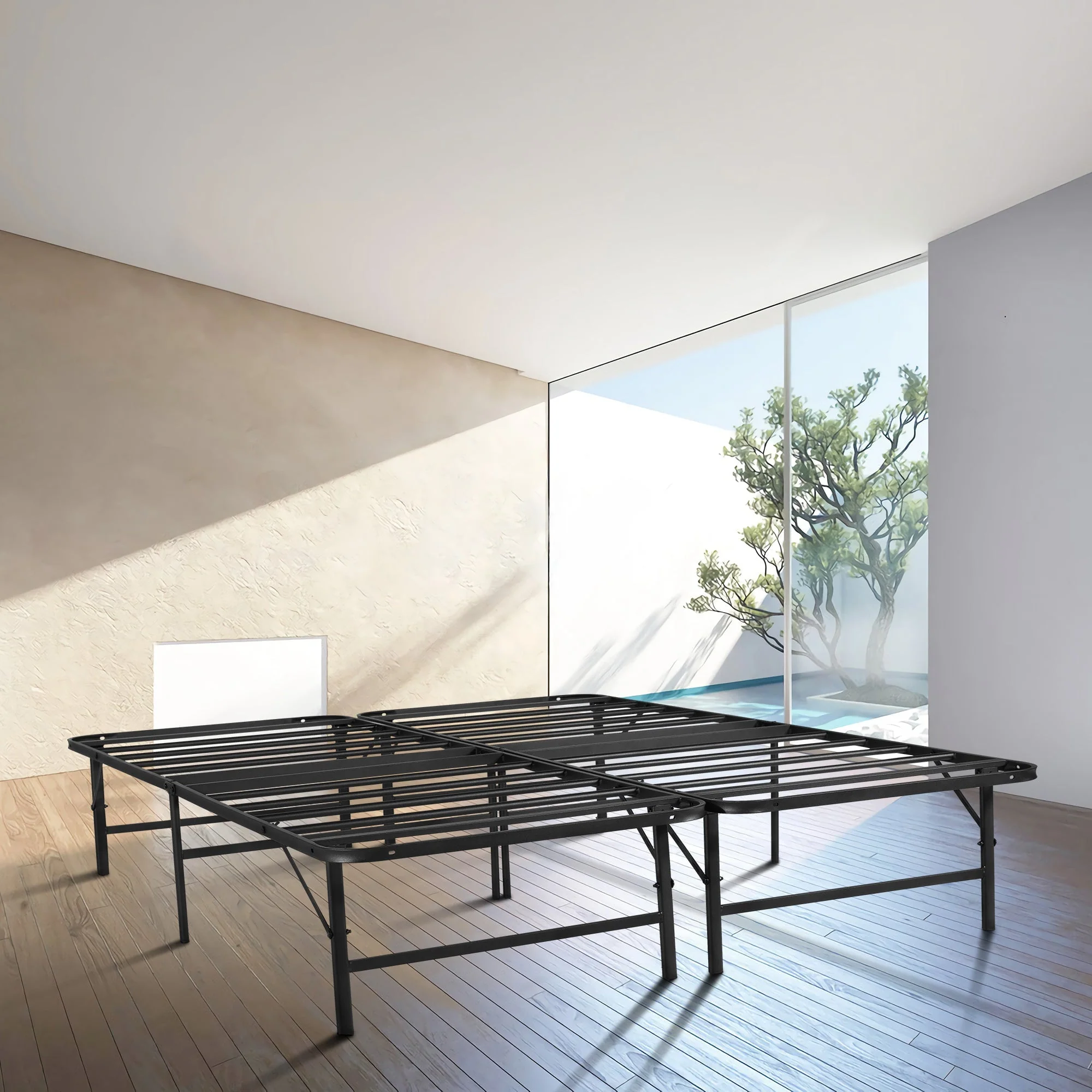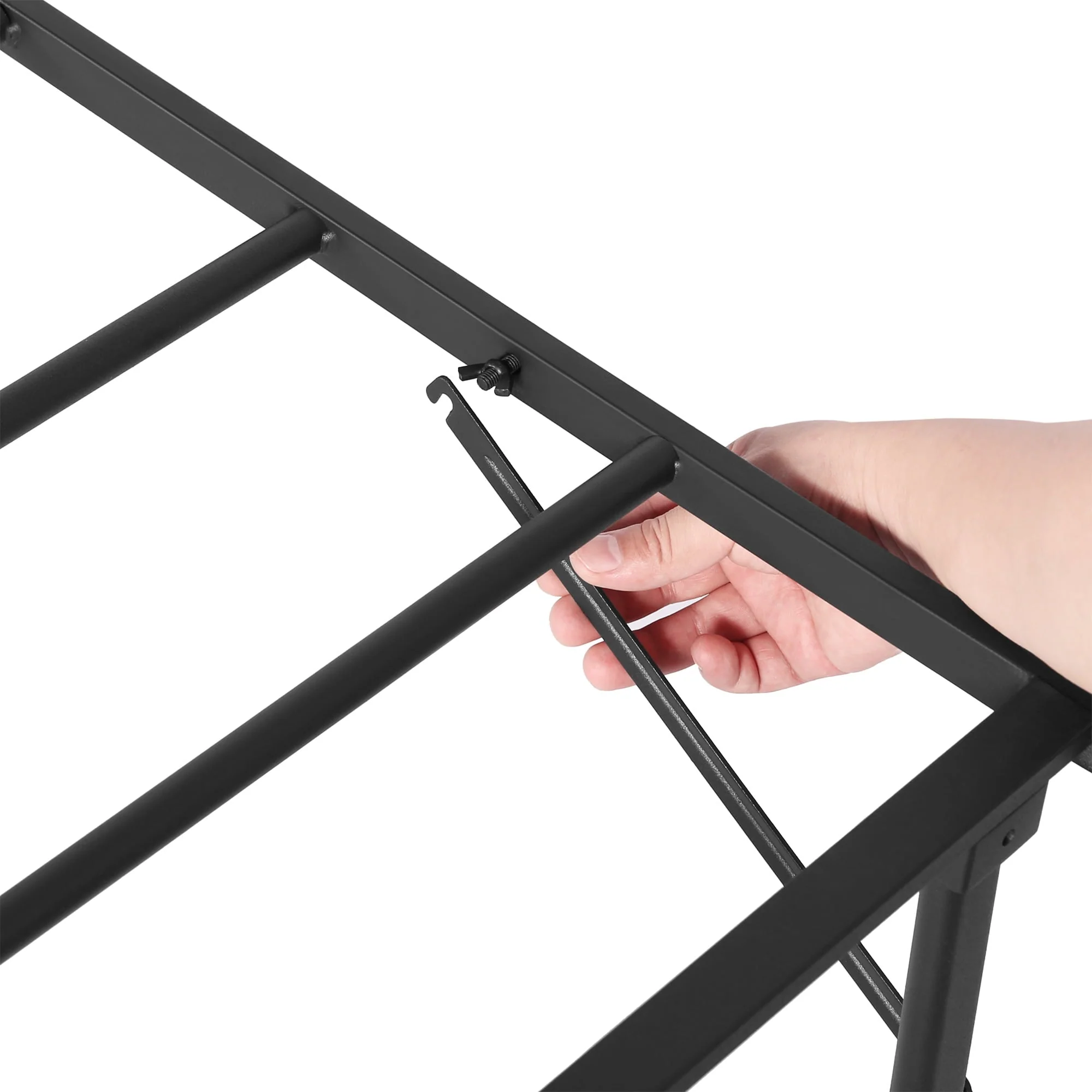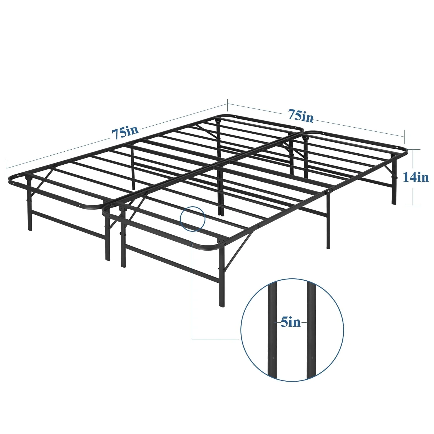 VECELO 14" High Foldable Platform Bed Frame with Under Bed Storagecombines comfort, beauty, and functionality to match your modern home and lifestyle. Made of durable metal with a sleek black finish, durable, sturdy and offers a quiet, noise-free, supportive foundation for a mattress. Eliminates the need for a box springIt's perfect for your a kid’s bedroom, a dorm room, or a first-time apartment, guest bedroom or master suite, saving you money and the hassle of placing both a bed frame and boxspring. You can easily store under a couch to use for guests. It is very easy to take with you on a variety of trips.