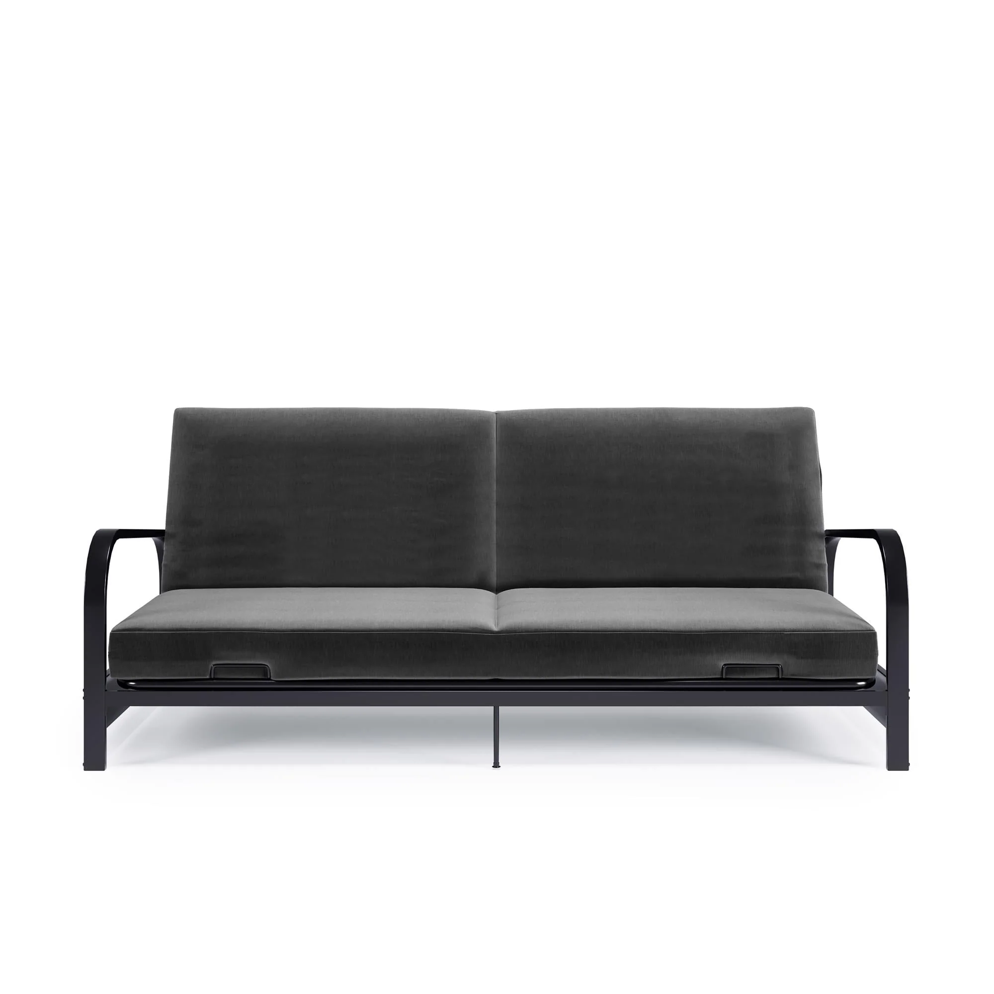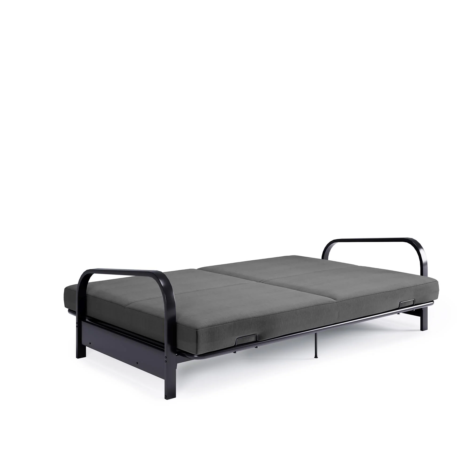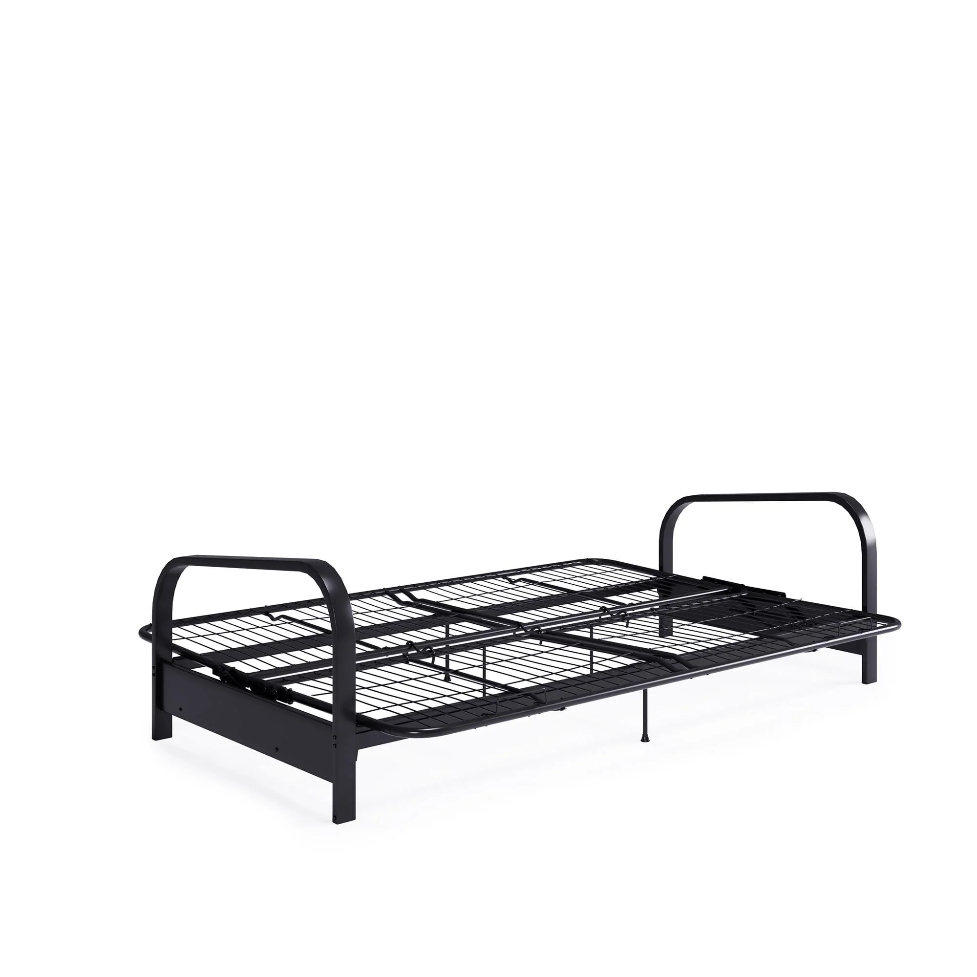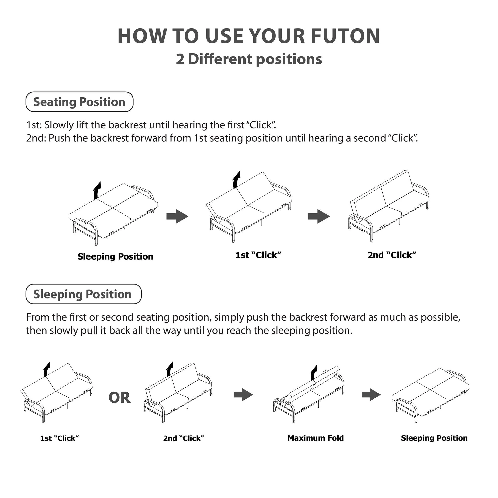 The DHP College Metal Arm Futon with Futon Mattress is the perfect futon for your home. With a compact and contemporary, this futon fits just about anywhere in your home. Its curvy silhouette in sleek black metal, makes it an excellent choice for a living room, home office or guest room. Best of all, it offers a practical solution as the back can be lowered to accommodate overnight guests. The DHP Metal Arm Futon comes with two mattress retainer clips to hold the mattress in place as well as center legs for added support and stability. The design was improved to include two additional legs at the back of the seat to provide extra support and durability. The DHP Metal Arm Futon also has a new mattress composition with firm support to withstand a 1000-cycle test for resiliency without bottoming out to feel the metal frame after long-term use.