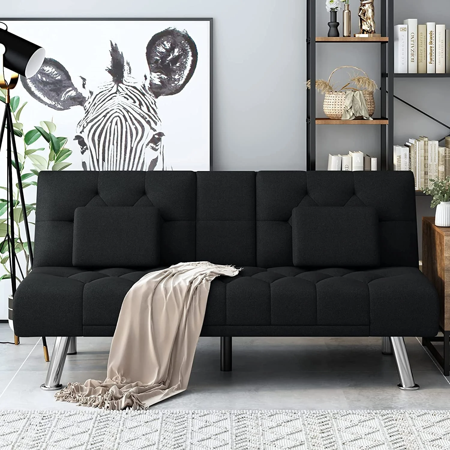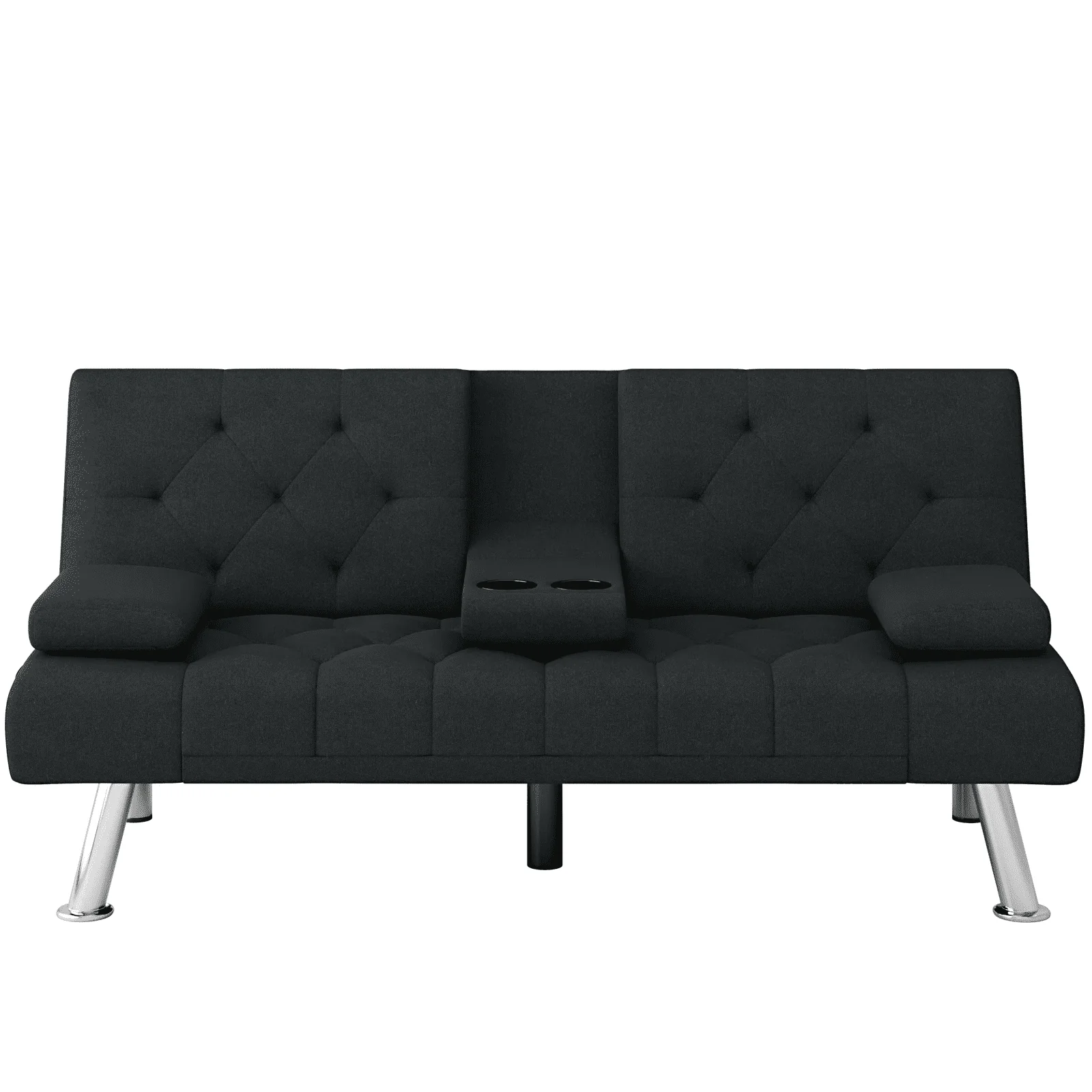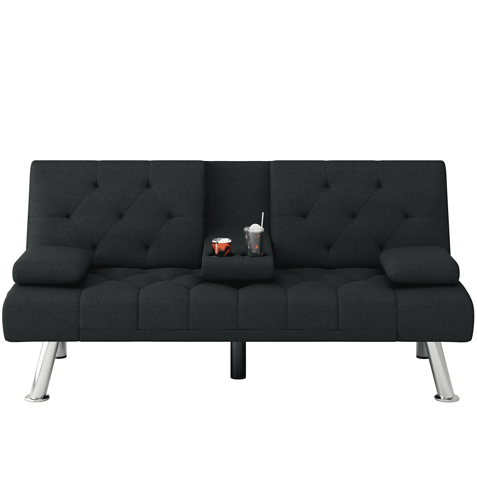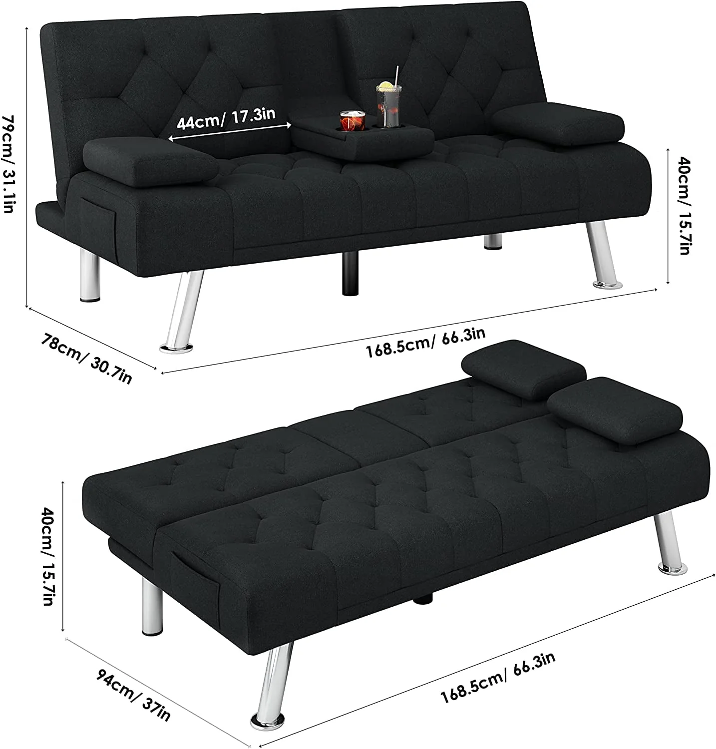 This Homfa couch sofa bed is designed with exquisite tufted linen fabric and solid wood metal legs, a drop-down table in the middle with 2 cup holders provides a convenient space for drinks. 2 Side pockets conveniently hold your remote control, magazines, and more. 2 armrests can be moved at will and can be placed anywhere. Convertible couch sofa bed with a total weight of up to 350 pounds, which will complete the modern interior of your dreams. Our couch explains the versatility of this sofa that can be used on many occasions. The headrest is a perfect partner of bed which can offer suitable support to your head. Movable headrests can meet this demand. It can also be used as armrests as you like. You will feel an incredible sleeping experience. We believe you will like the futon sofa bed.