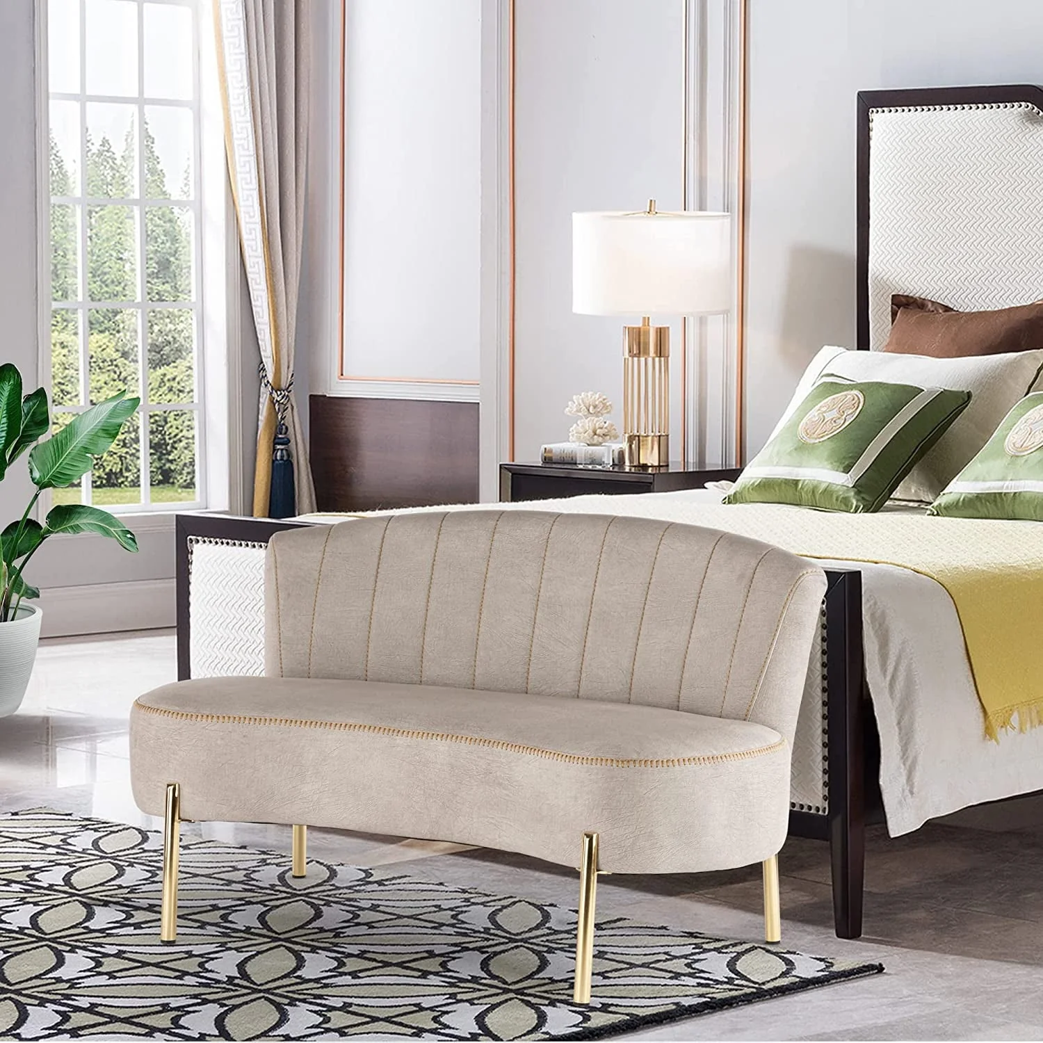 Andeworld Uphoslstered Small Sofa Couch Accent Ottoman Bench Modern Loveseat Dining Table Bench Bed Bench with Backrest