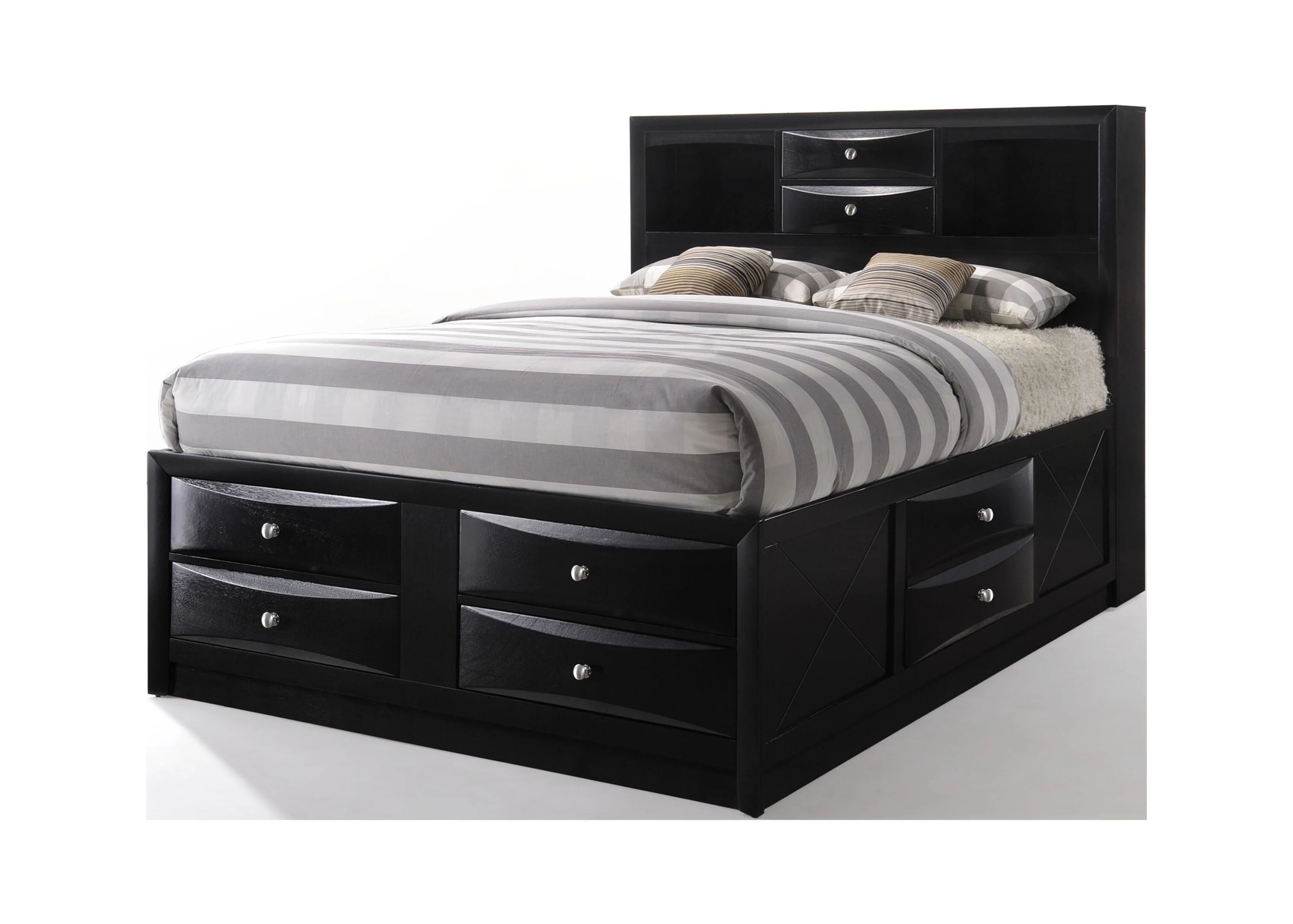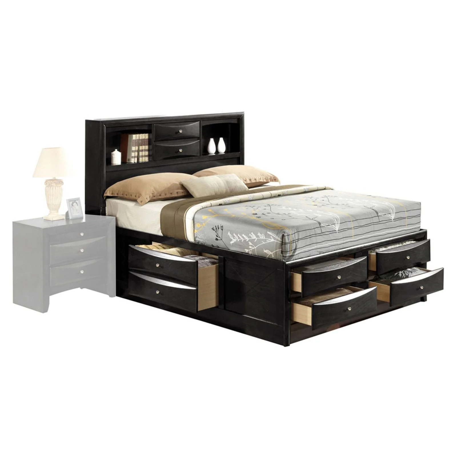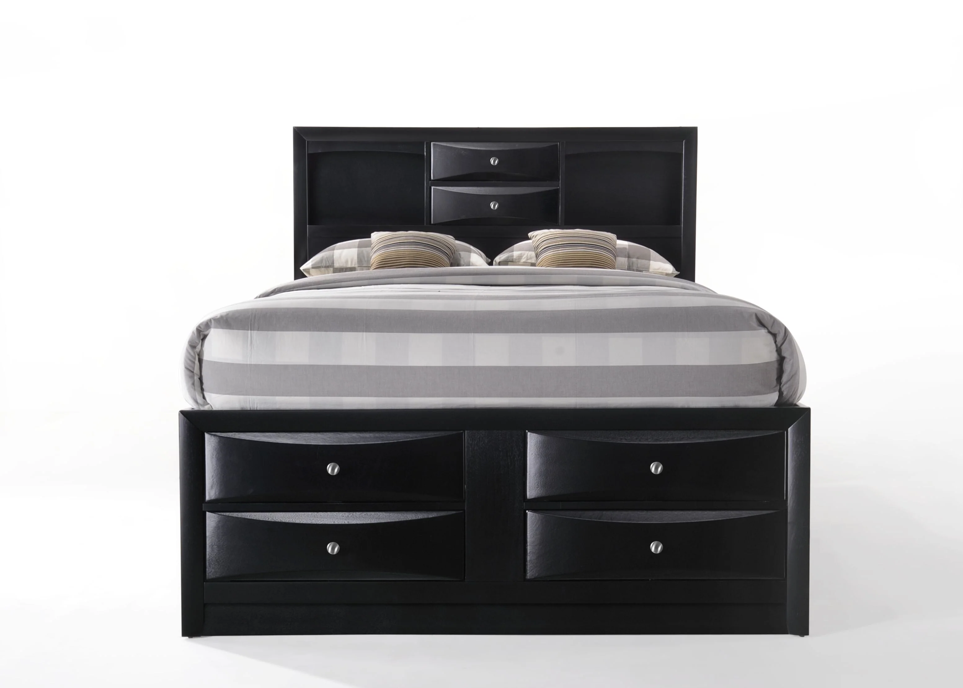 • Acme Furniture Ireland Full Bed with Storage in Black Rubberwood, Multiple Sizes