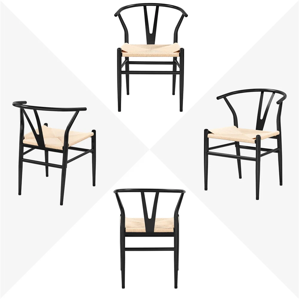 The armrest and backrest are cast in one piece with a suitable curve.It is the metal frame that makes the weave chair stable and durable. Our dining chairs are must-have chairs, very suitable for the living room, kitchen, or a restaurant. Our dining chairs are made from iron and paper twine, sure to last for many years of daily use.These modern chairs are sold in a set of 4, suitable for use in different places, such as dining rooms, living rooms, workrooms, parties, banquets, etc. You can freely match with a tea table, dining table, or desk as you wish.