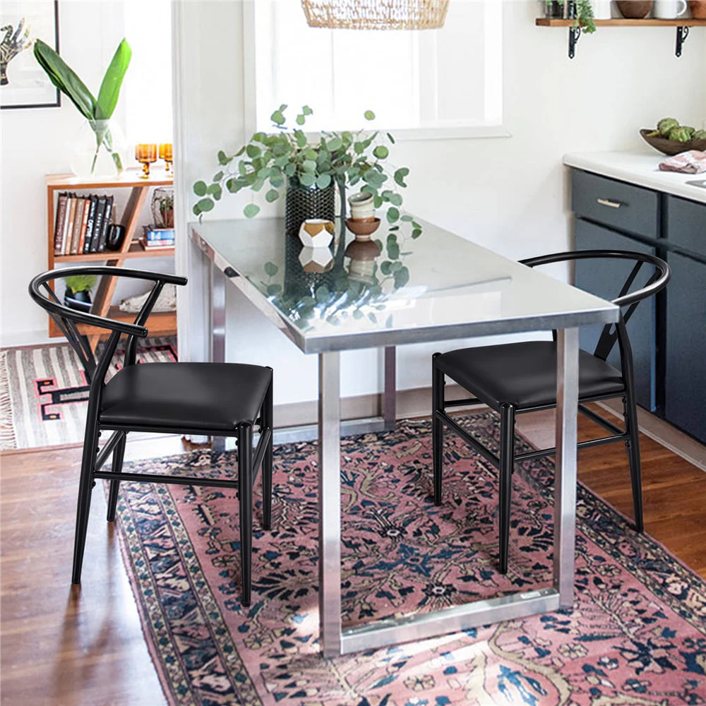 With the metal frame plus cushioned seat, our dining chairs aim to provide you much stability and comfort when you have a fancy meal with your family. The curved armrest and backrest perfectly fit your body, giving a comfortable and friendly seat. Working well both for work and entertainment, these weave chairs are sold in a set of 2, a good match to your desk or tea table.