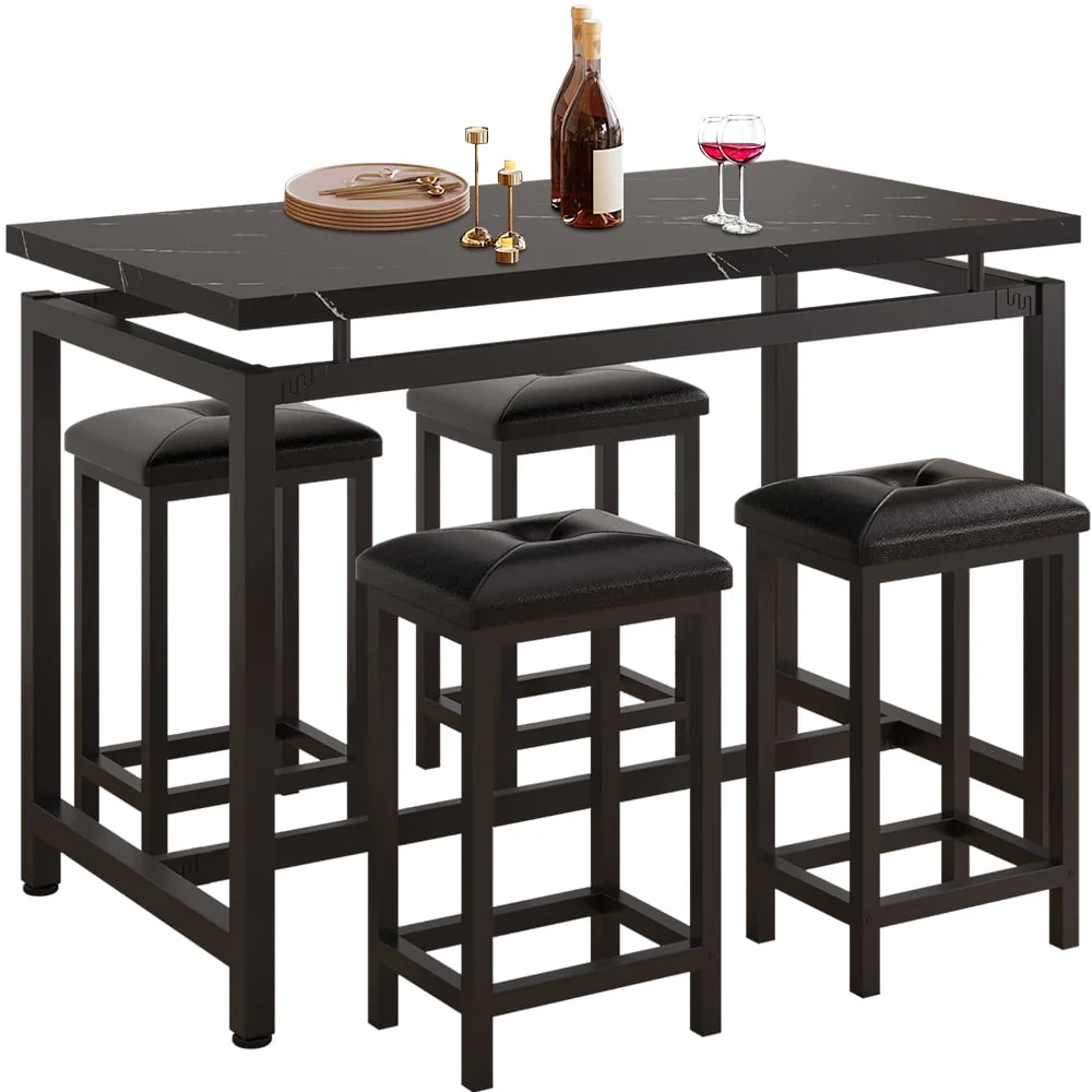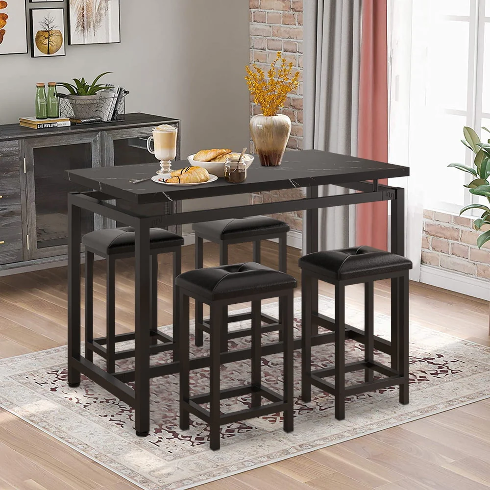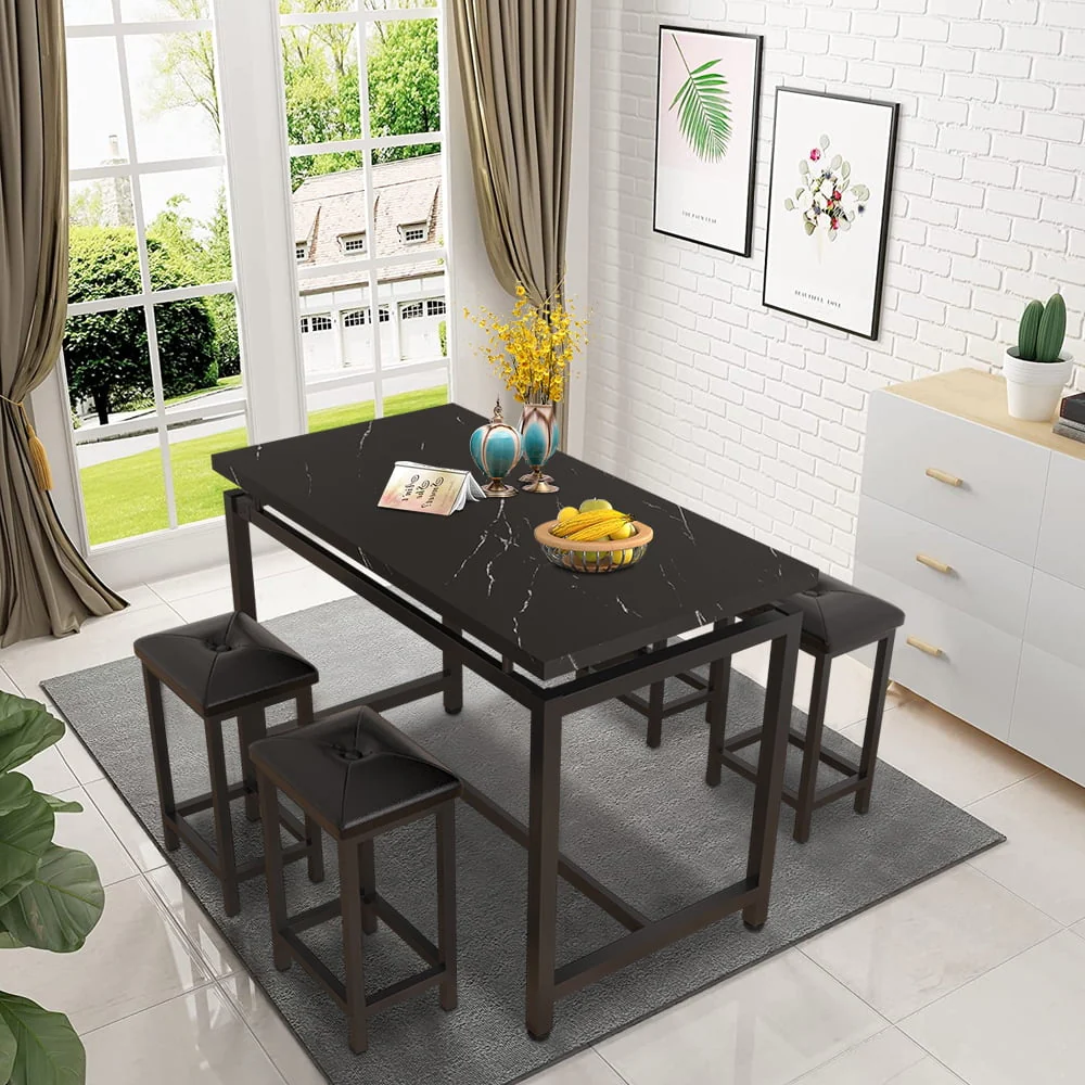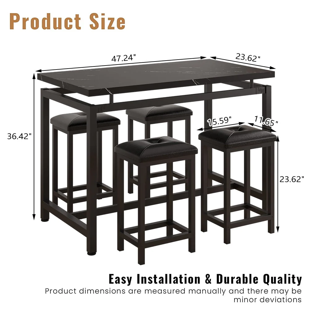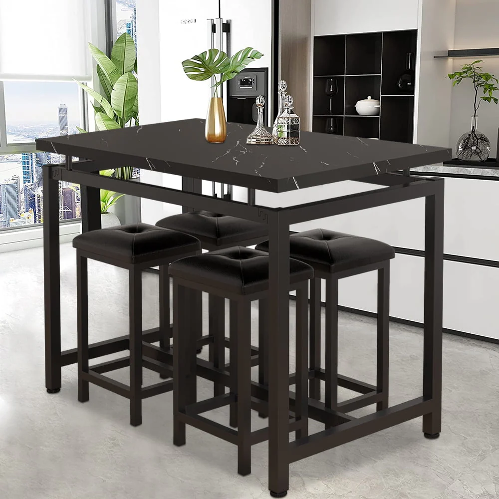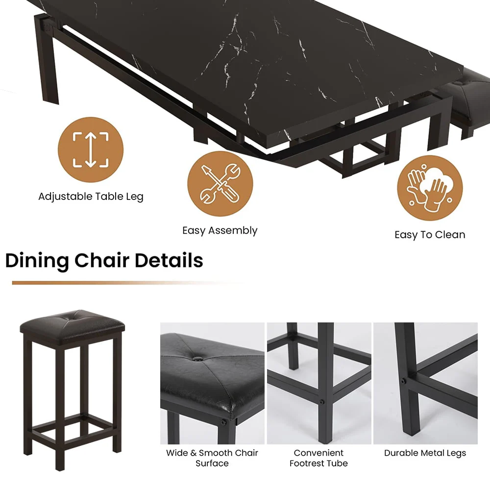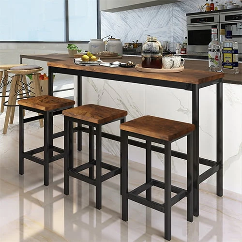 Our counter height table set is made of high-quality wood and metal frame, ensuring its sturdiness and durability for a long lifespan.